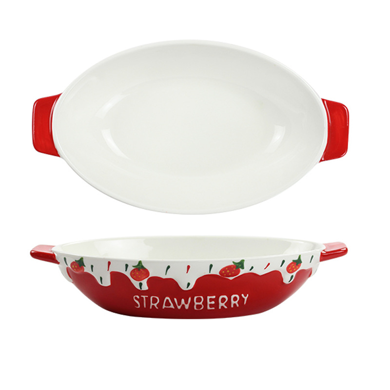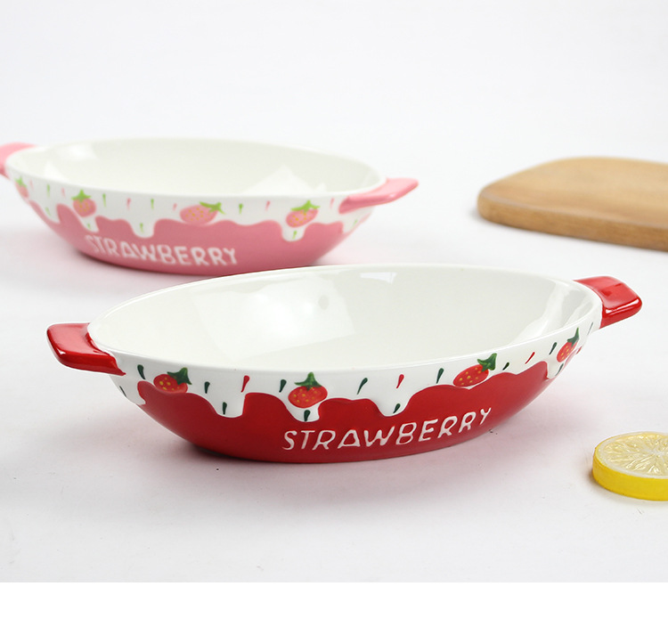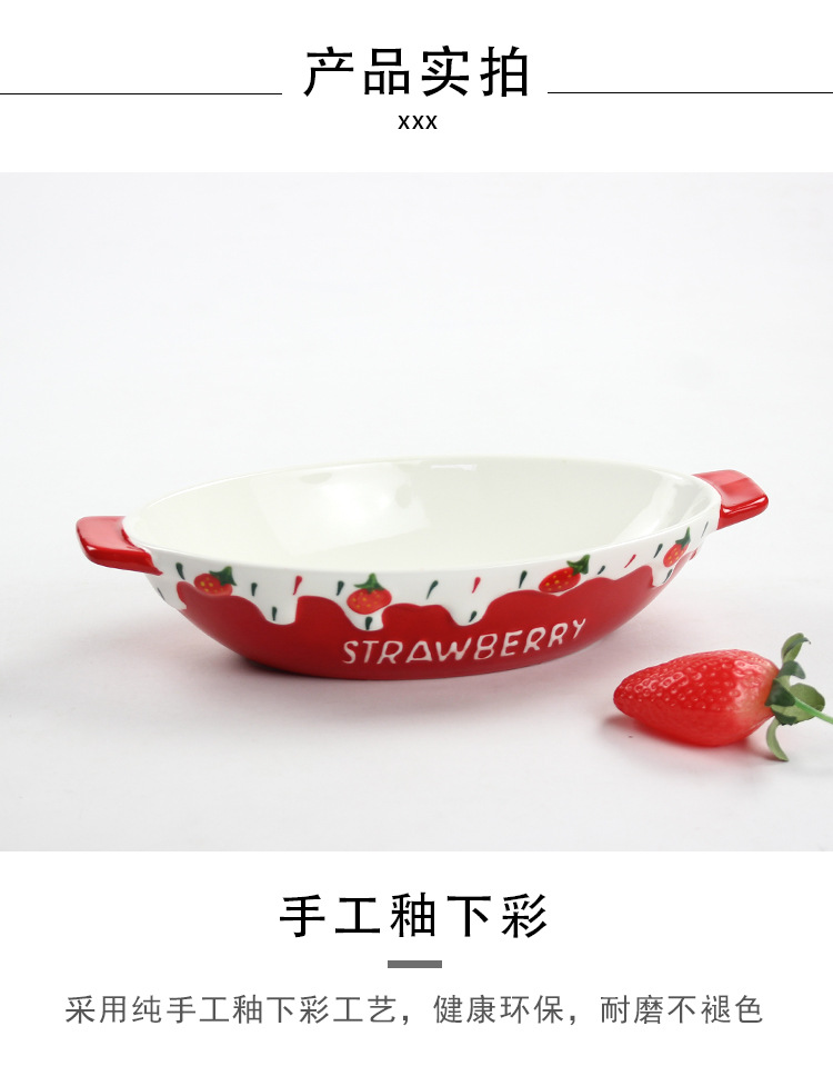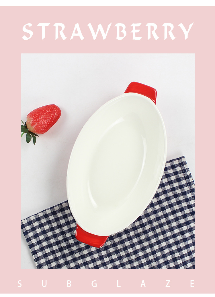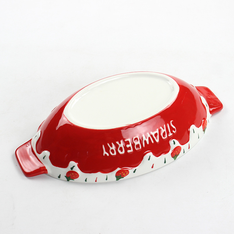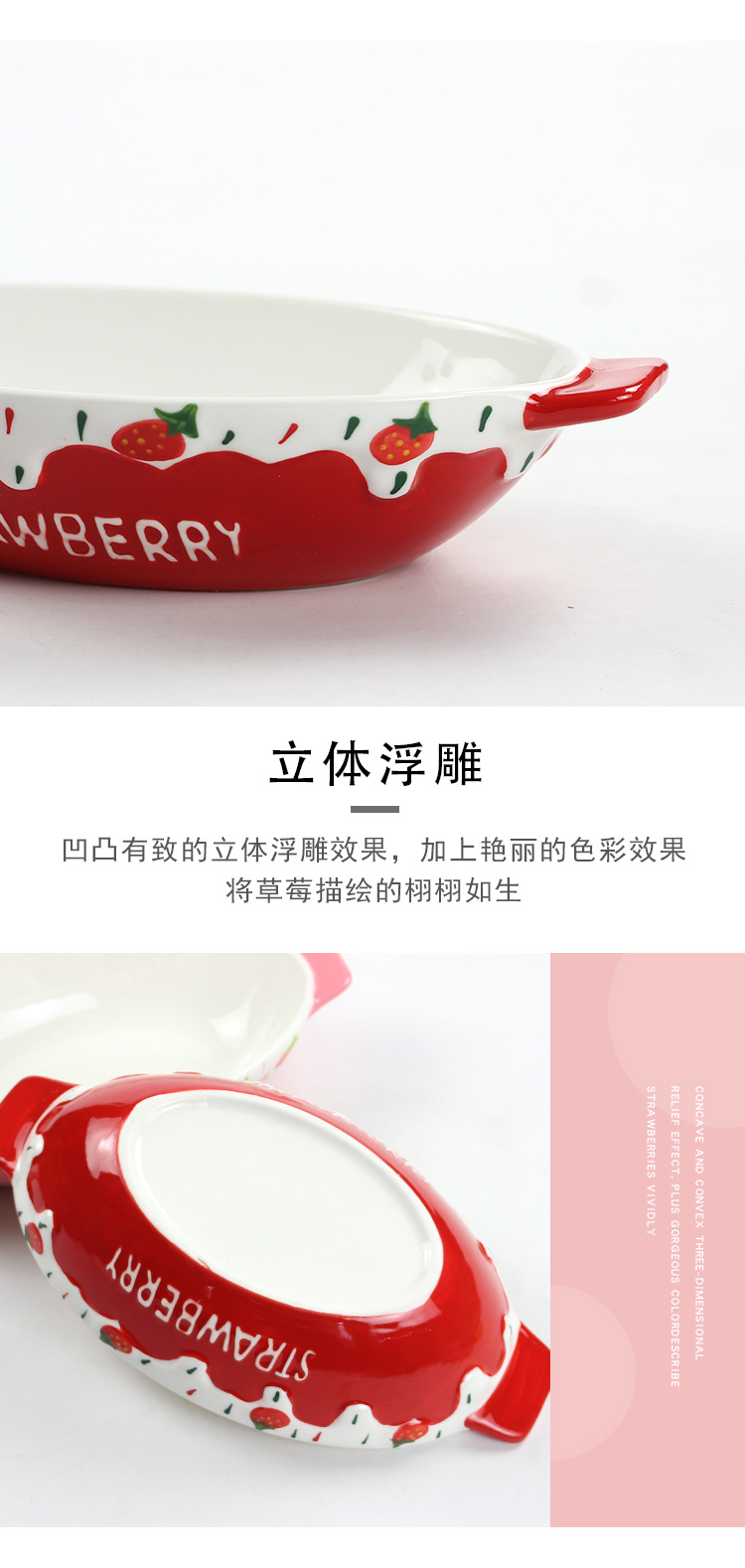 批发创意浮雕草莓椭圆烤盘可爱ins水果沙拉陶瓷盘耐高温烘焙餐具