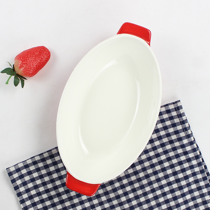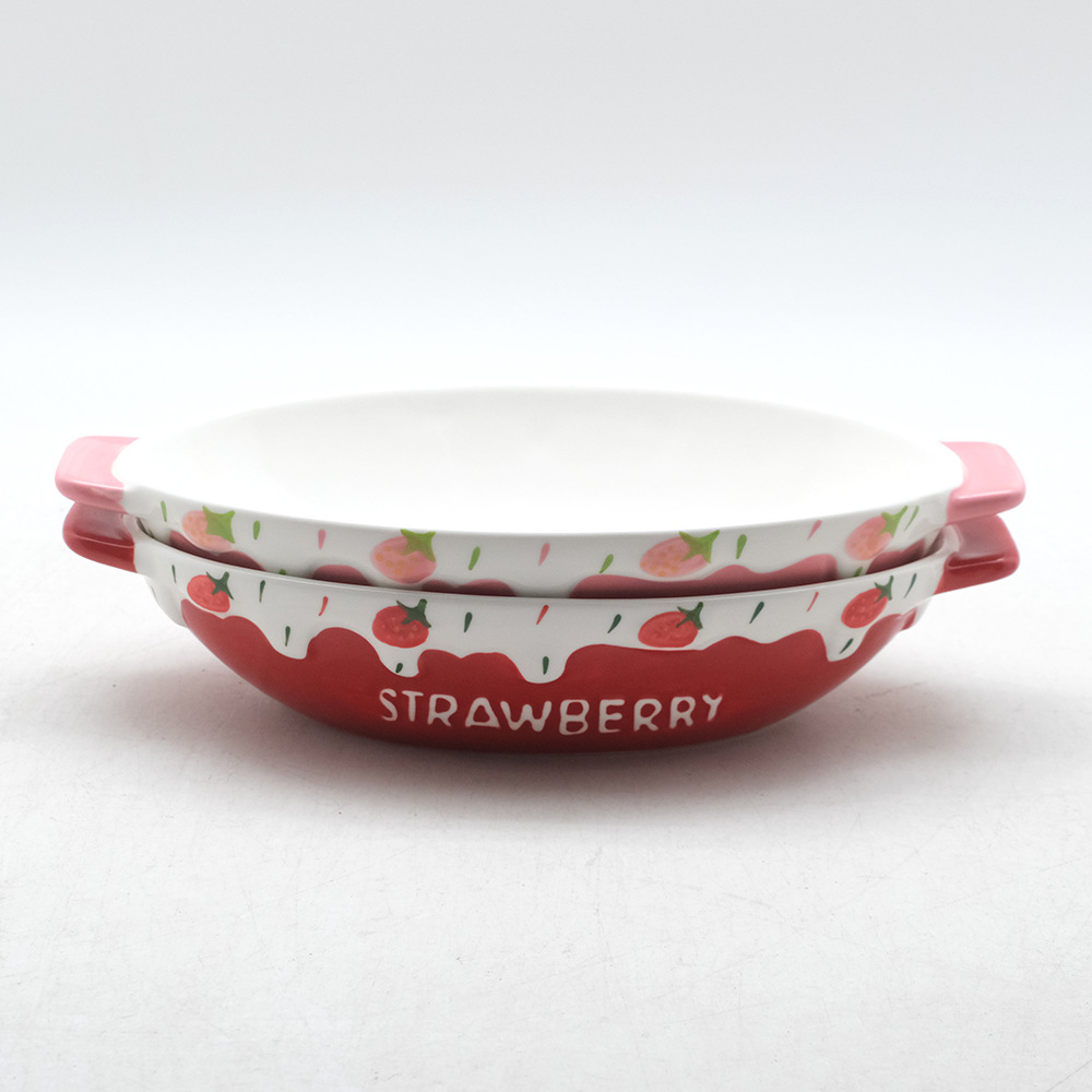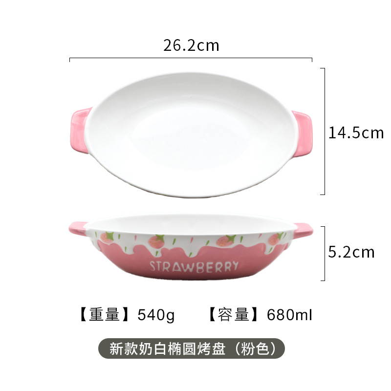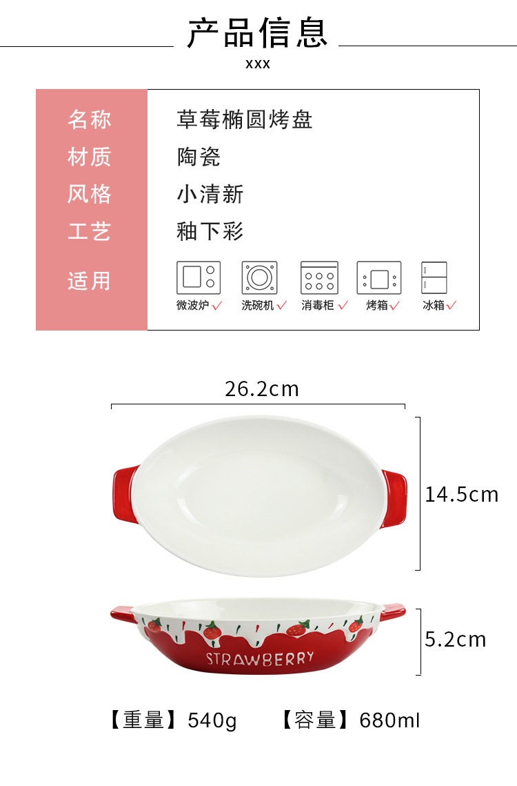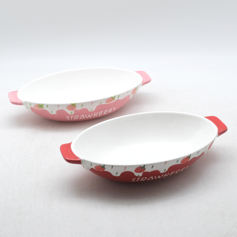 批发创意浮雕草莓椭圆烤盘可爱ins水果沙拉陶瓷盘耐高温烘焙餐具