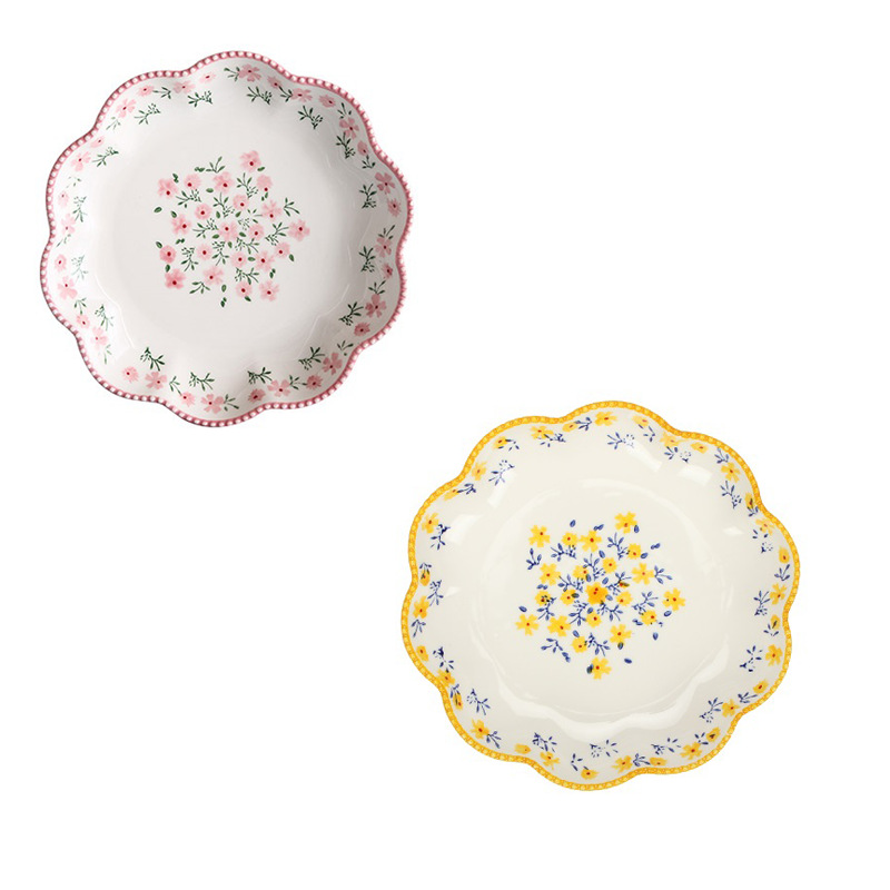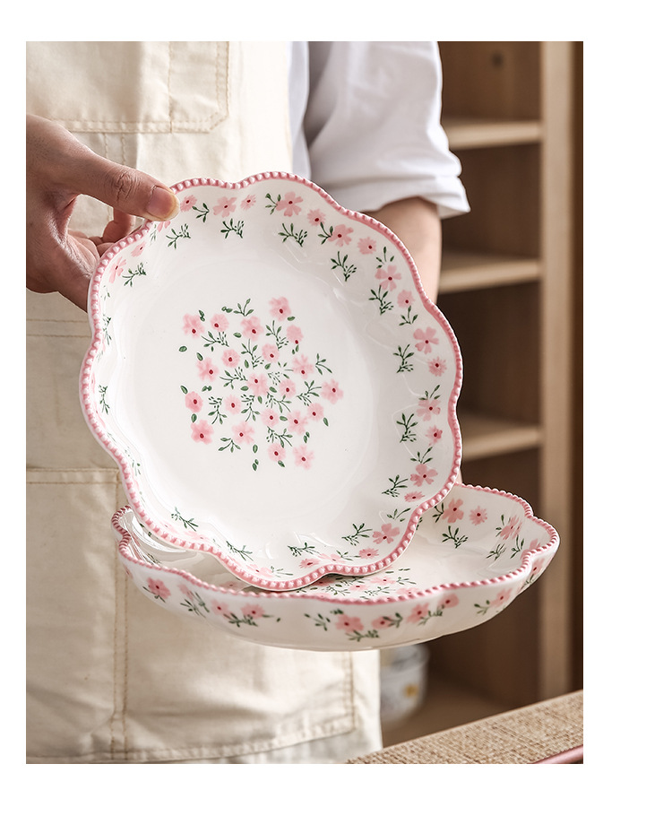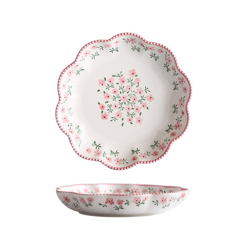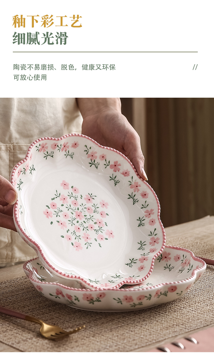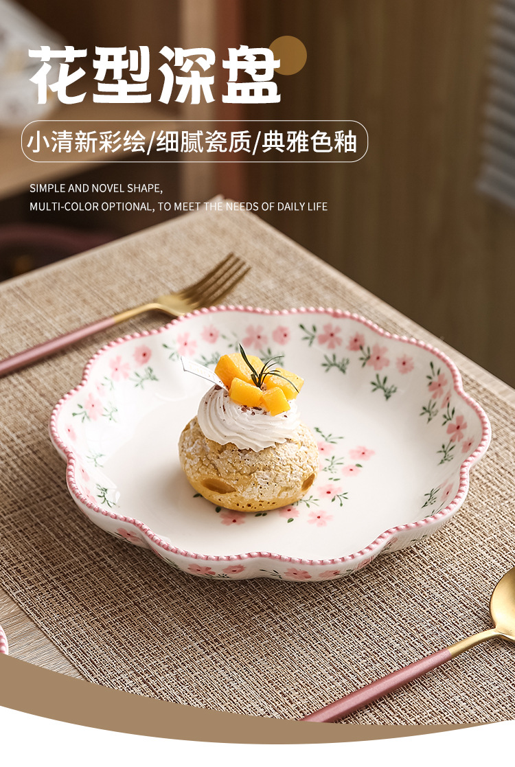 小碎花陶瓷盘子餐具家用花型深盘菜盘可爱风浮雕草莓水果盘沙拉盘
