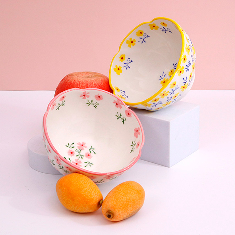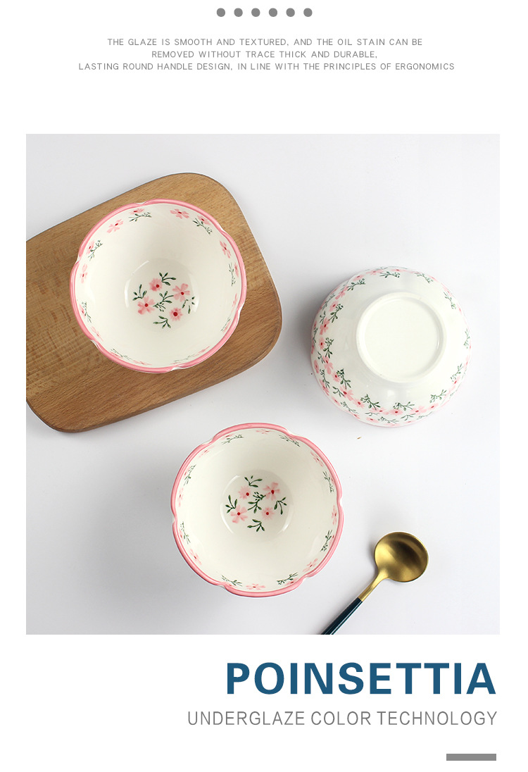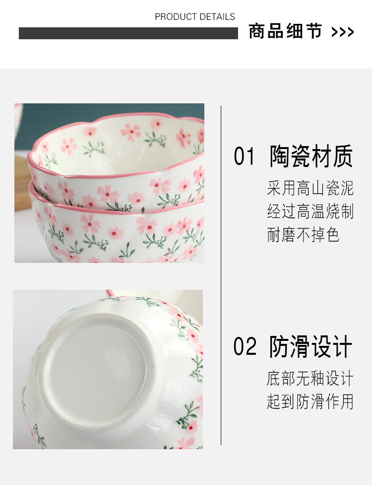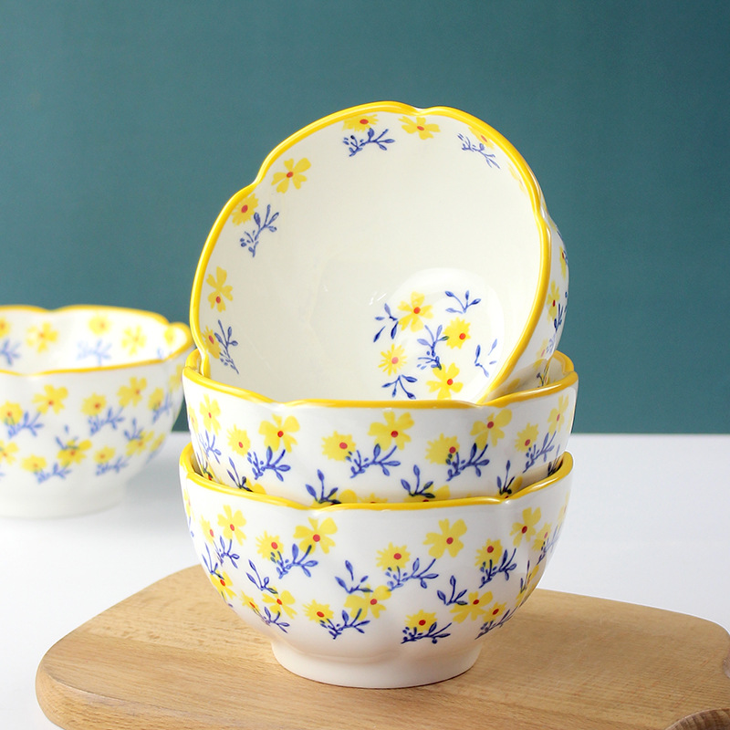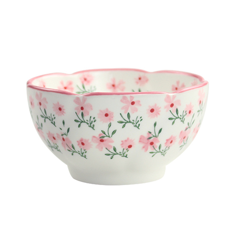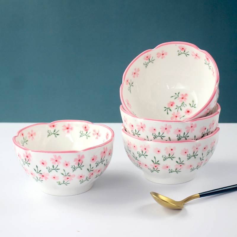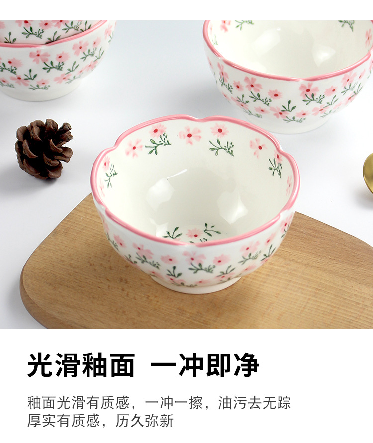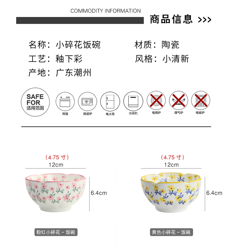 定制4.75英寸花型饭碗釉下彩小碎花陶瓷碗家用小碗支持来图来样