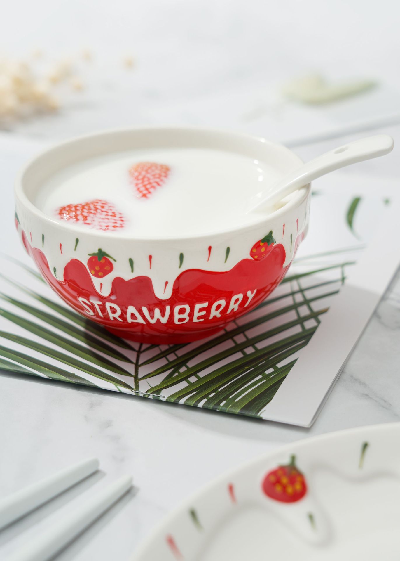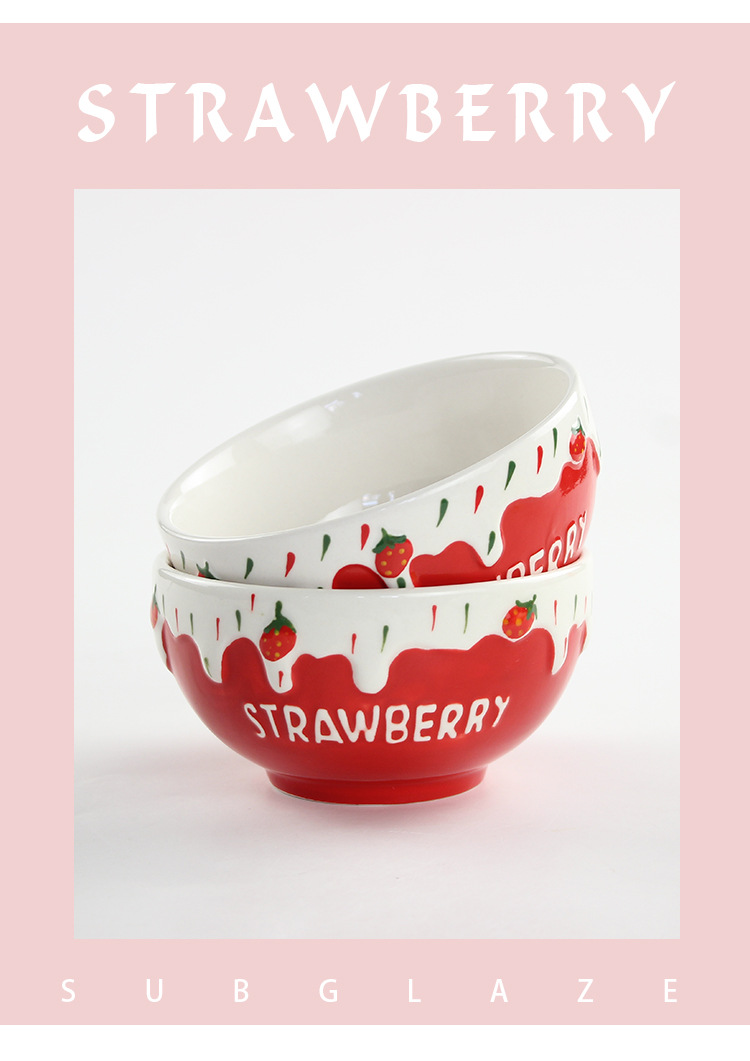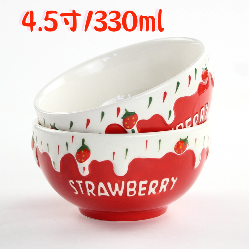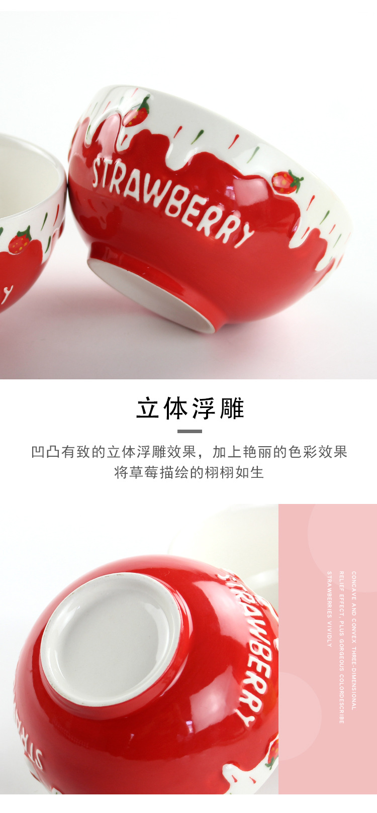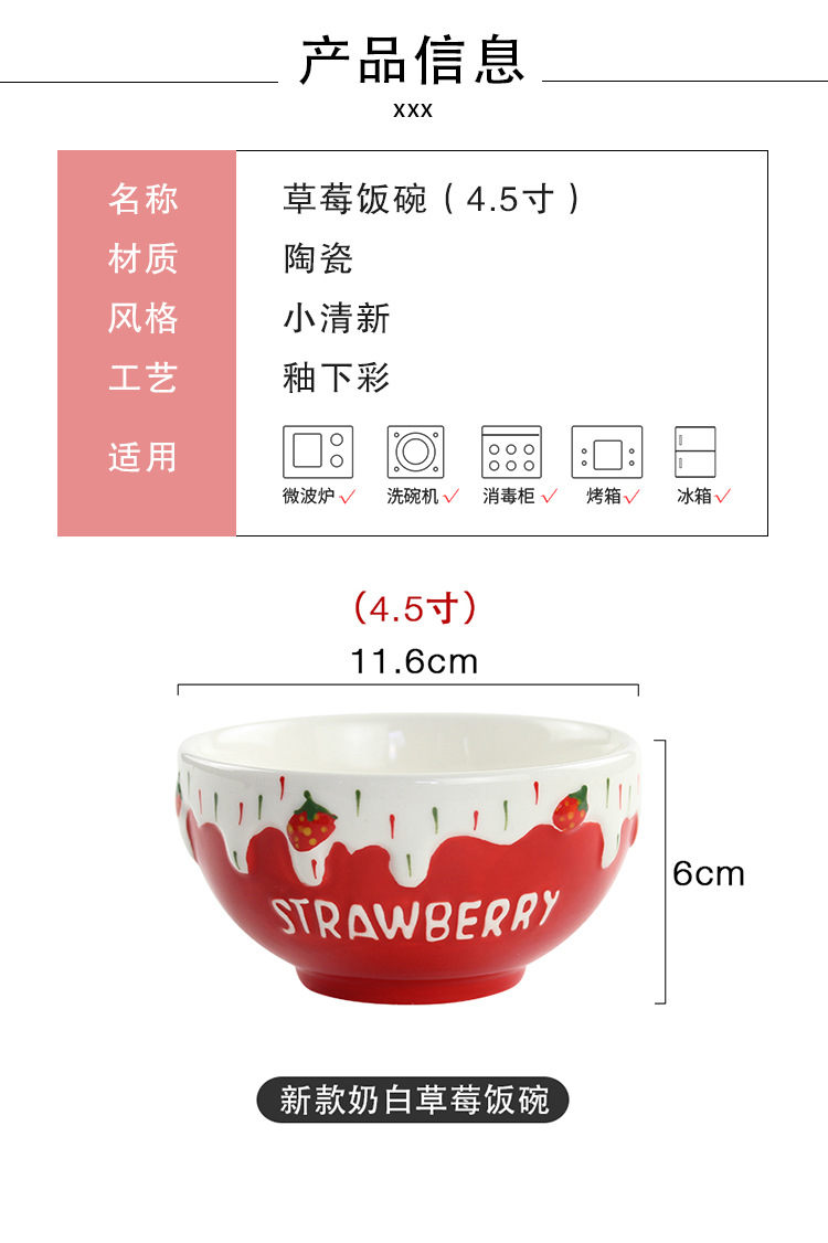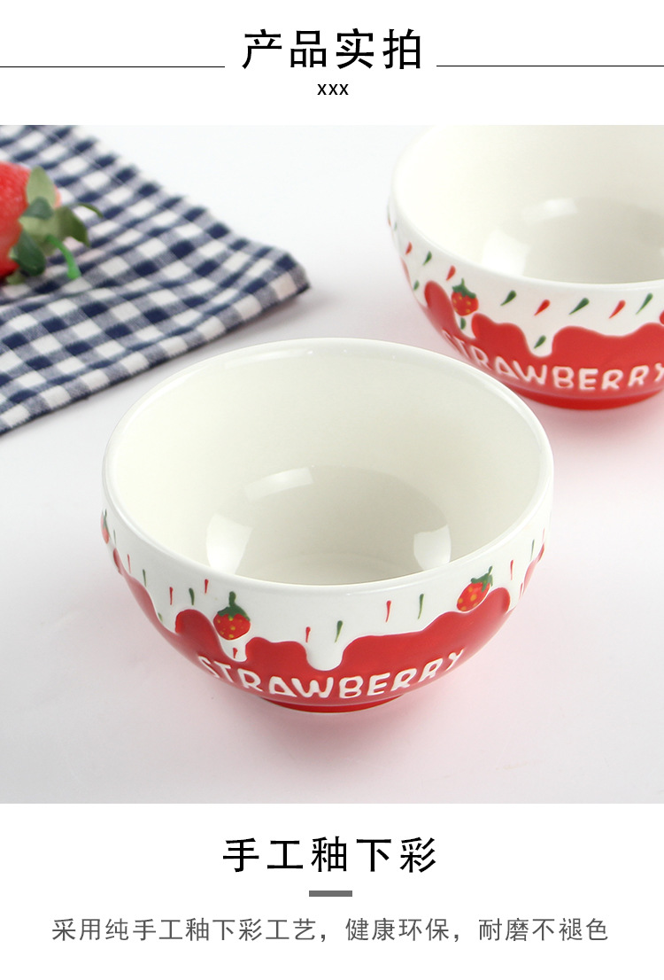 批发4.5寸可爱奶白草莓陶瓷饭碗 釉下彩少女心甜品碗酸奶碗早餐碗