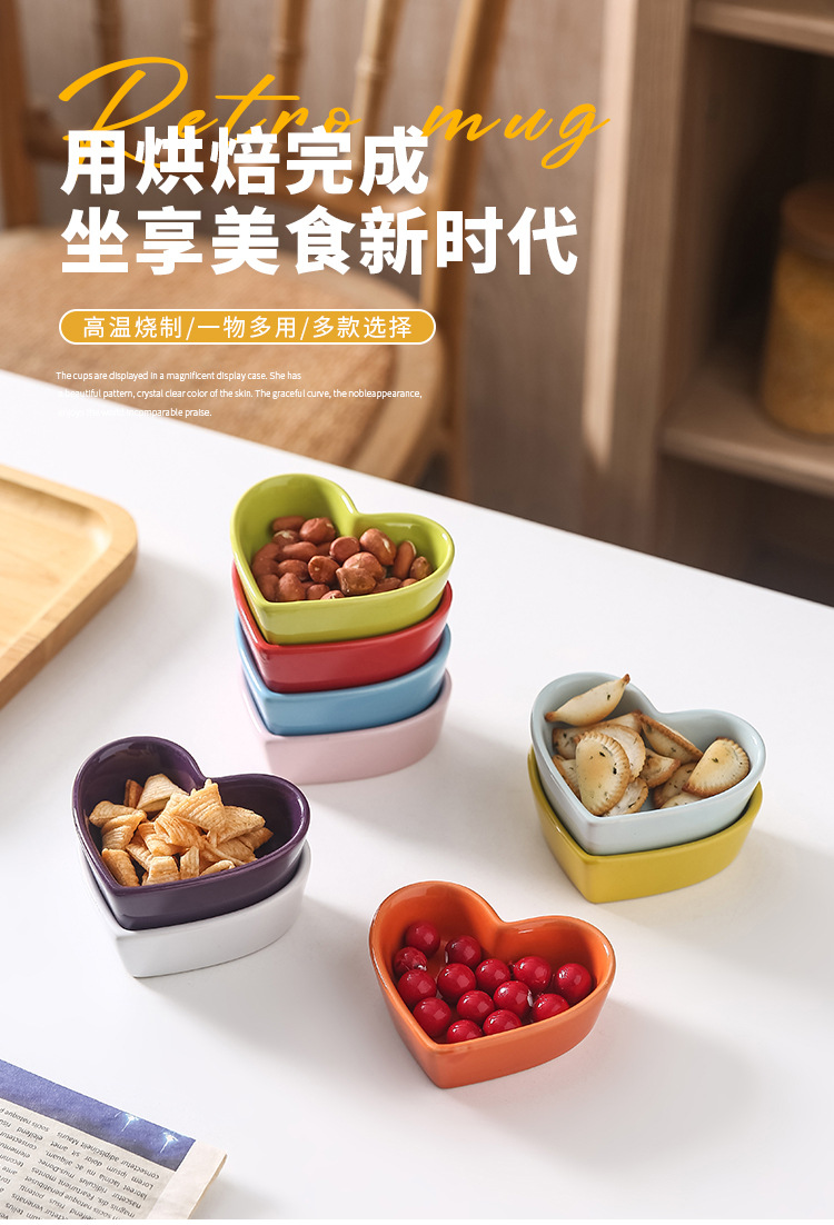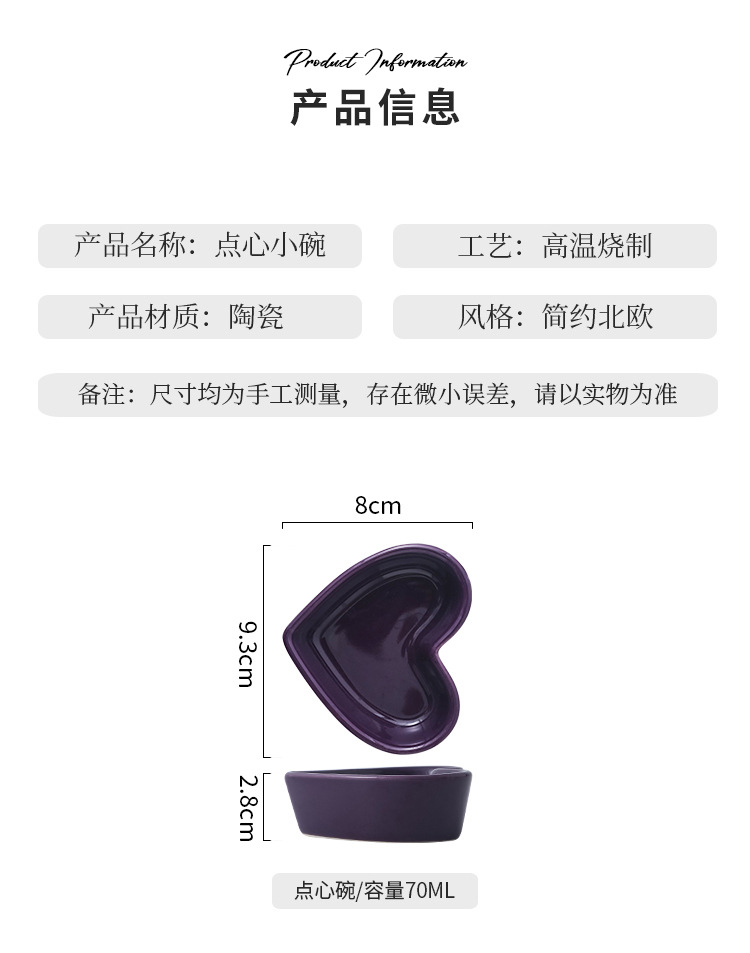定制心形碟简约风蛋糕甜品烘焙陶瓷小碗蘸料蘸酱碟可来图来样加工