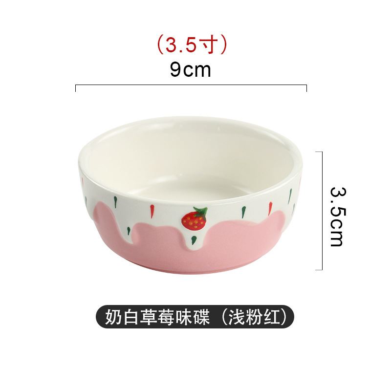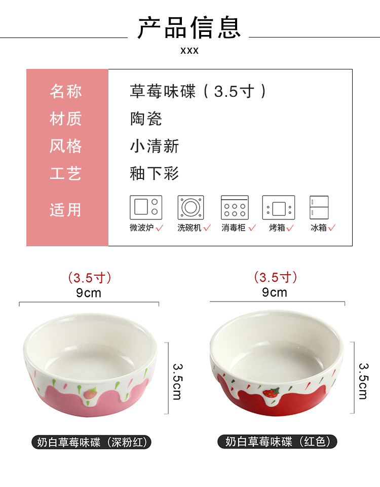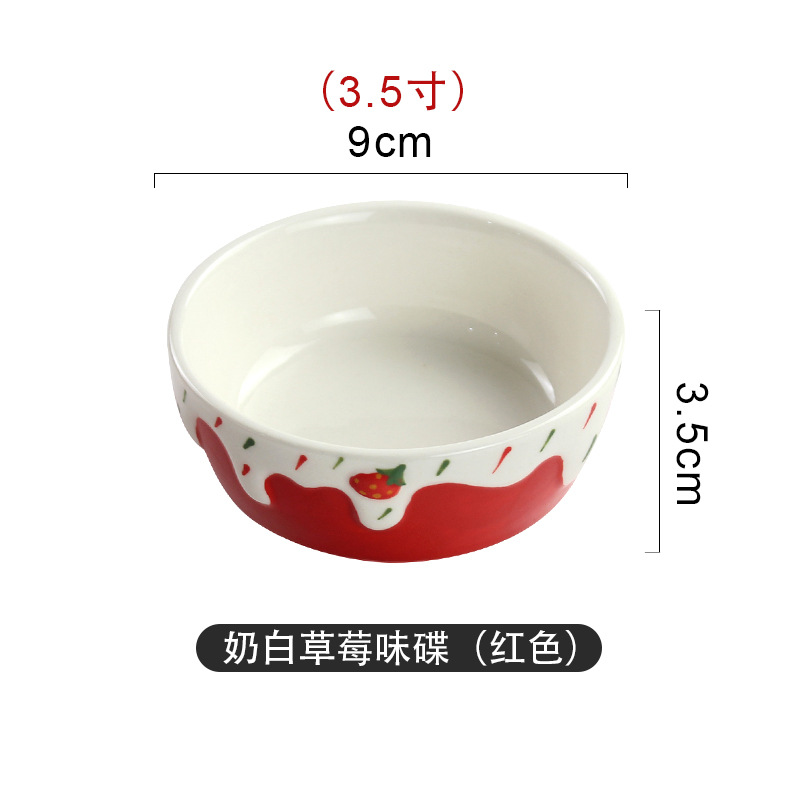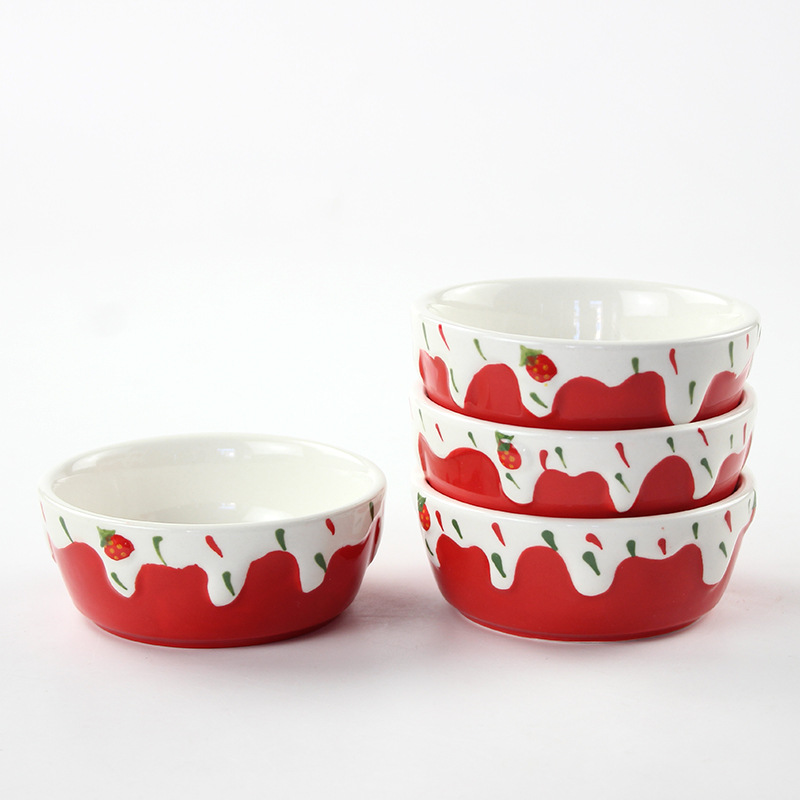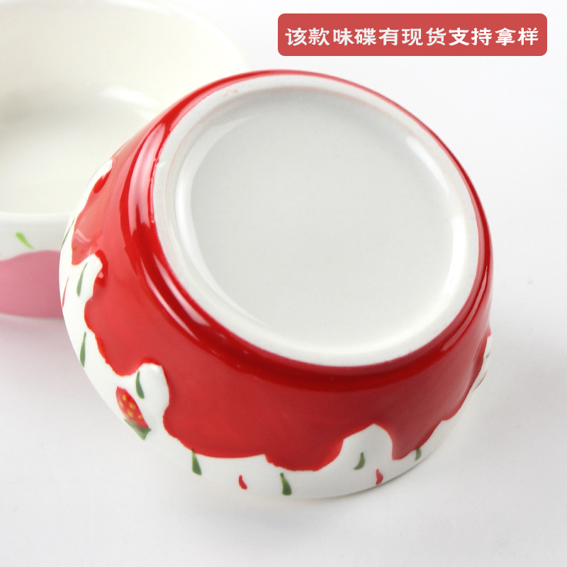 定制蘸酱味碟手工彩绘浮雕草莓碟高颜值家用耐高温釉下彩陶瓷小碗