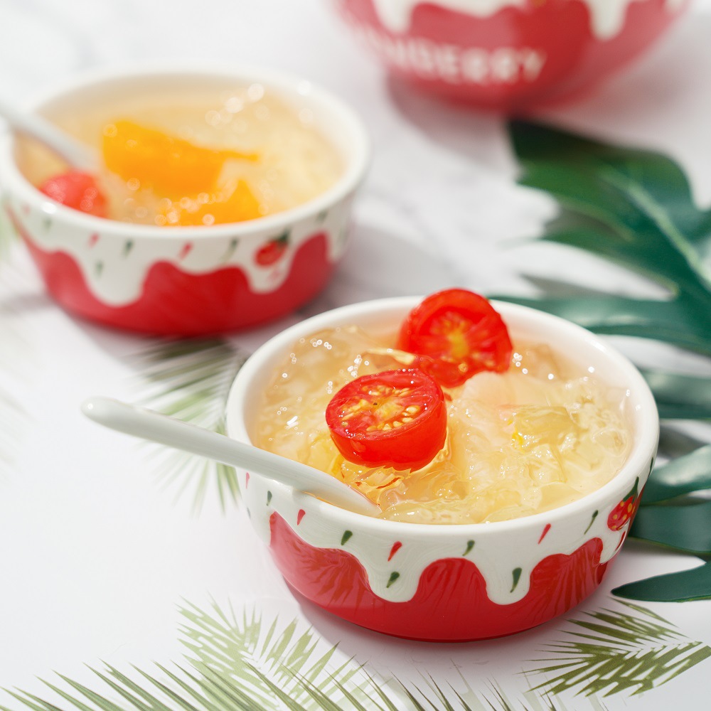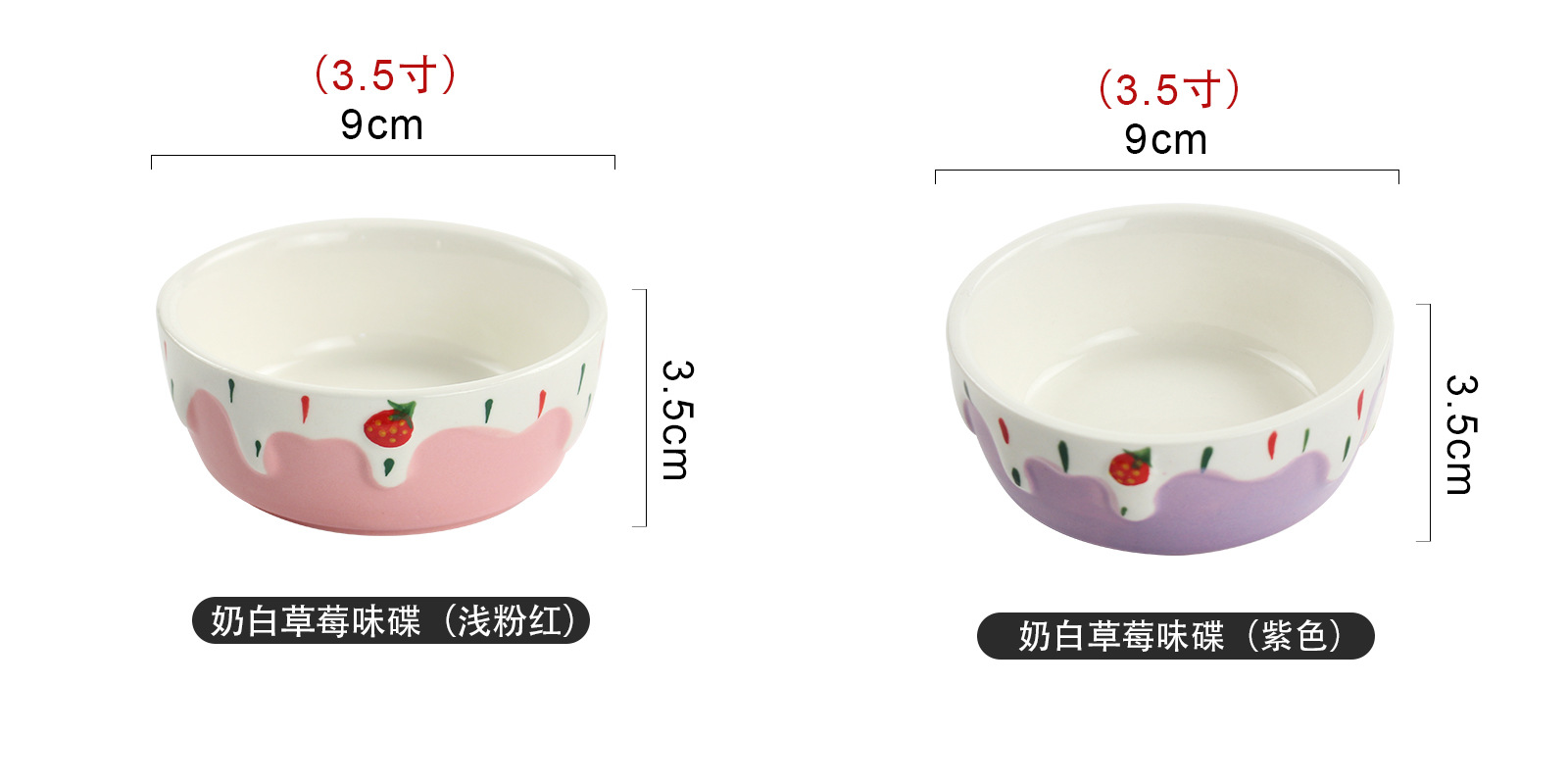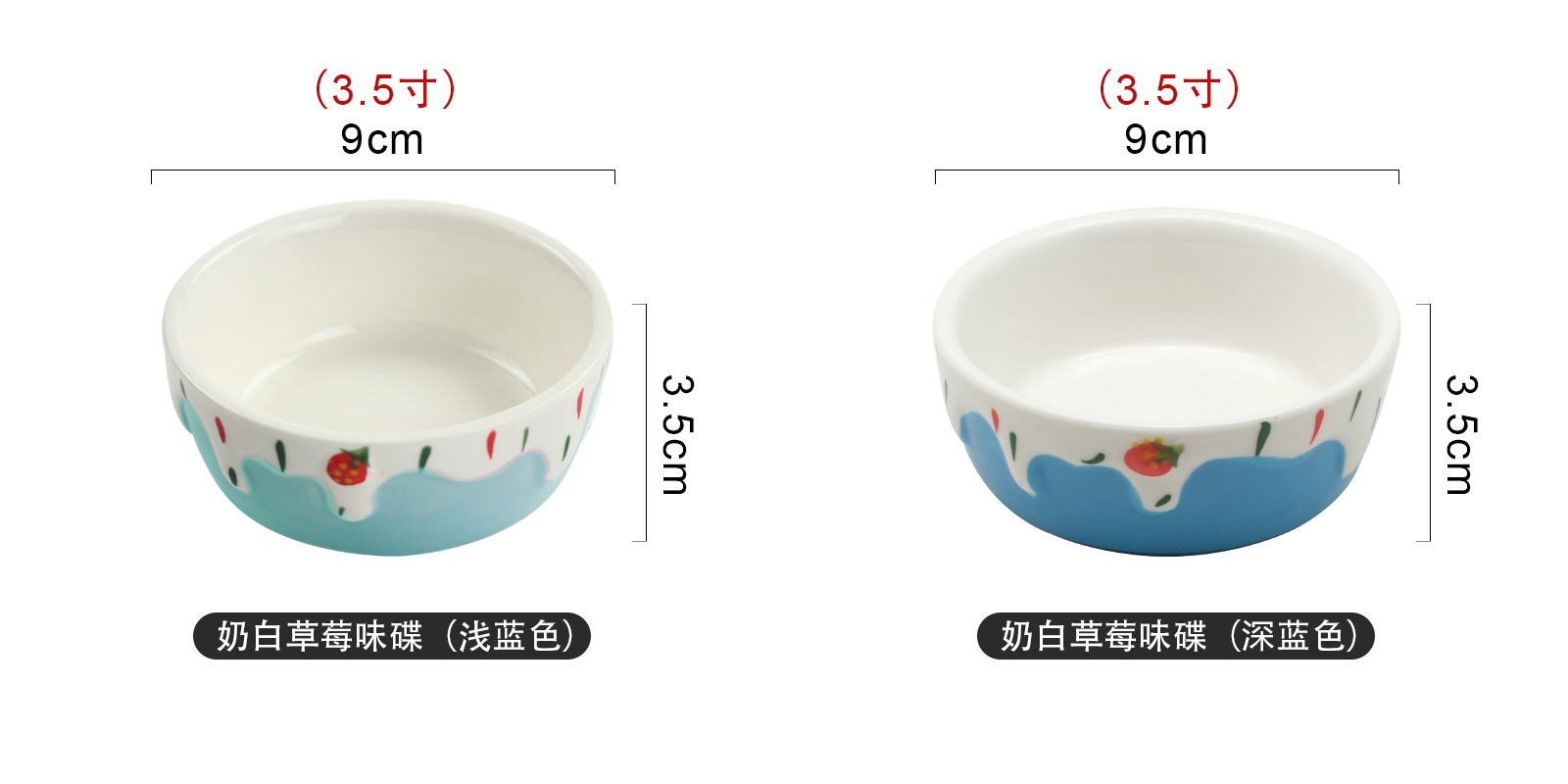 定制蘸酱味碟手工彩绘浮雕草莓碟高颜值家用耐高温釉下彩陶瓷小碗