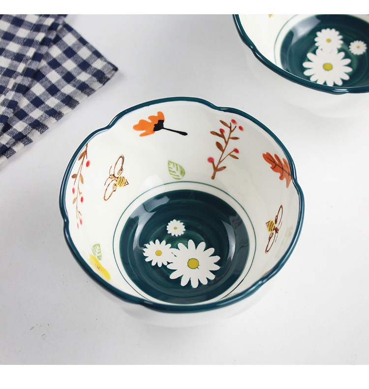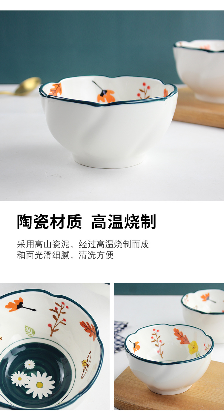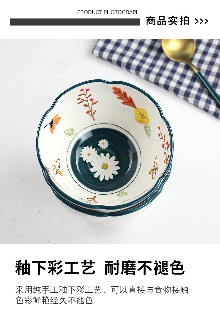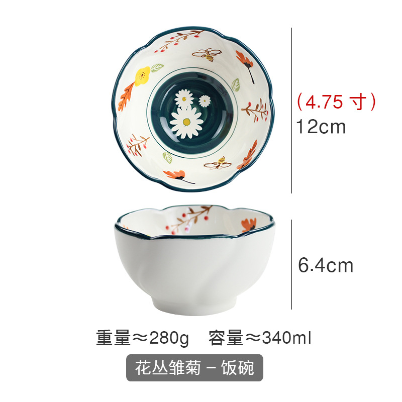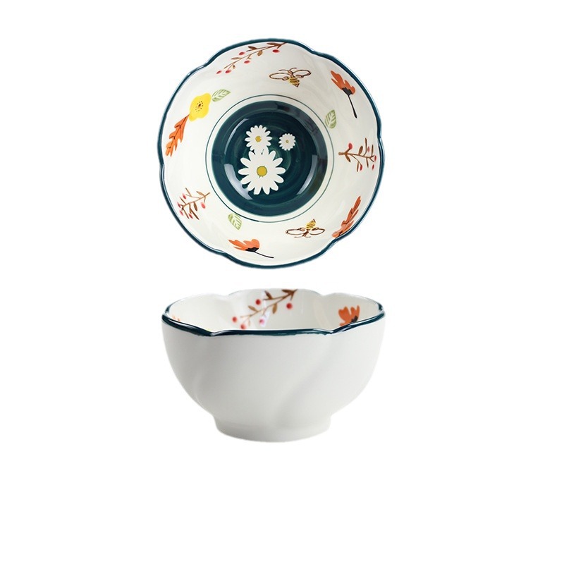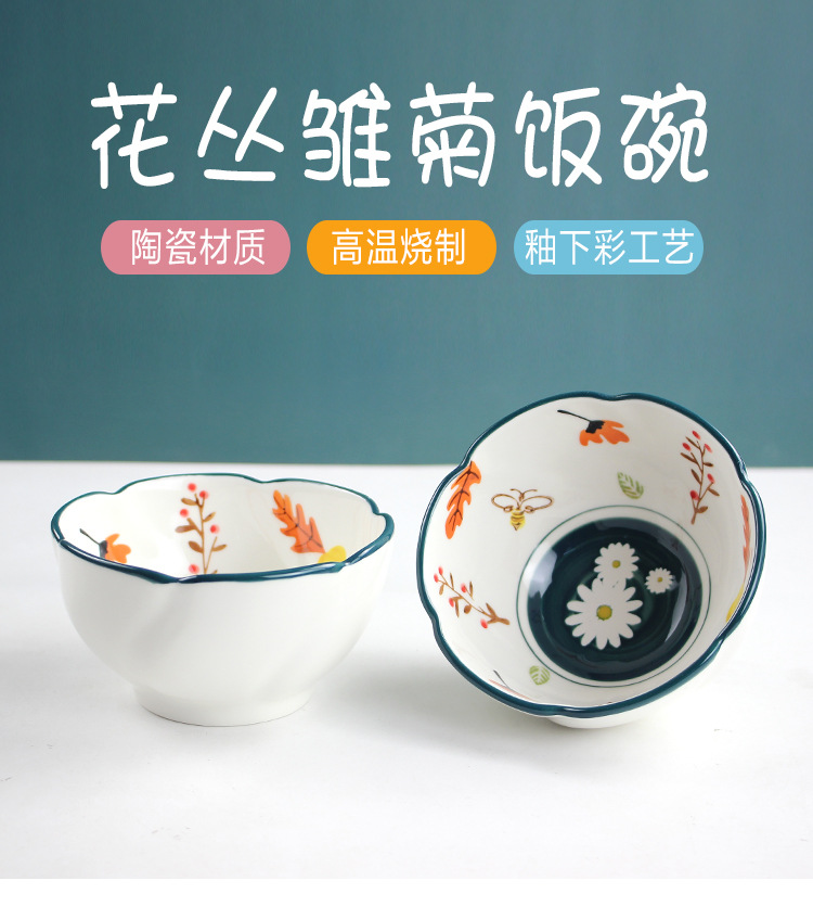 批发陶瓷碗雏菊花边甜品碗家用釉下彩4.75寸饭碗个人专用汤碗小碗