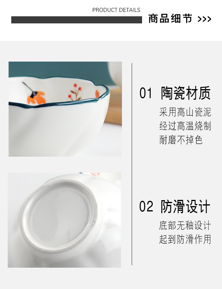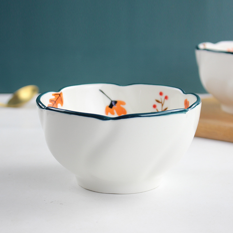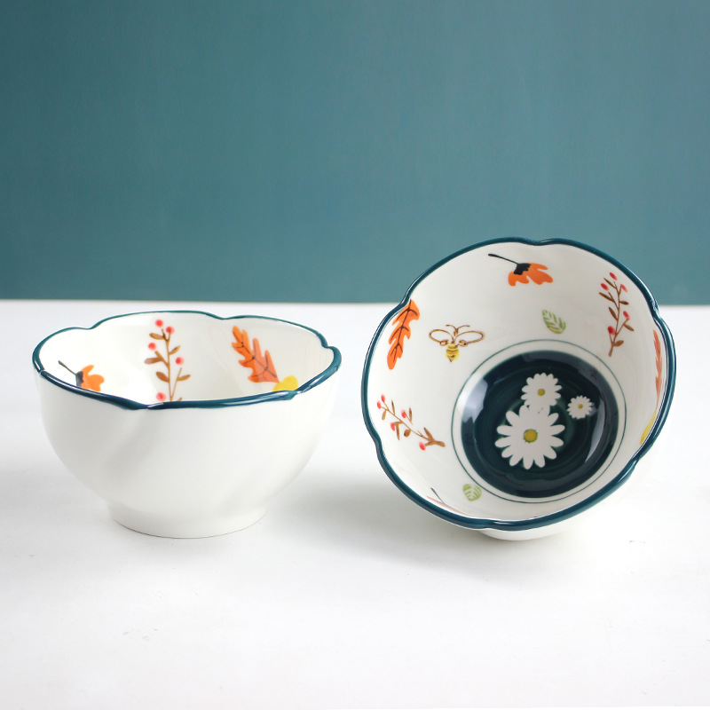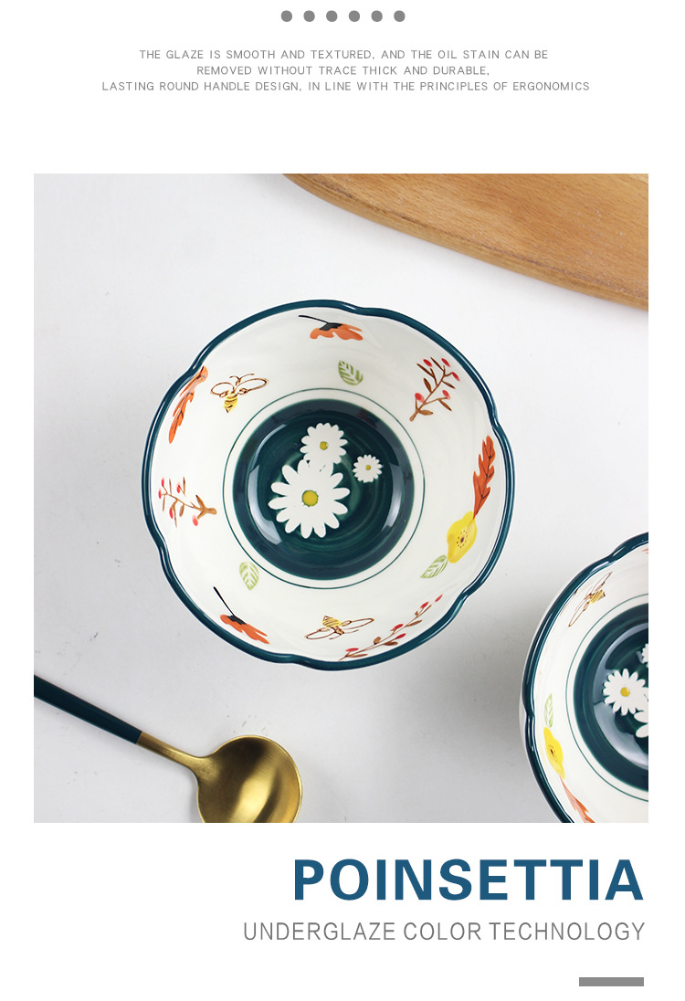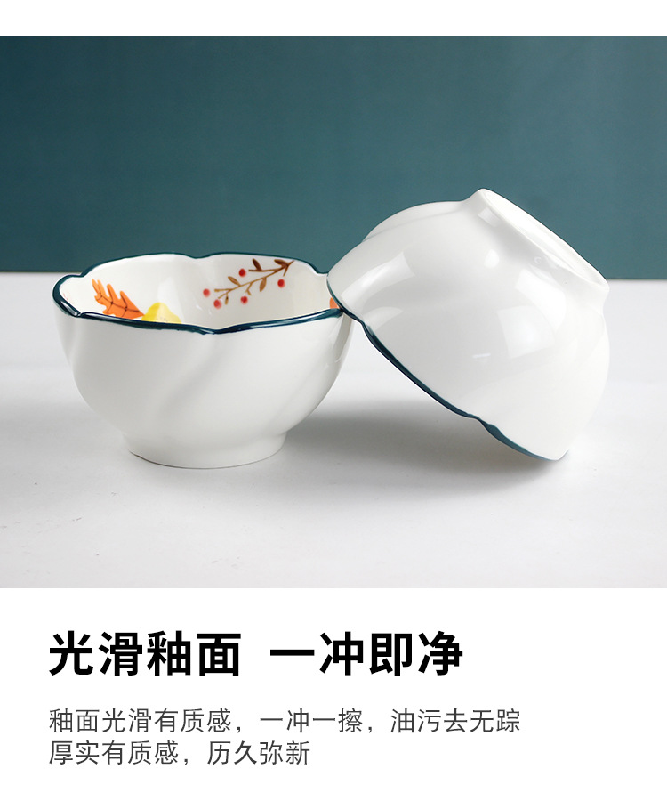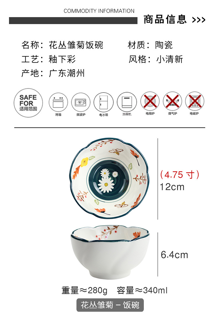 批发陶瓷碗雏菊花边甜品碗家用釉下彩4.75寸饭碗个人专用汤碗小碗