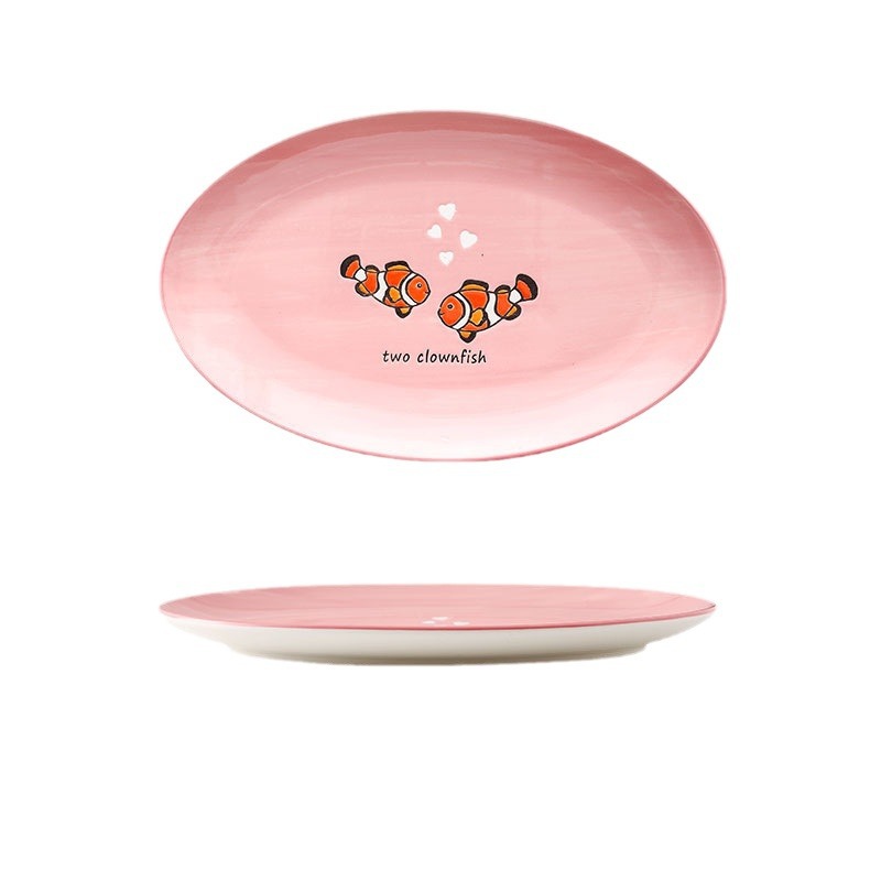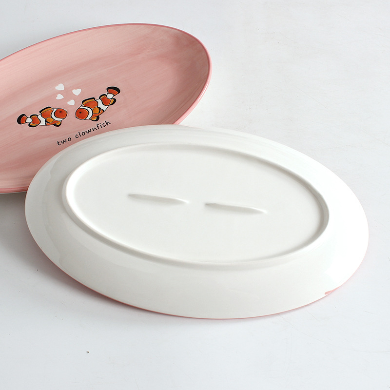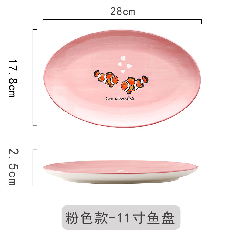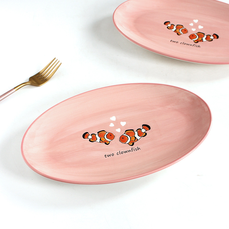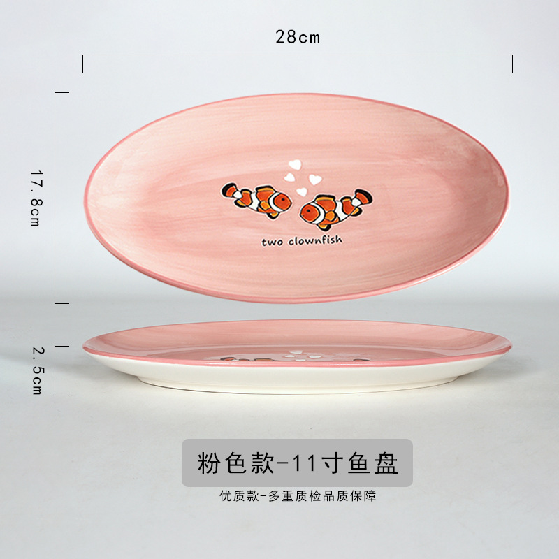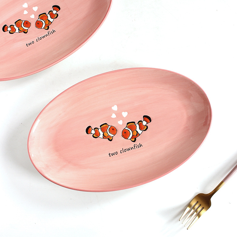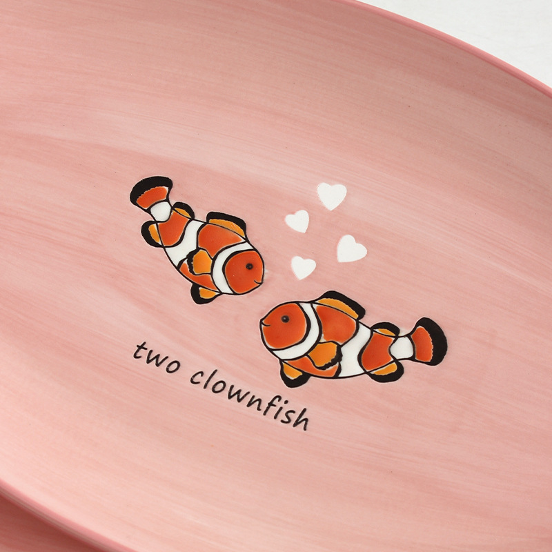 批发陶瓷盘子手工彩绘两只小丑鱼11寸鱼盘耐高温盘子家用菜盘餐盘