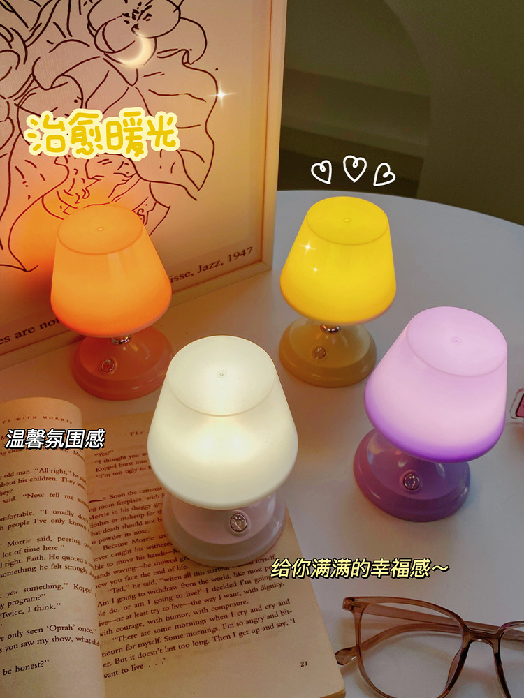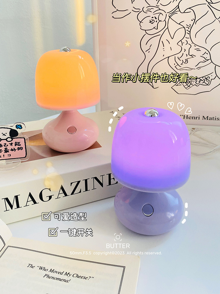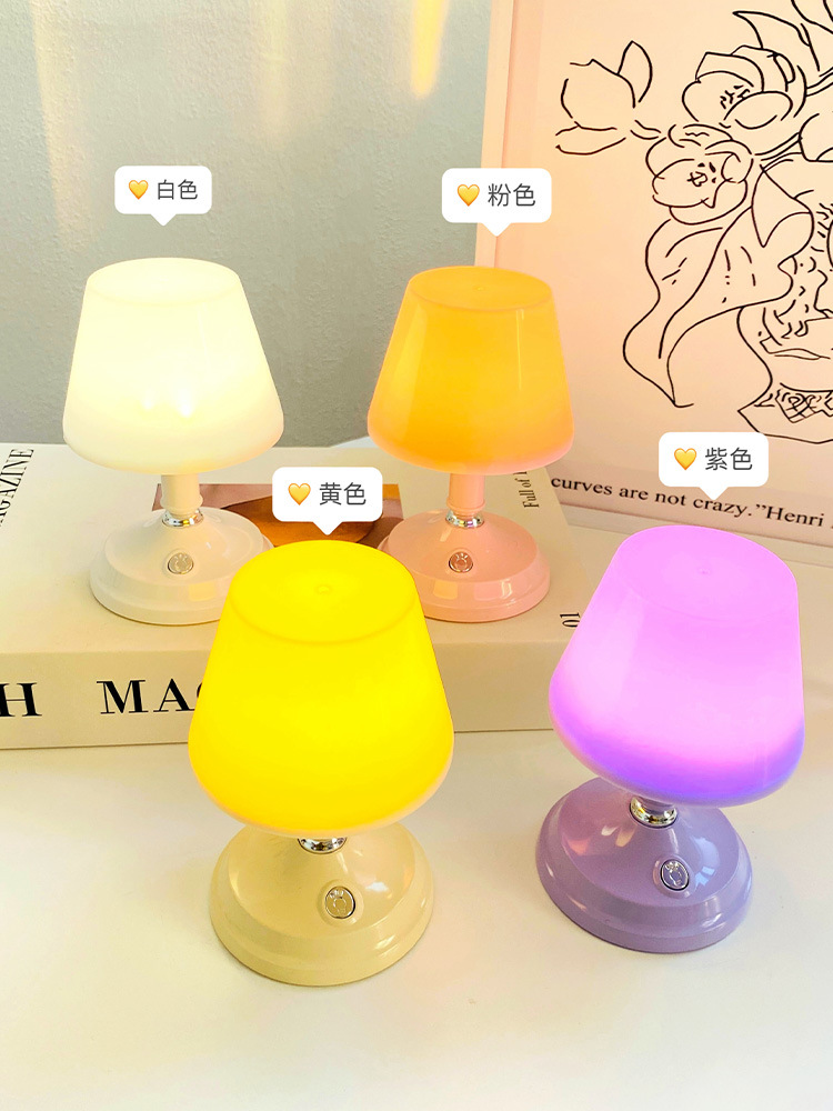 新款简约纽扣电池台灯学生宿舍学习便携卧室小夜灯床头可爱台灯
