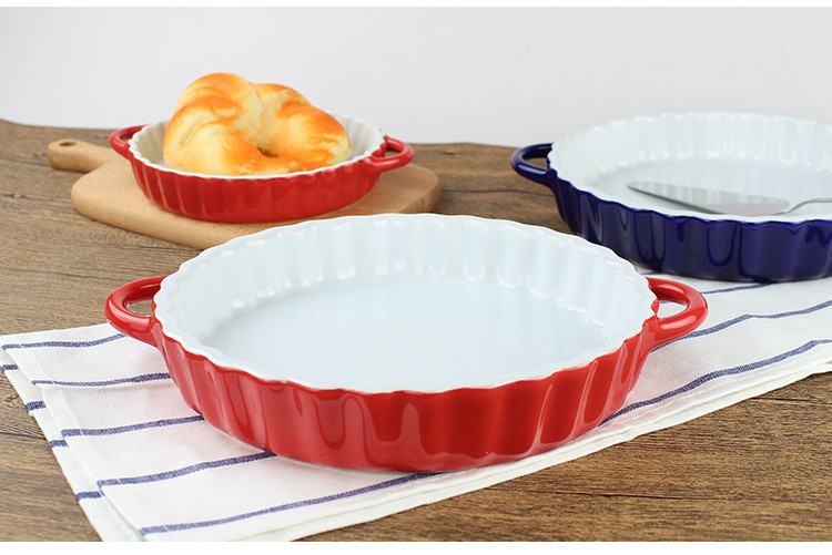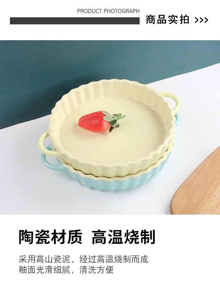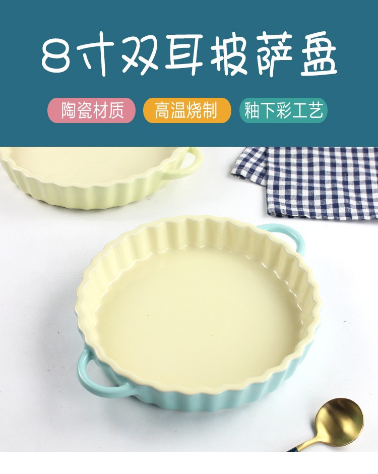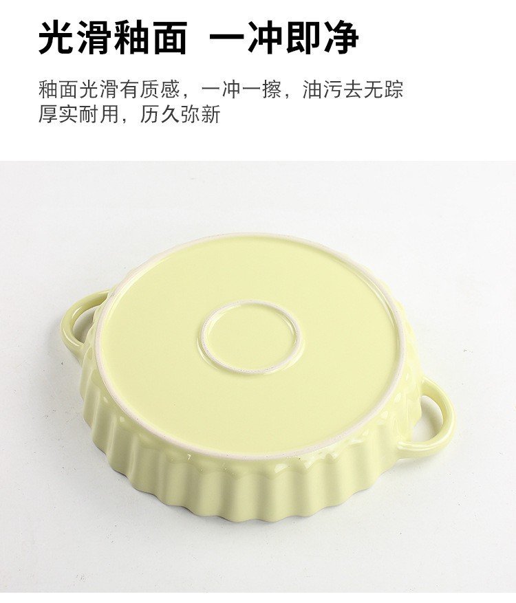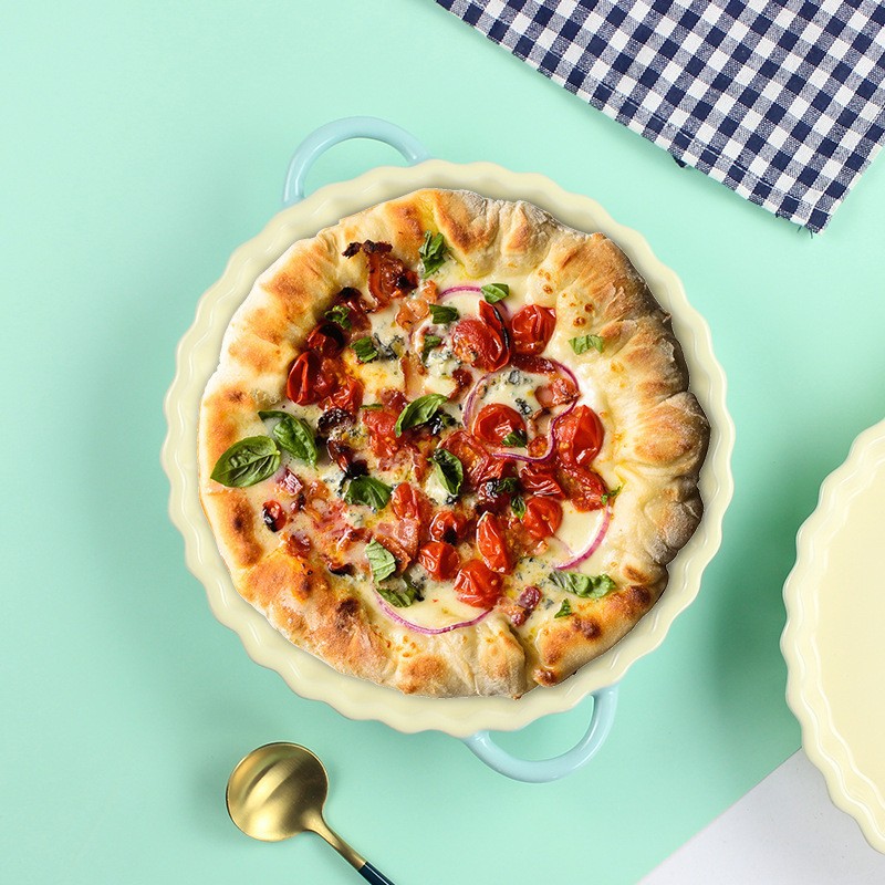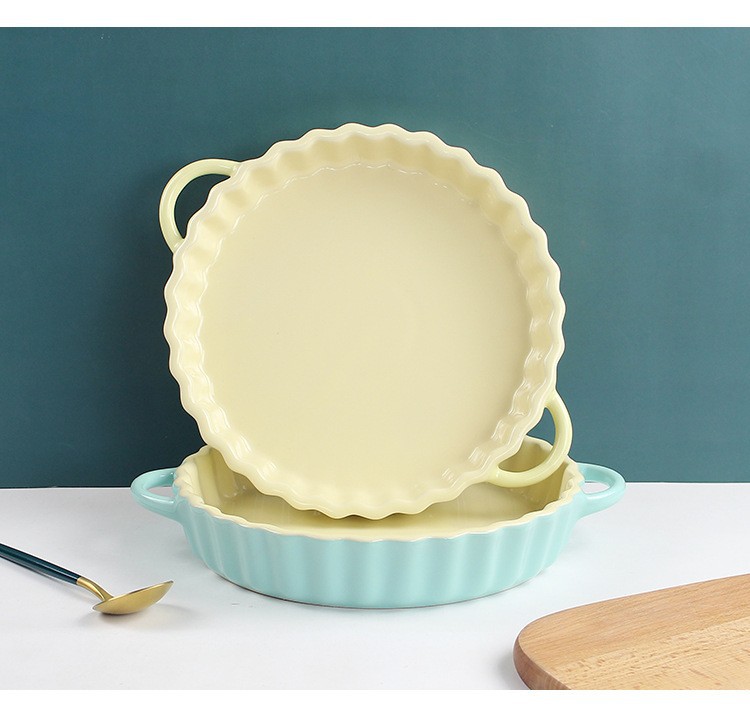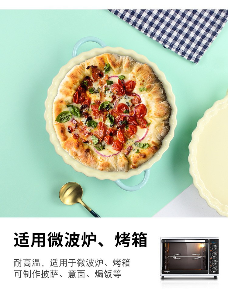 批发北欧风波浪边派盘耐高温双耳披萨盘条纹家用菜盘圆形西餐盘子