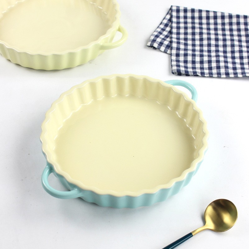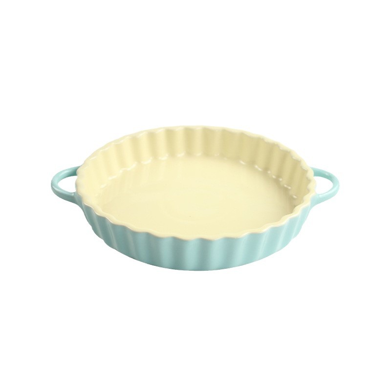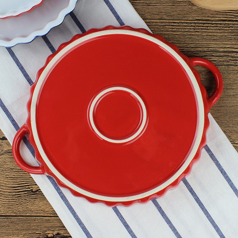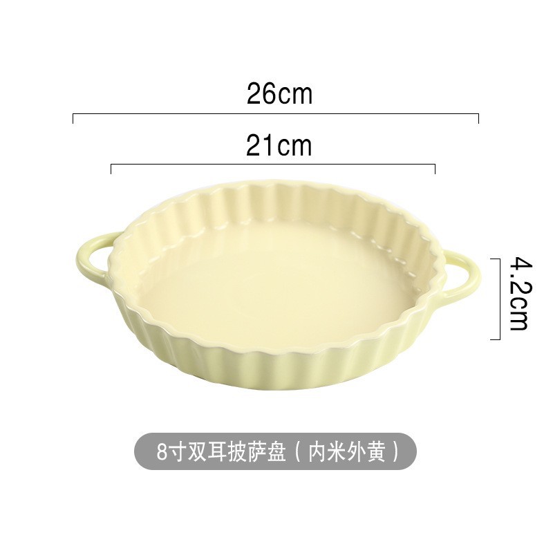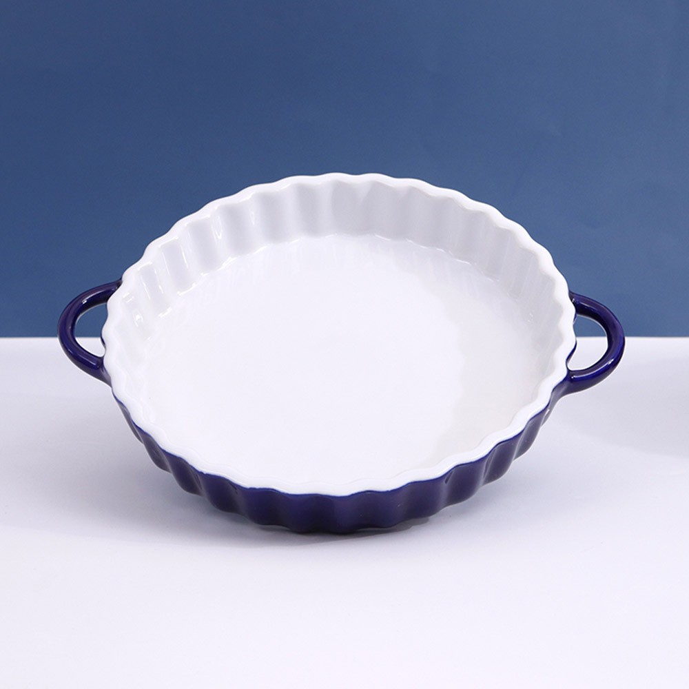 批发北欧风波浪边派盘耐高温双耳披萨盘条纹家用菜盘圆形西餐盘子