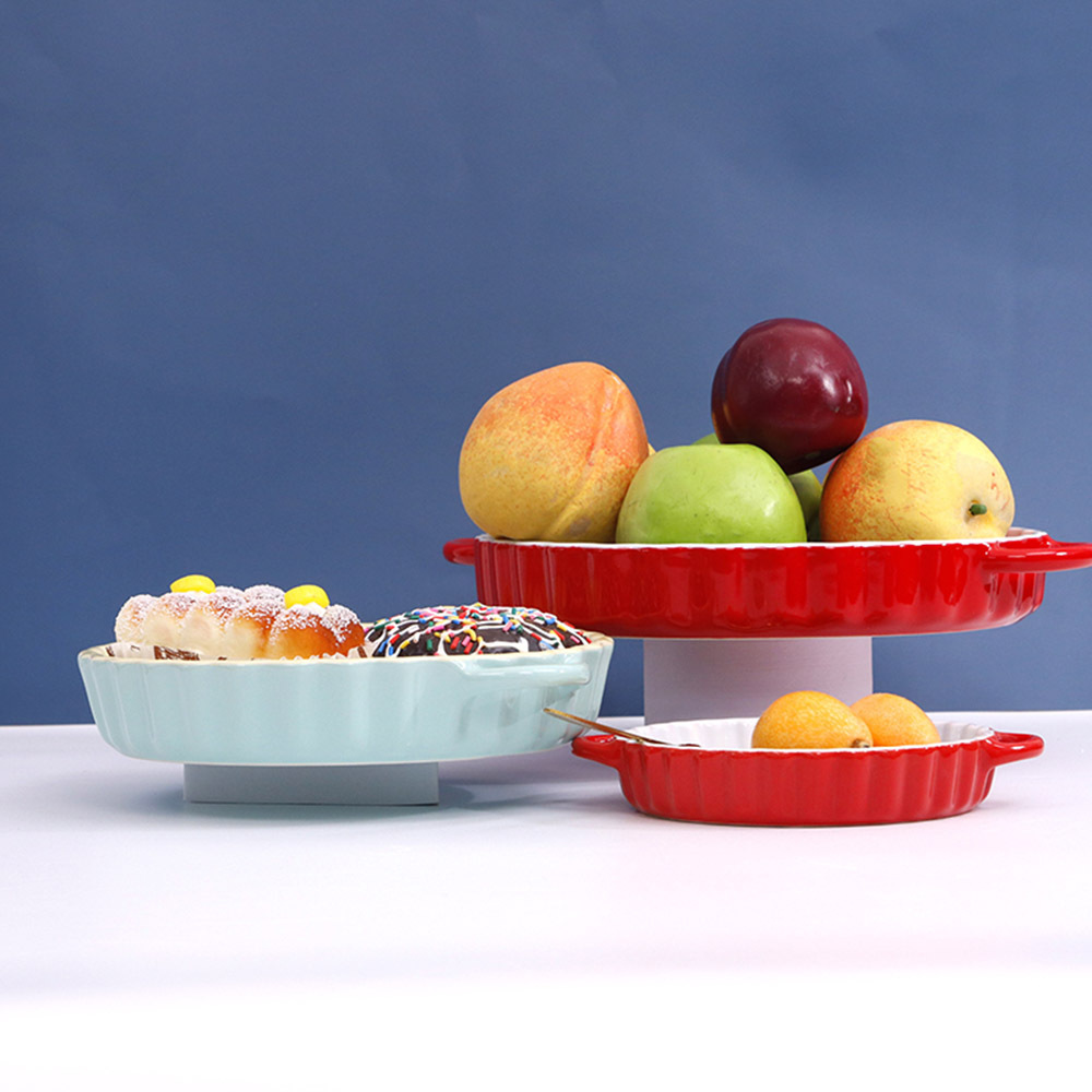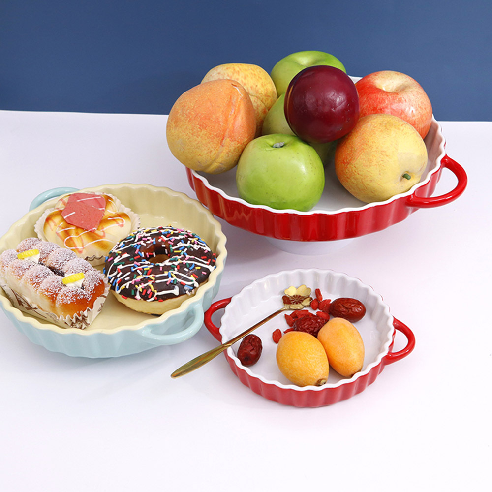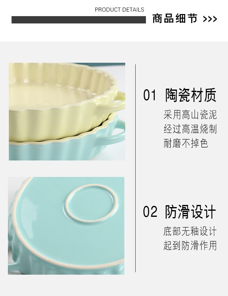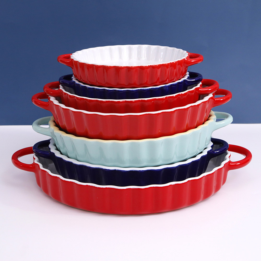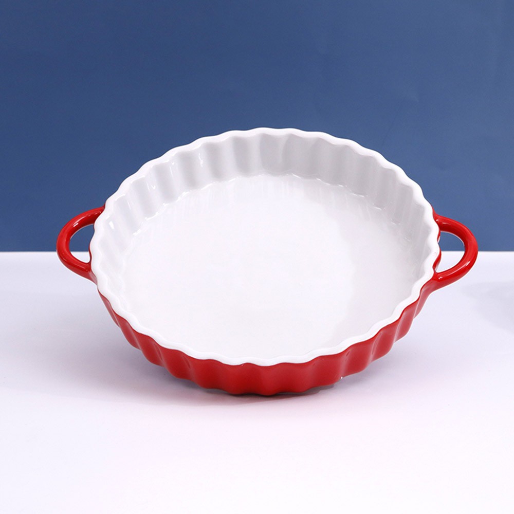 批发北欧风波浪边派盘耐高温双耳披萨盘条纹家用菜盘圆形西餐盘子