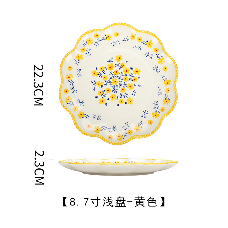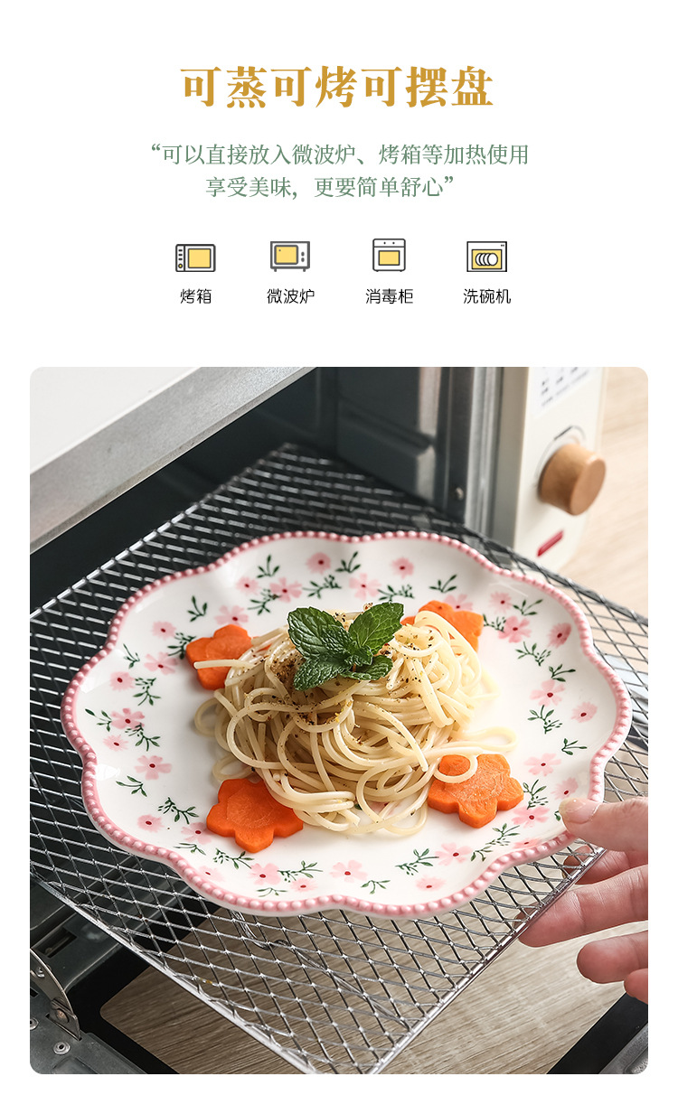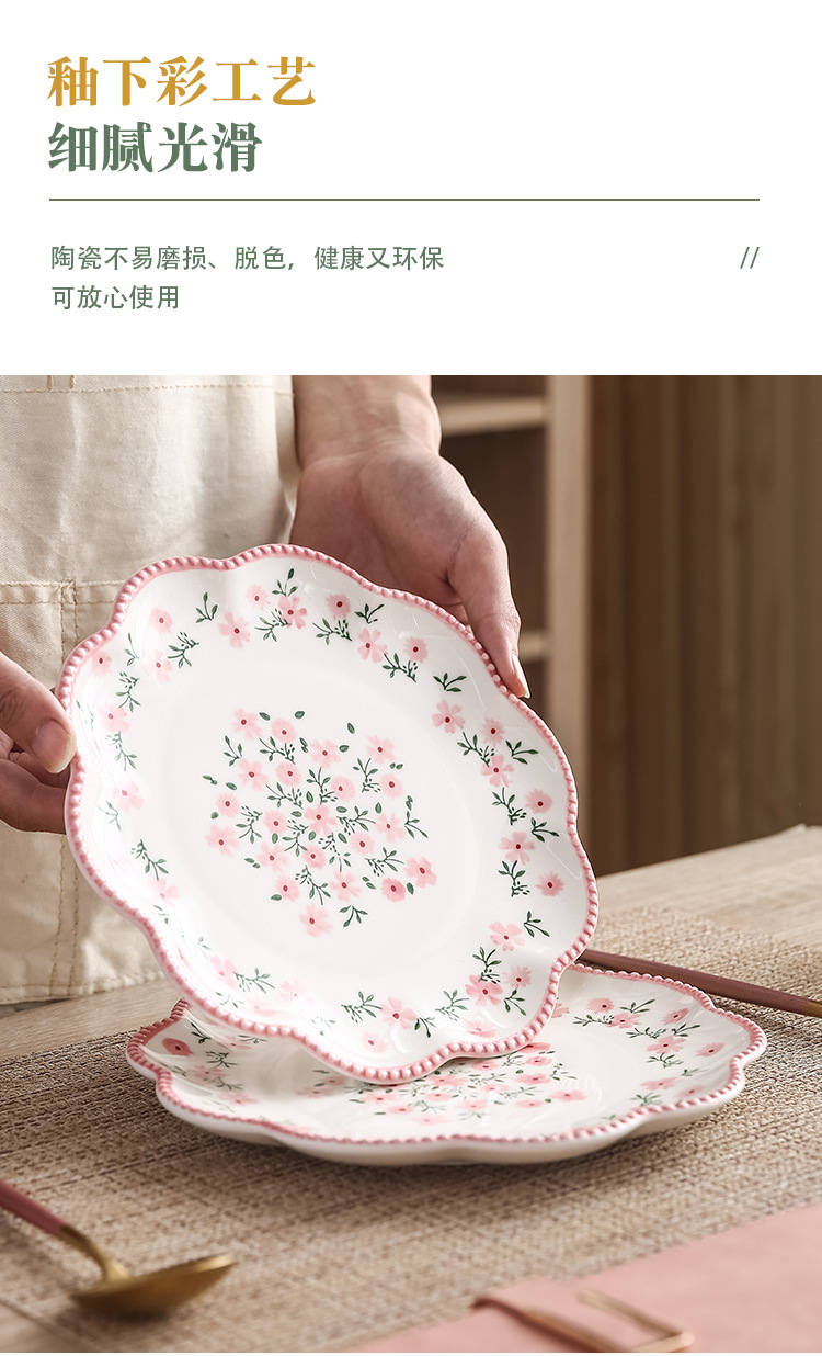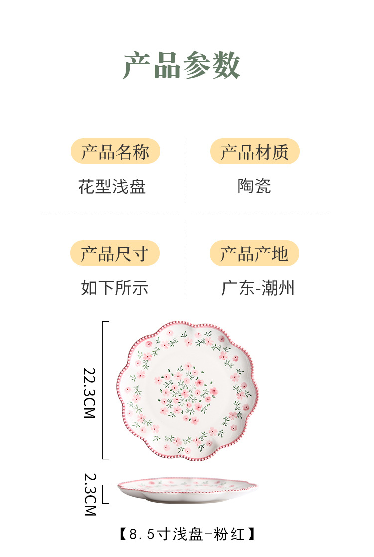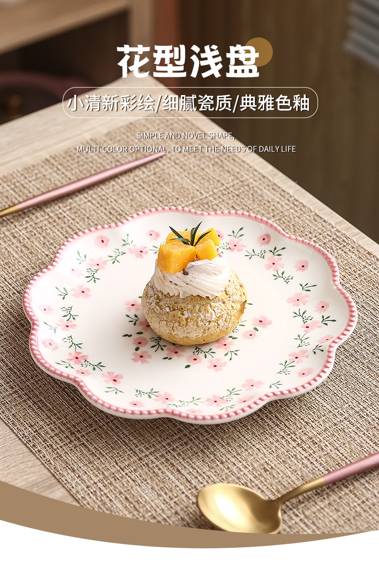 包邮花型浅盘陶瓷盘耐高温家用牛排盘西餐盘小清新花卉点心甜品盘