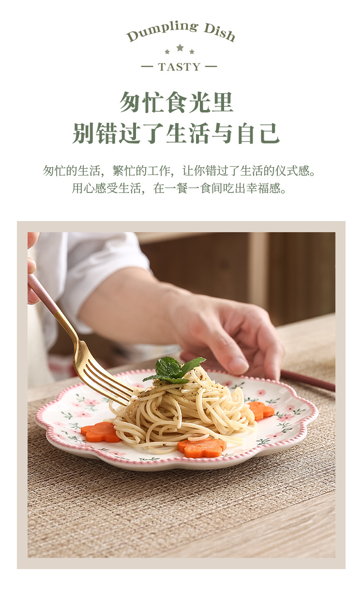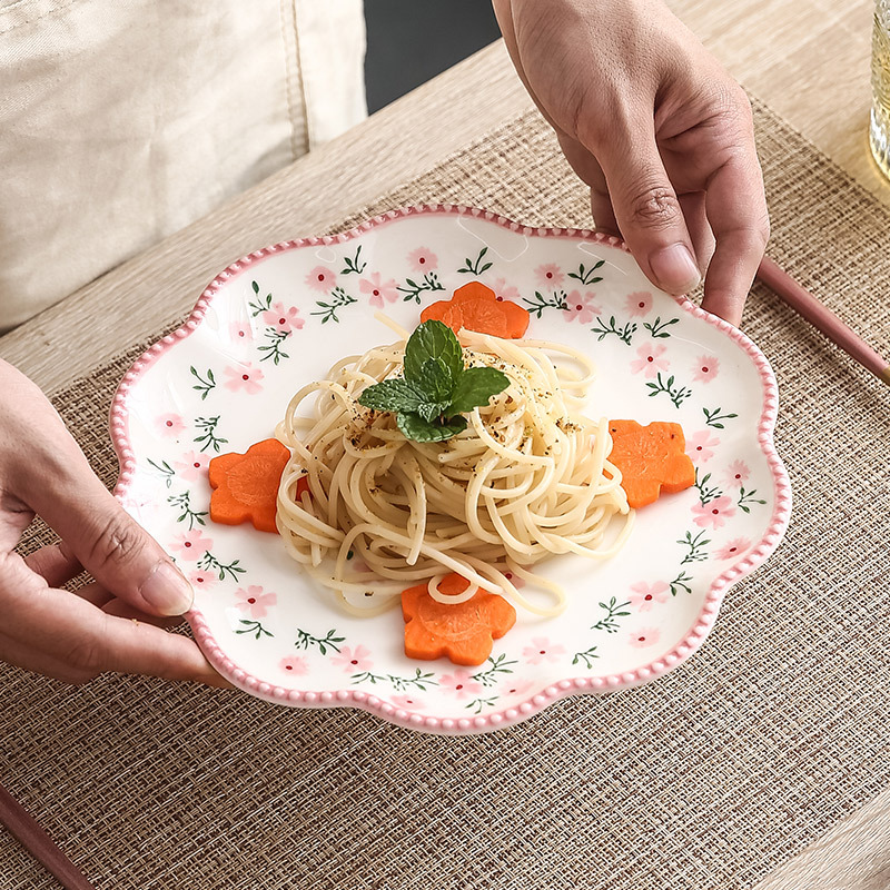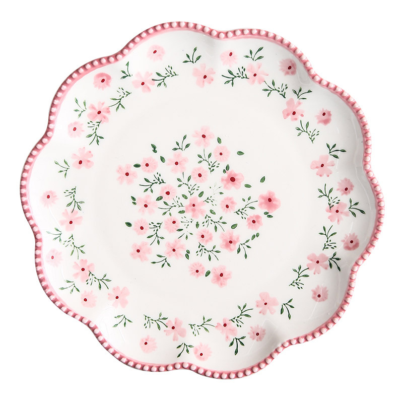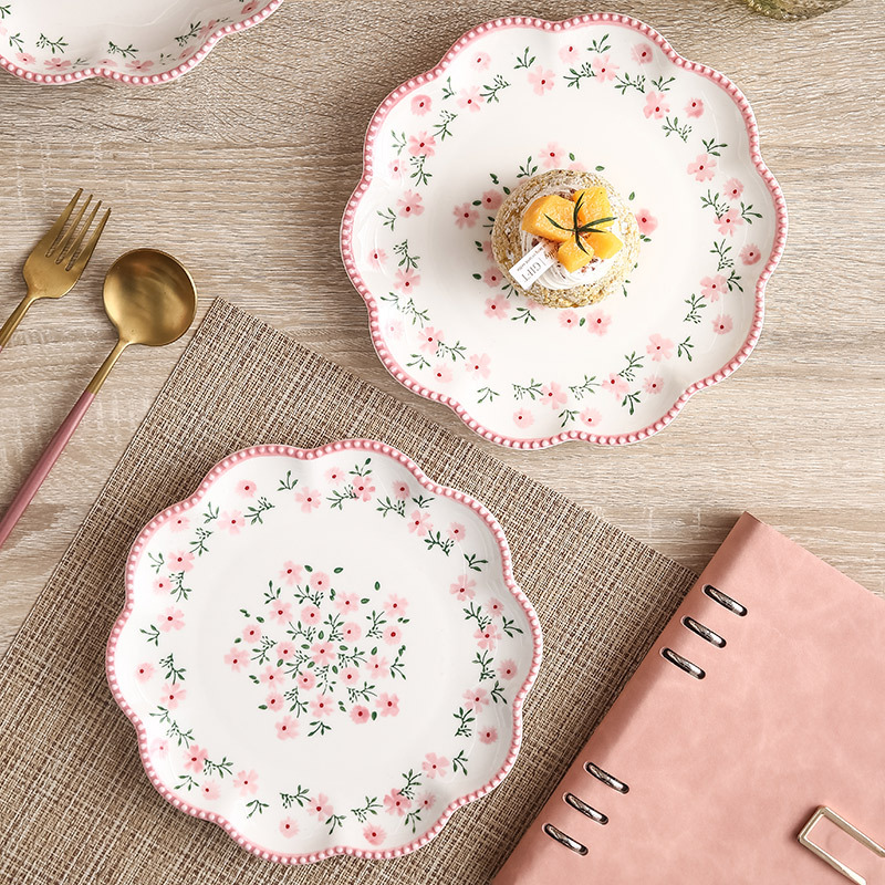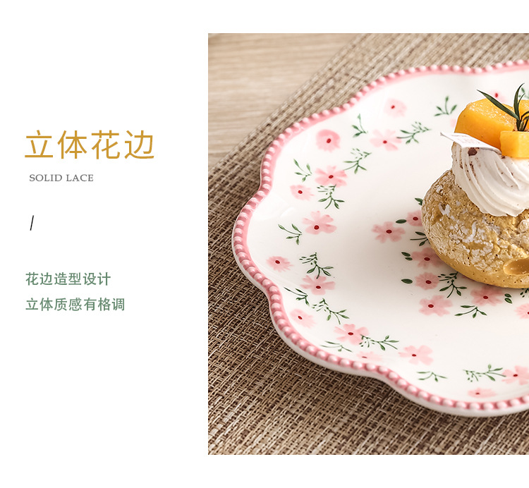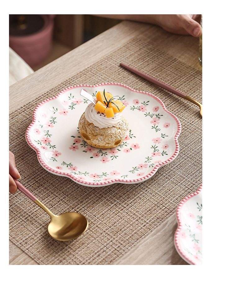 包邮花型浅盘陶瓷盘耐高温家用牛排盘西餐盘小清新花卉点心甜品盘