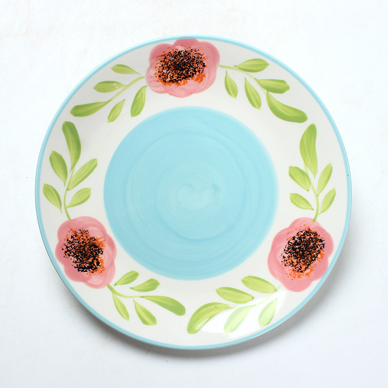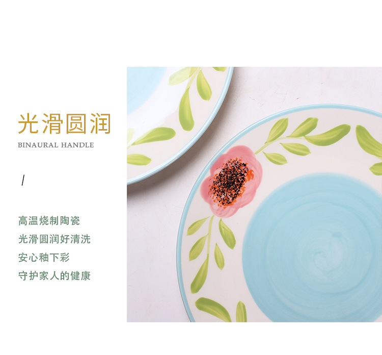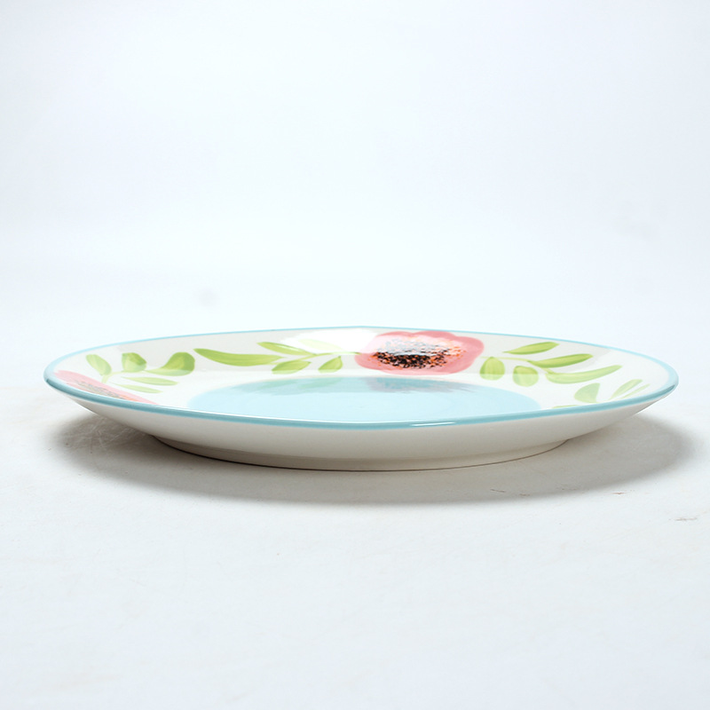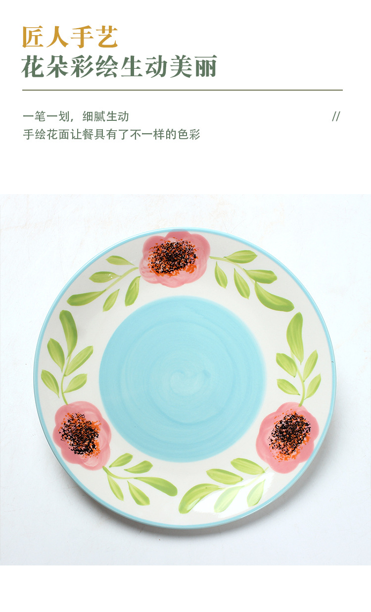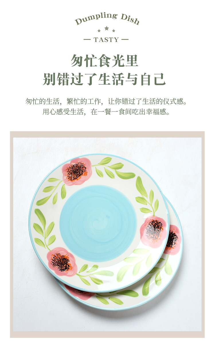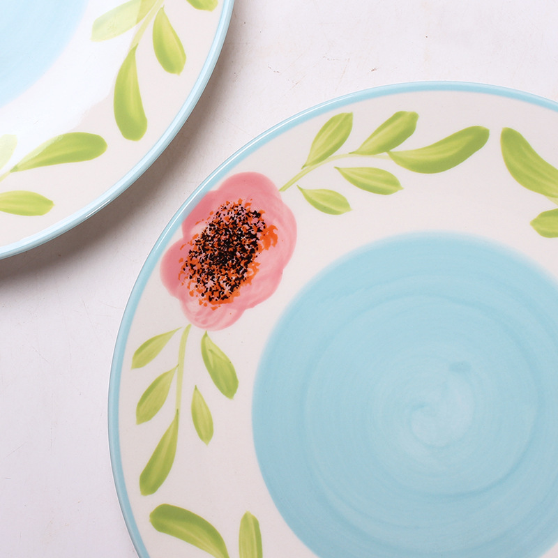 包邮浅色花卉盘子小清新甜品点心盘子釉下彩耐高温家用菜盘陶瓷盘