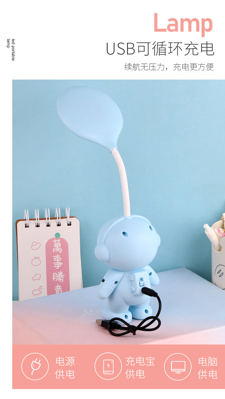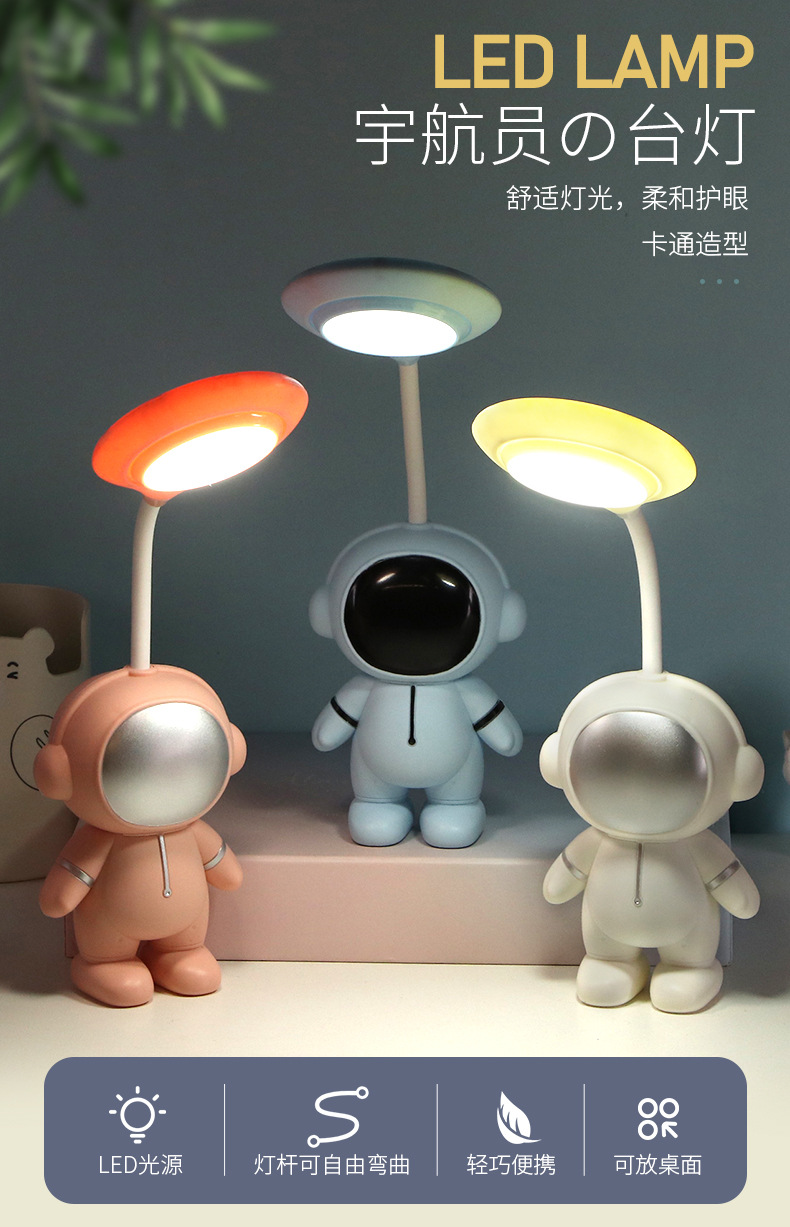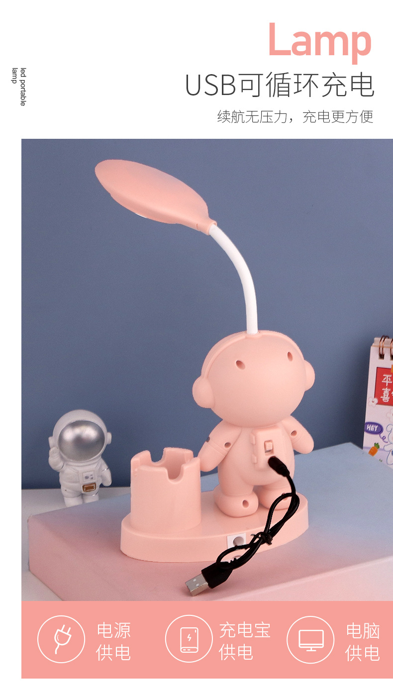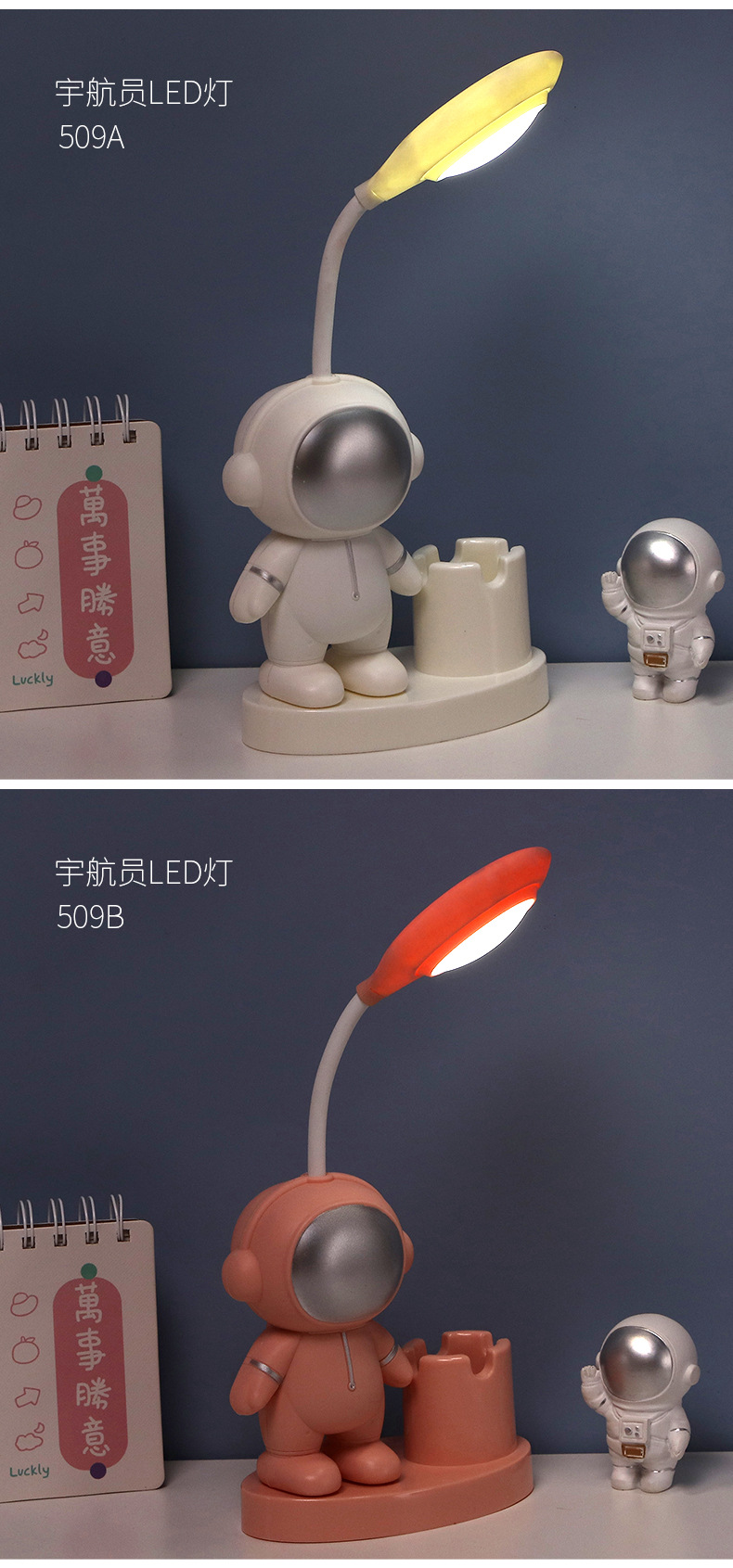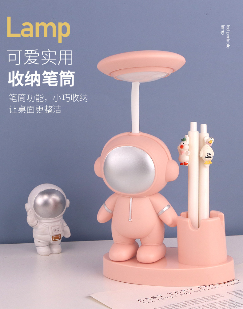 跨境新款宇航员削笔刀台灯充电桌面卡通太空人笔筒小台灯儿童礼品