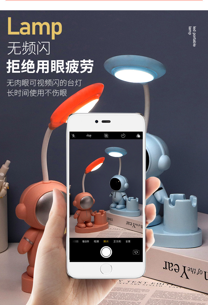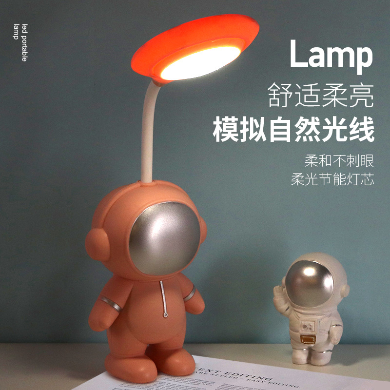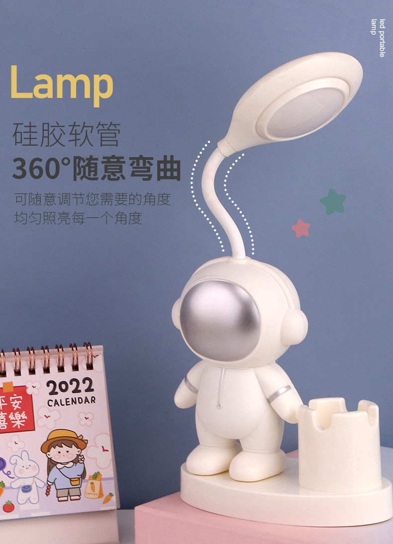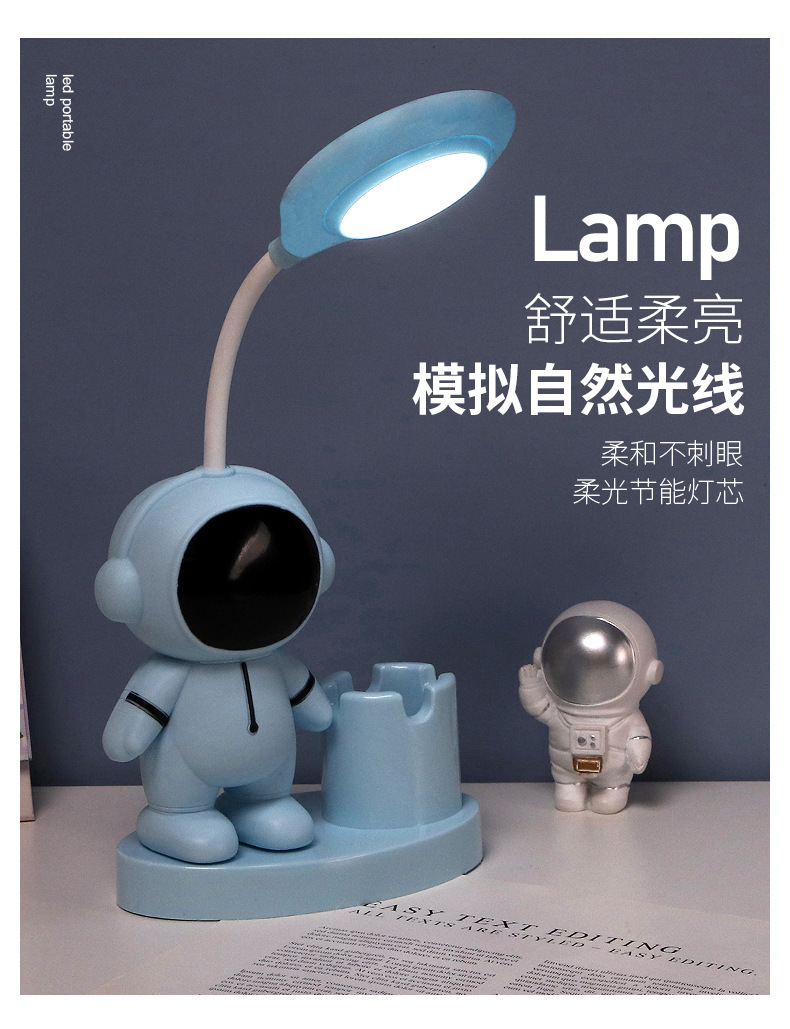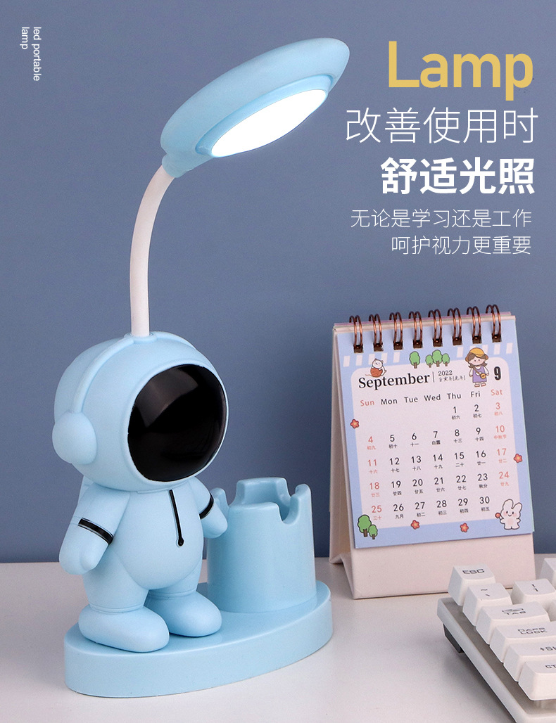 跨境新款宇航员削笔刀台灯充电桌面卡通太空人笔筒小台灯儿童礼品