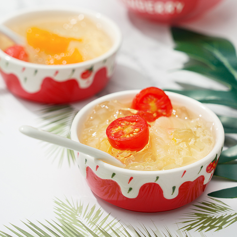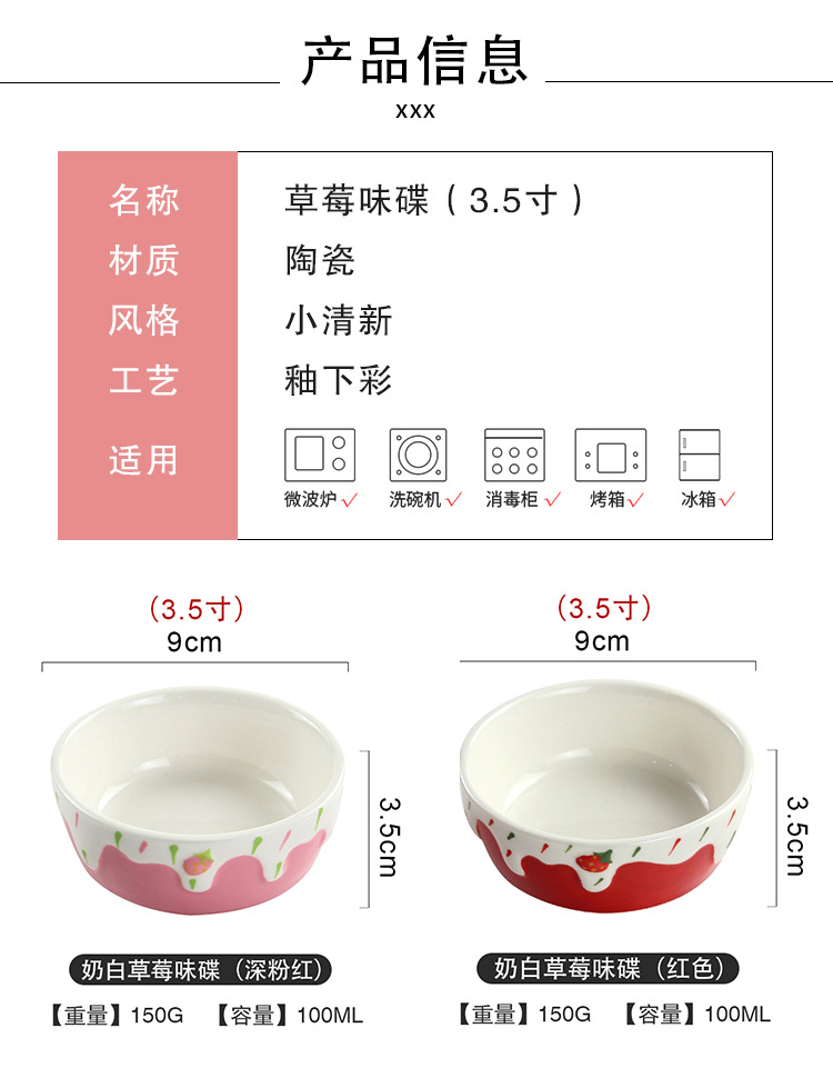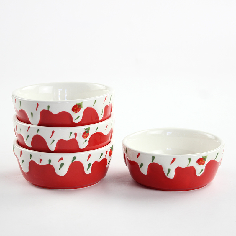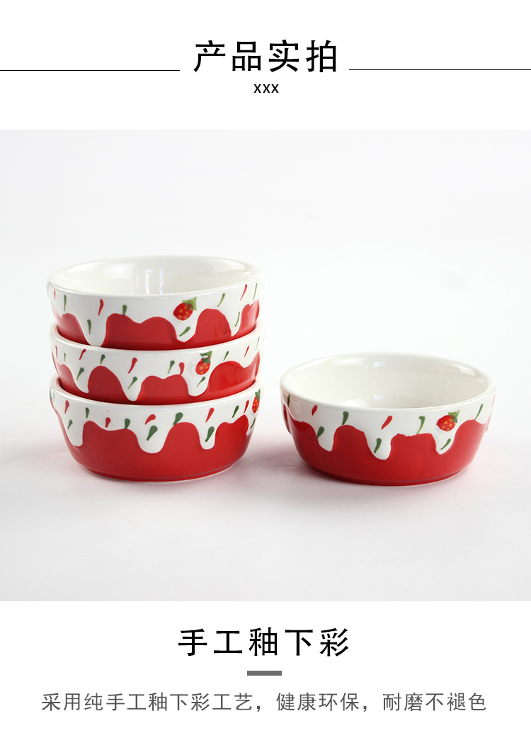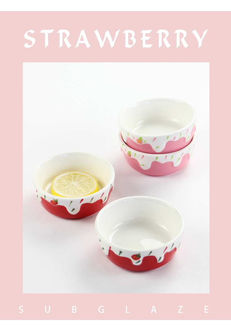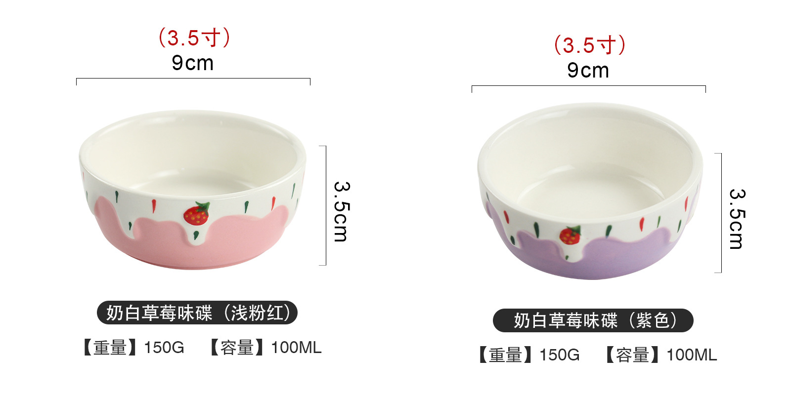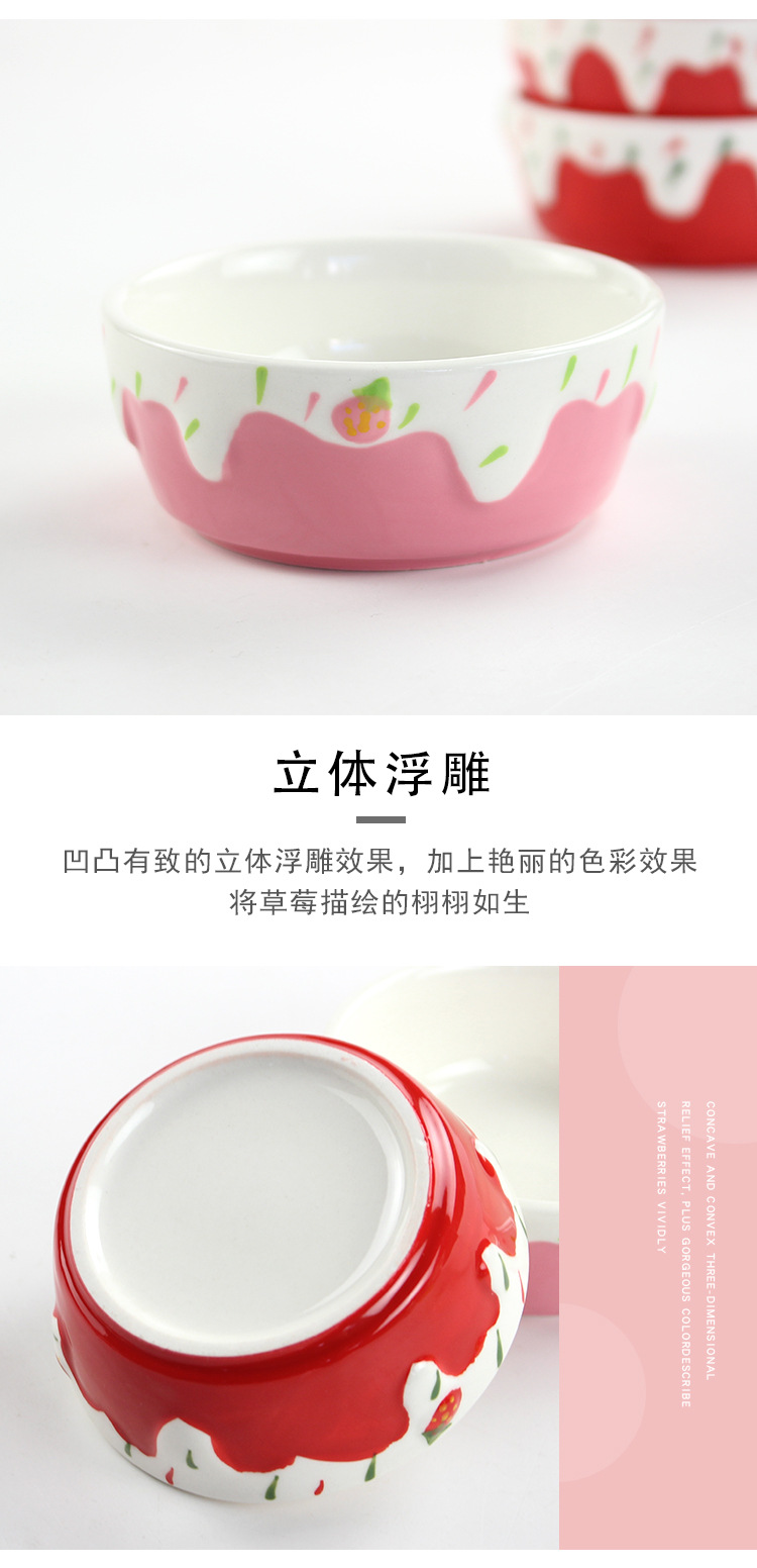 包邮网红高颜值糖果色陶瓷碗甜品碗家用创意草莓浮雕蘸酱料味碟