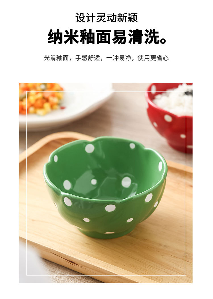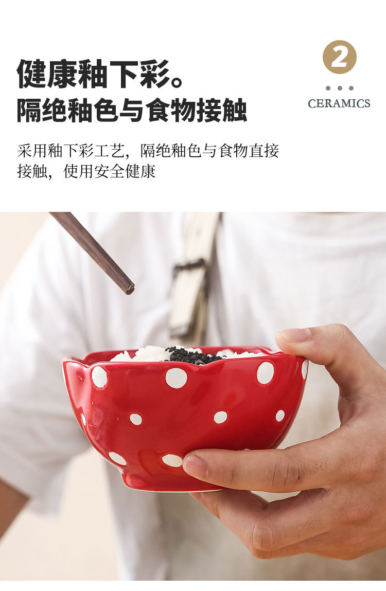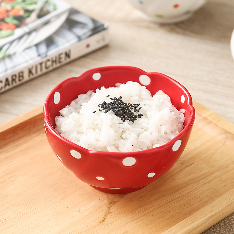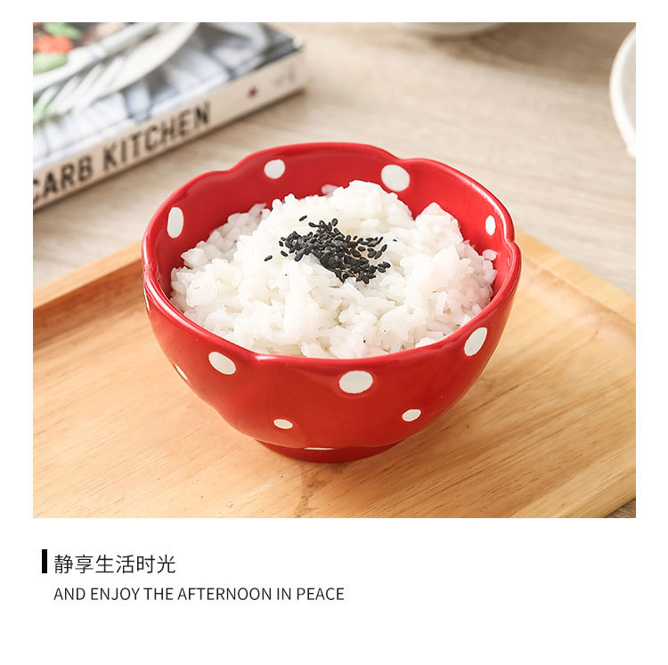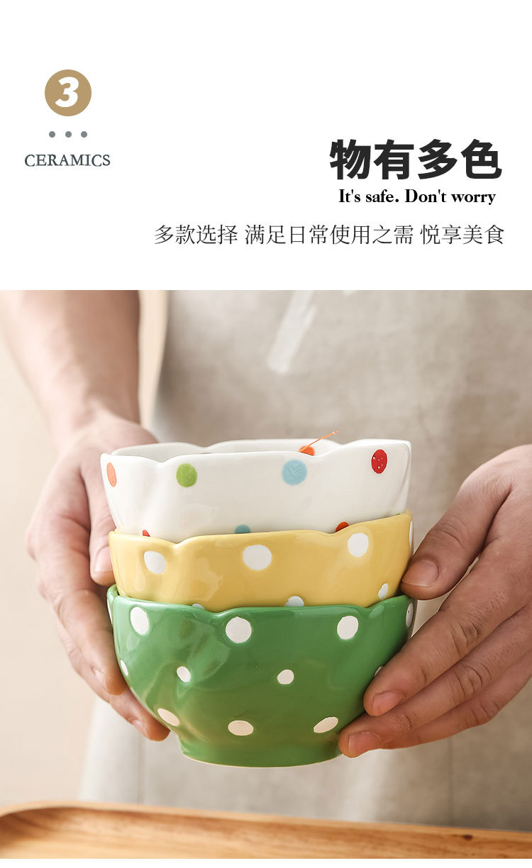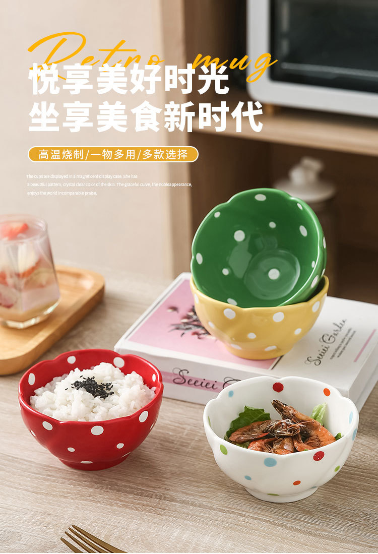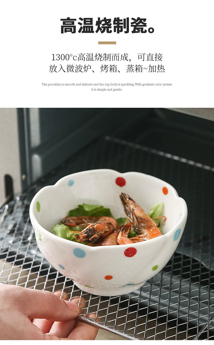 可爱的波点米饭碗陶瓷花瓣碗日式4.75寸汤碗釉下彩家用餐具耐高温
