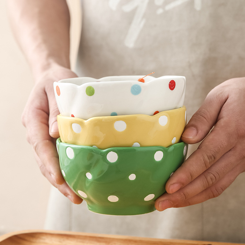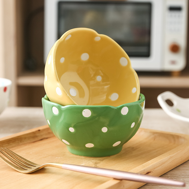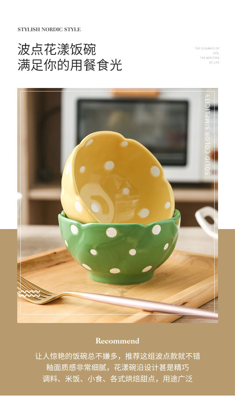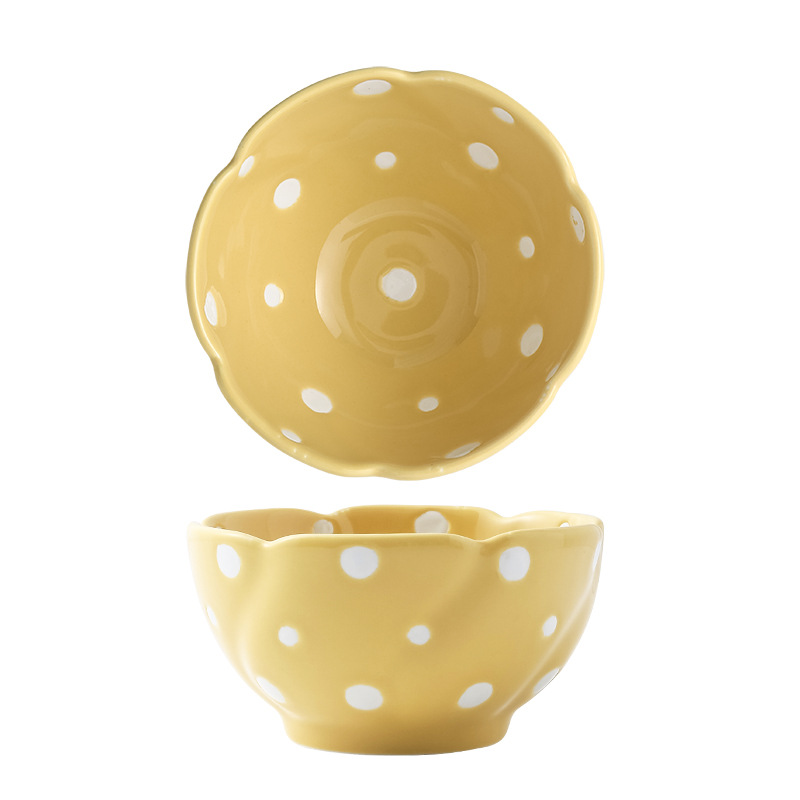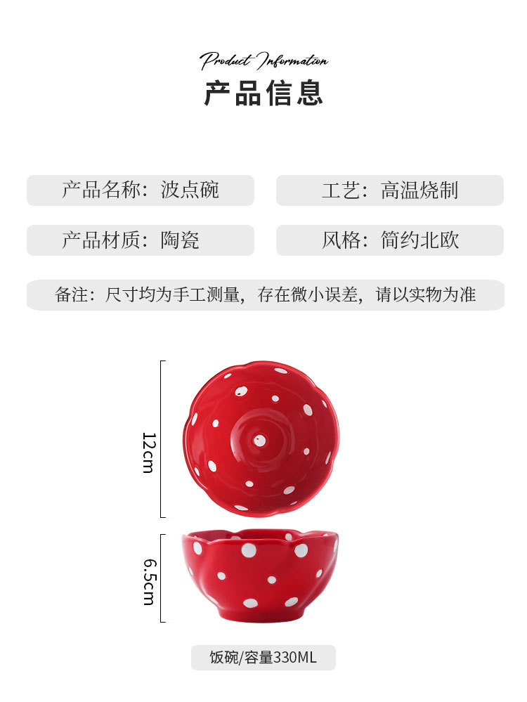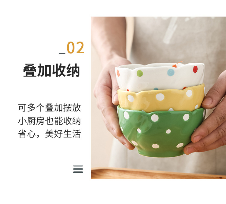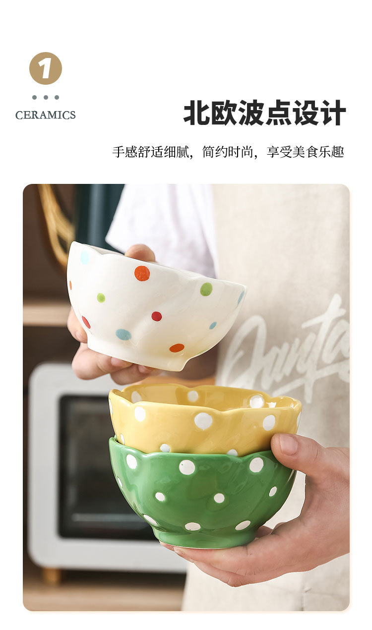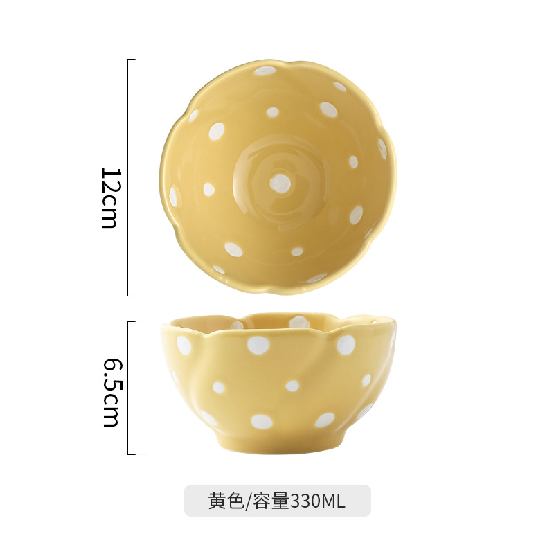 可爱的波点米饭碗陶瓷花瓣碗日式4.75寸汤碗釉下彩家用餐具耐高温