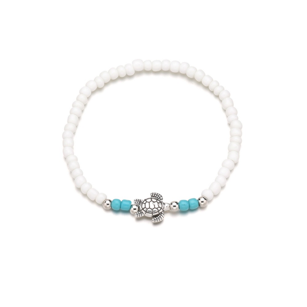 跨境欧美个性乌龟吊坠白拼蓝树脂米珠串珠脚链饰品批发