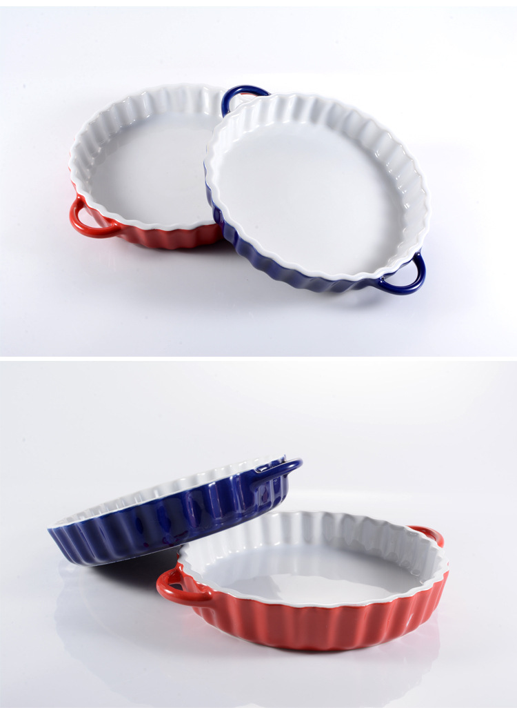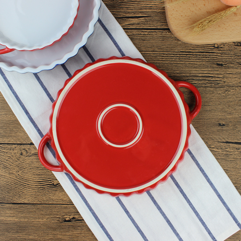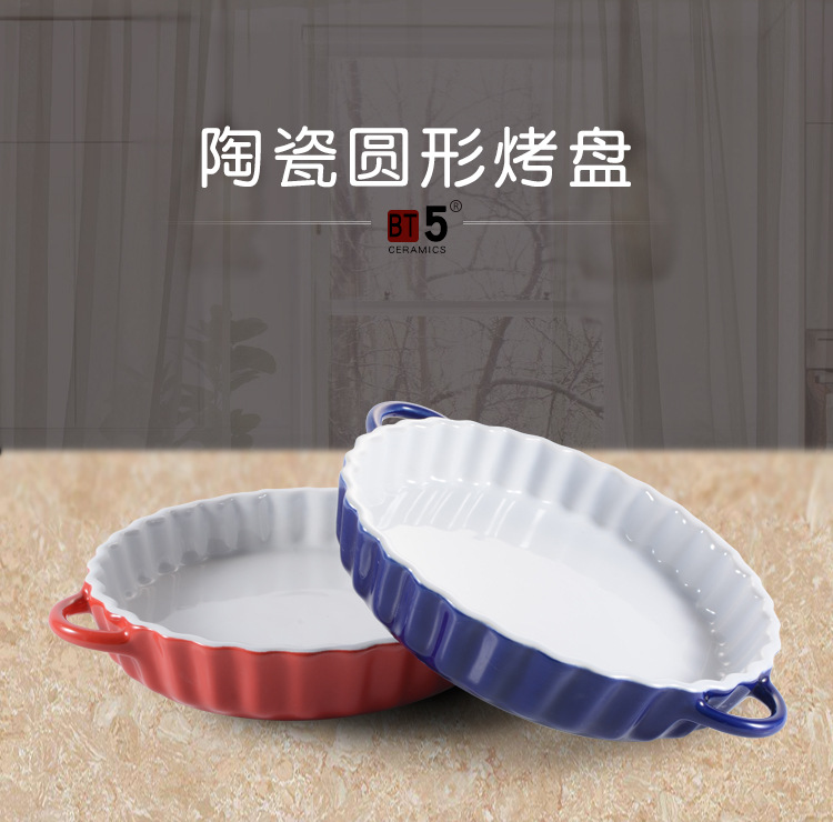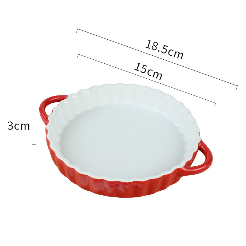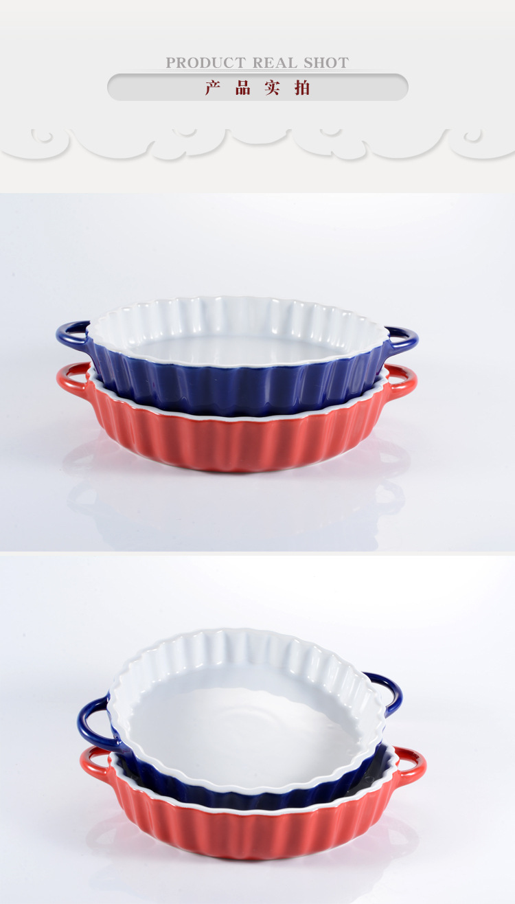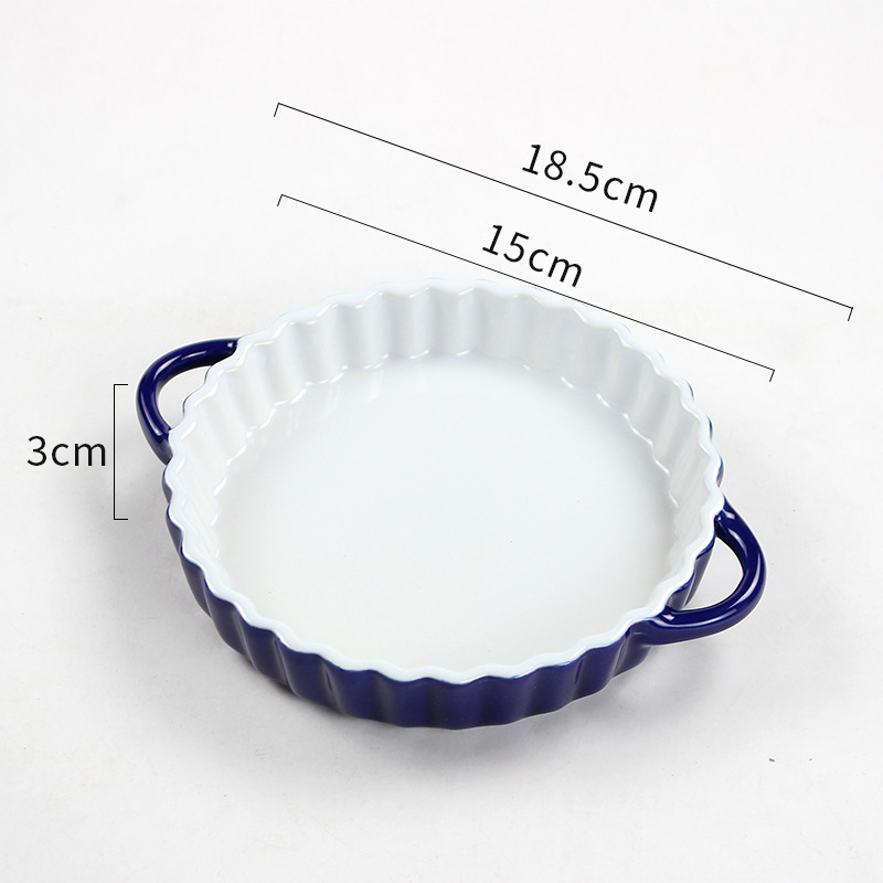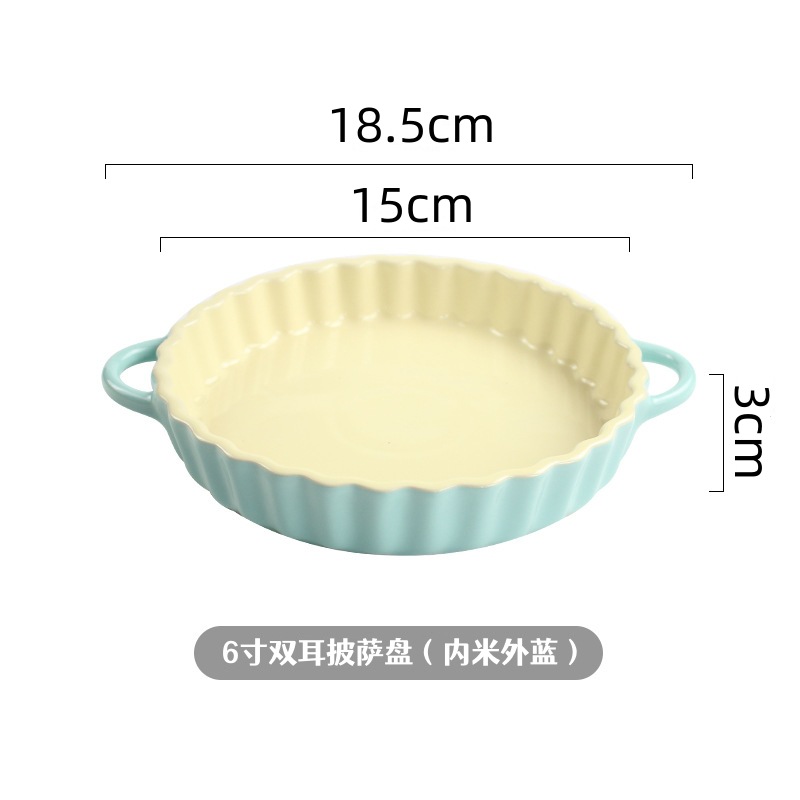 纯色陶瓷双耳波浪烤盘6寸 西式简约烘培餐具圆盘 蛋糕西餐披萨盘