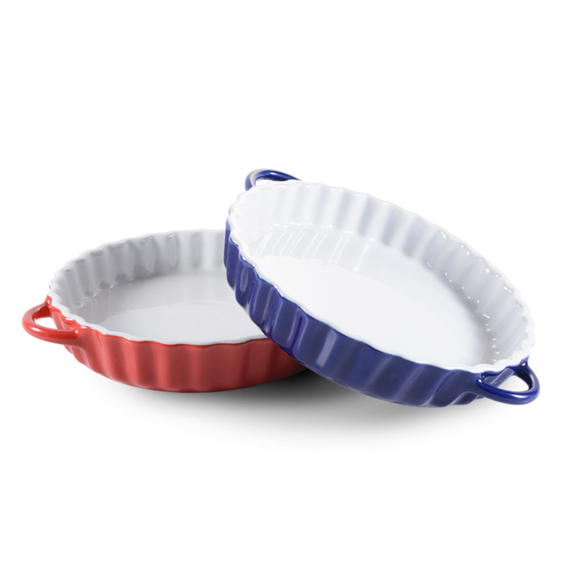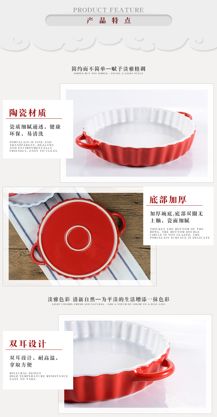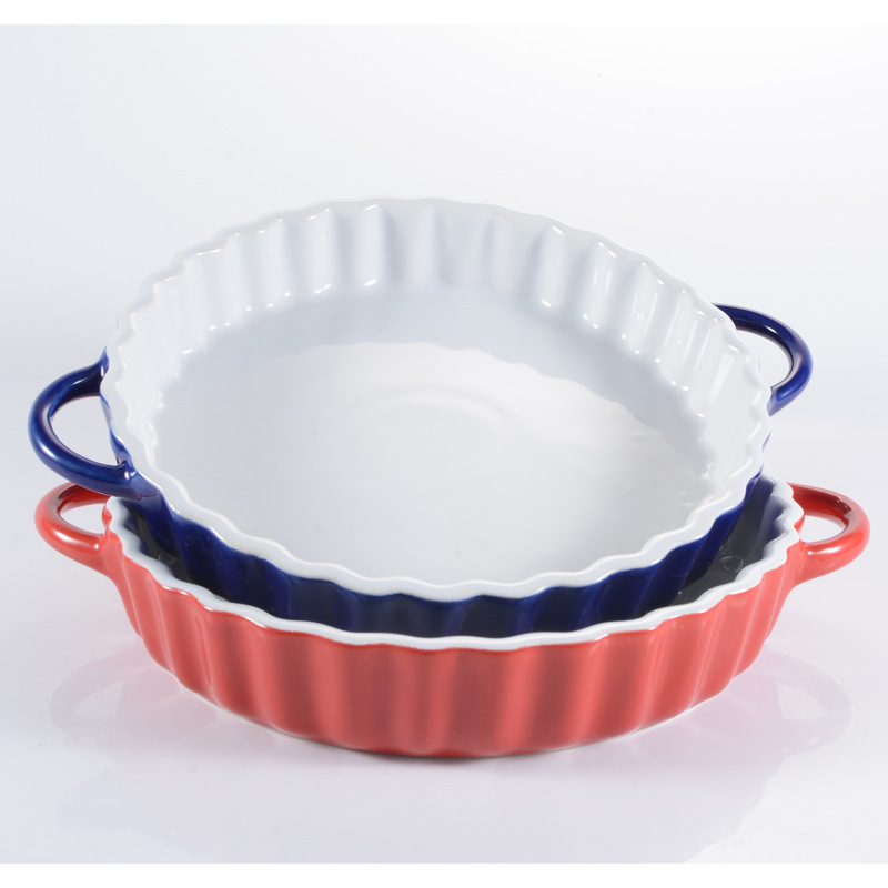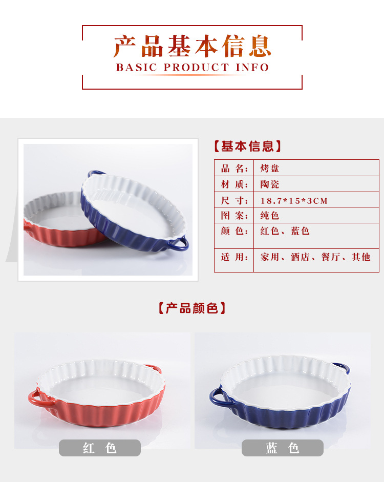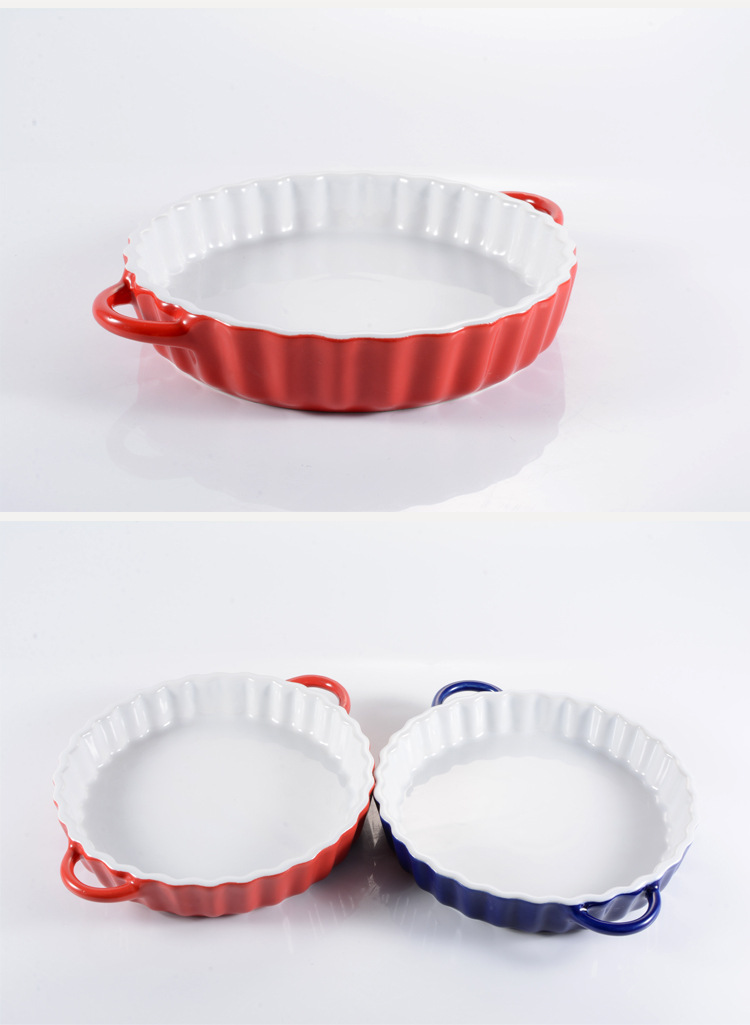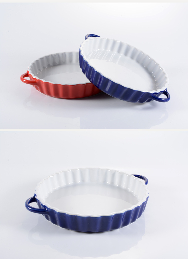 纯色陶瓷双耳波浪烤盘6寸 西式简约烘培餐具圆盘 蛋糕西餐披萨盘