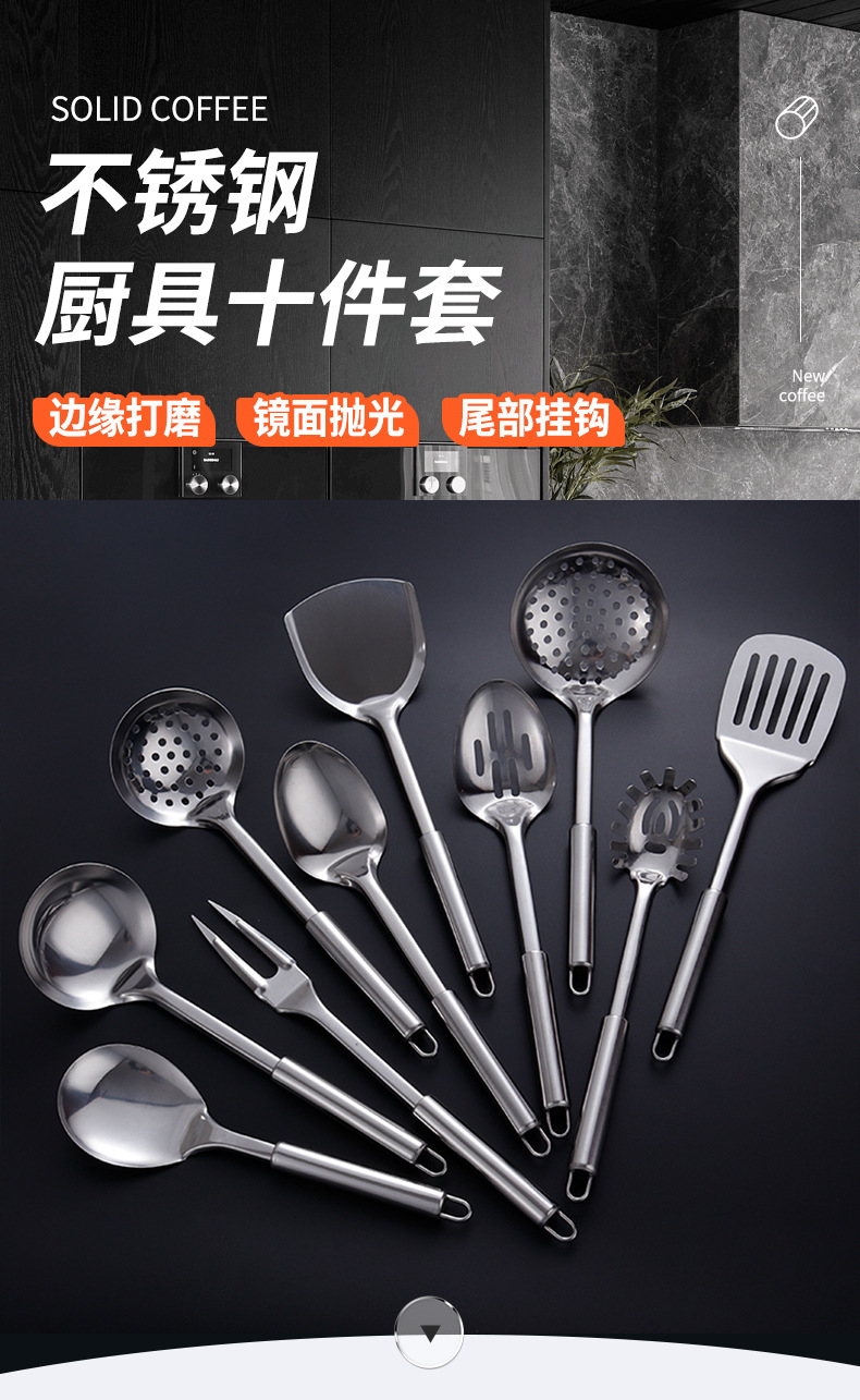 现货加厚不锈钢锅铲家用炒菜铲勺不锈钢漏勺汤勺烹饪厨具套装批发