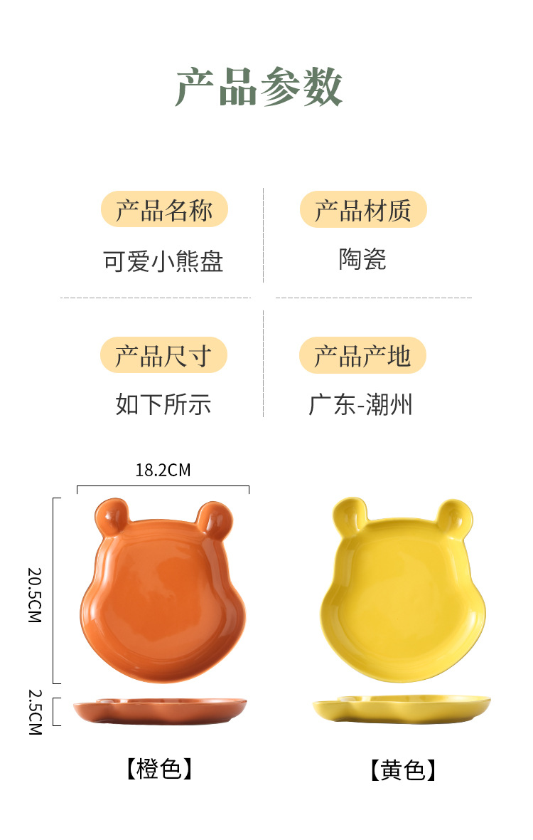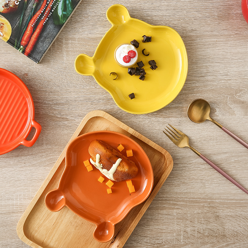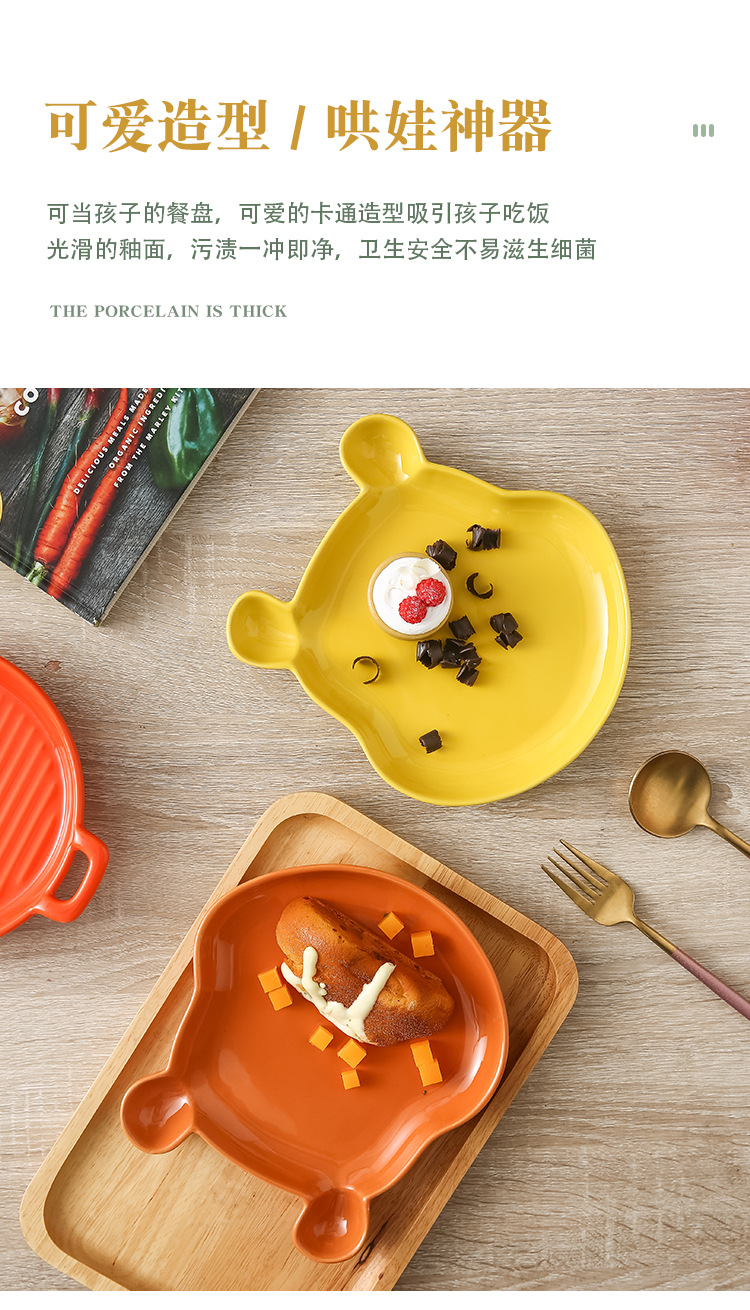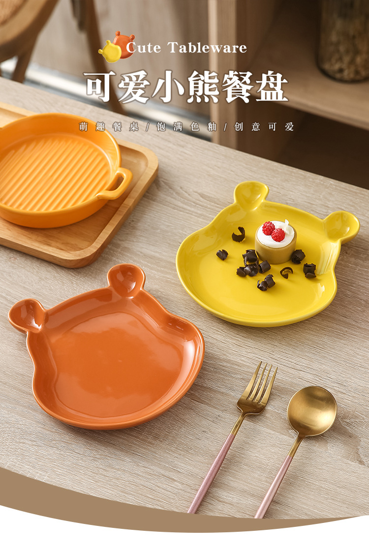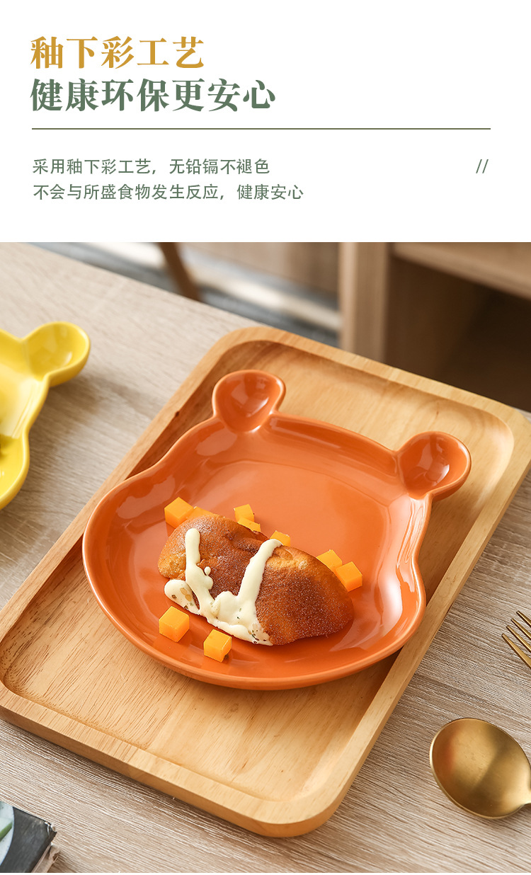 可爱风儿童餐盘卡通小熊釉下彩陶瓷盘蛋糕点心碟下午茶小吃圣诞盘