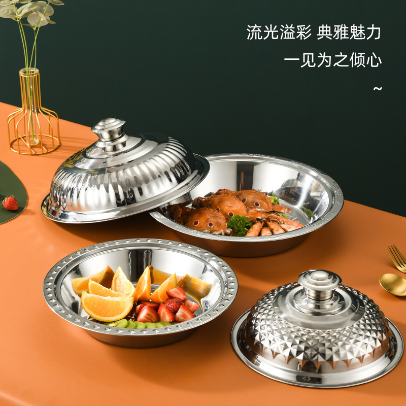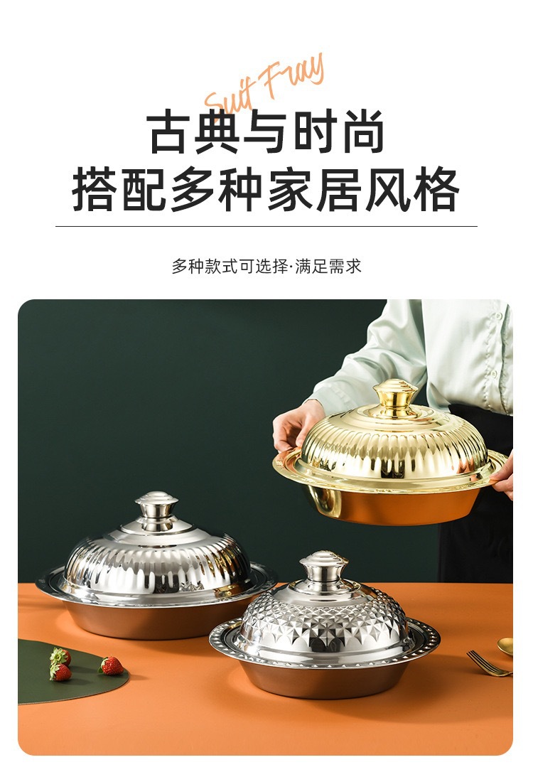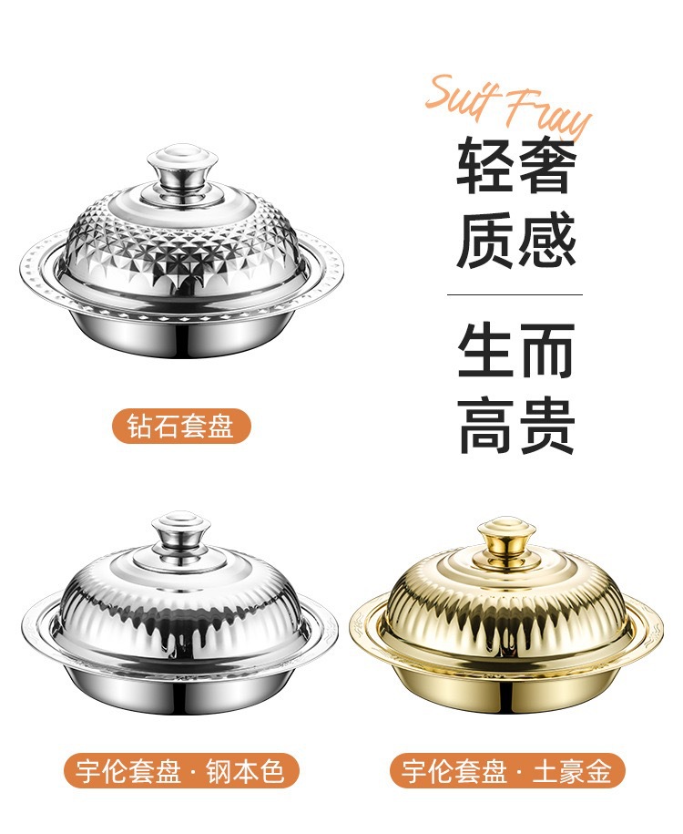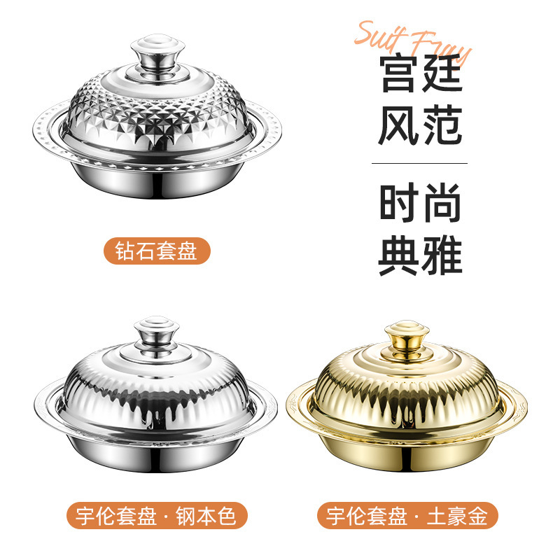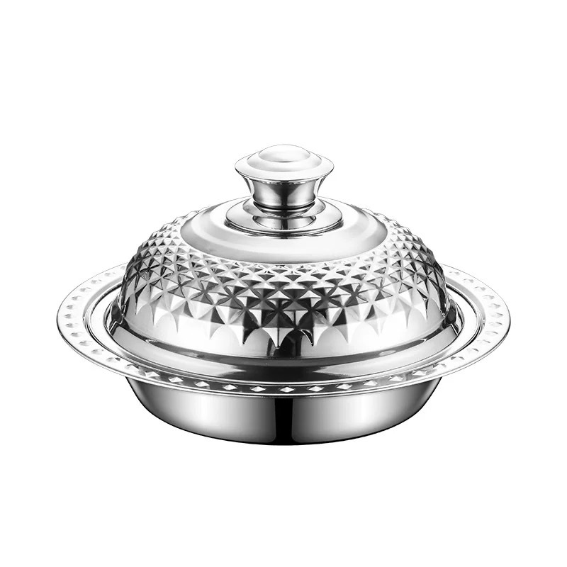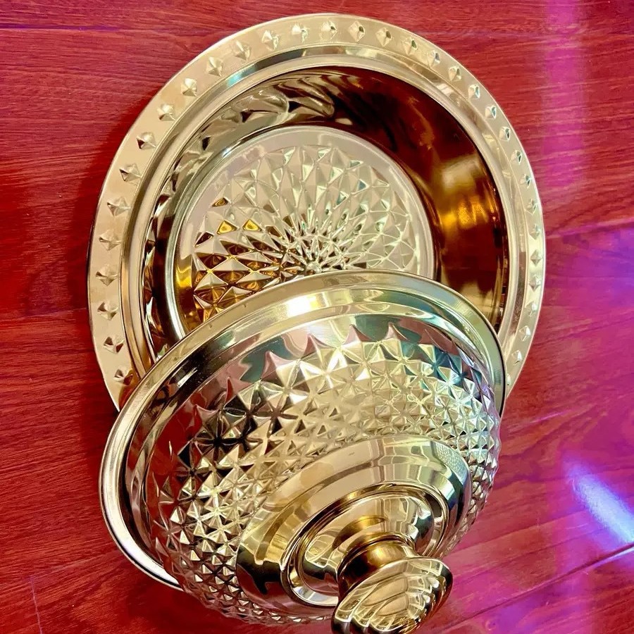 厂家批发跨境非洲中东不锈钢套盆复古带盖盘花纹钻石盖贡盘 压花