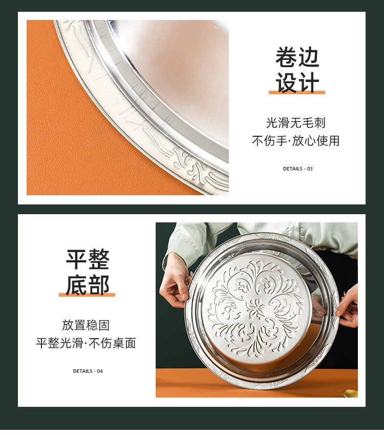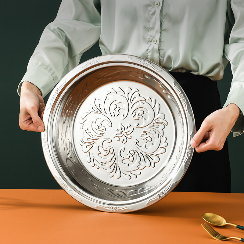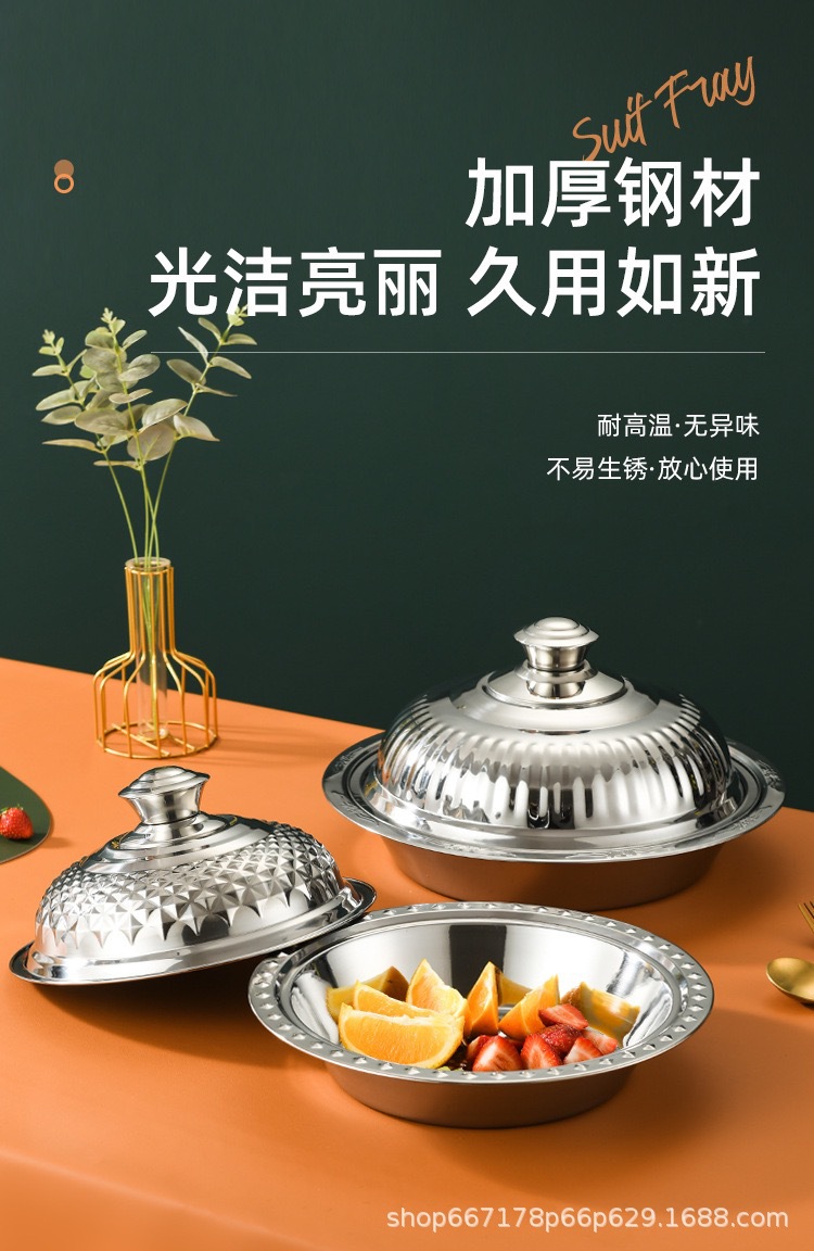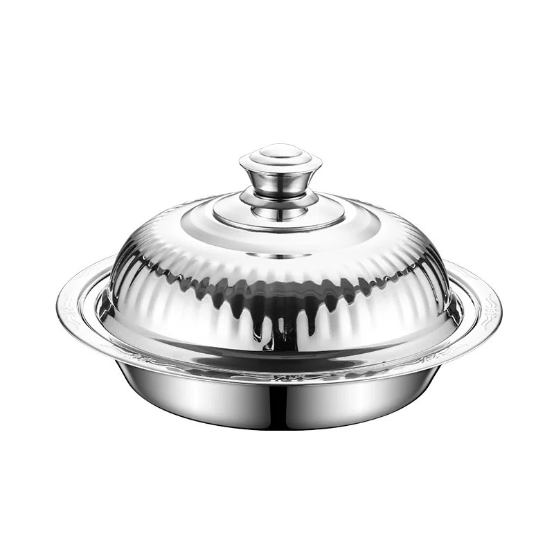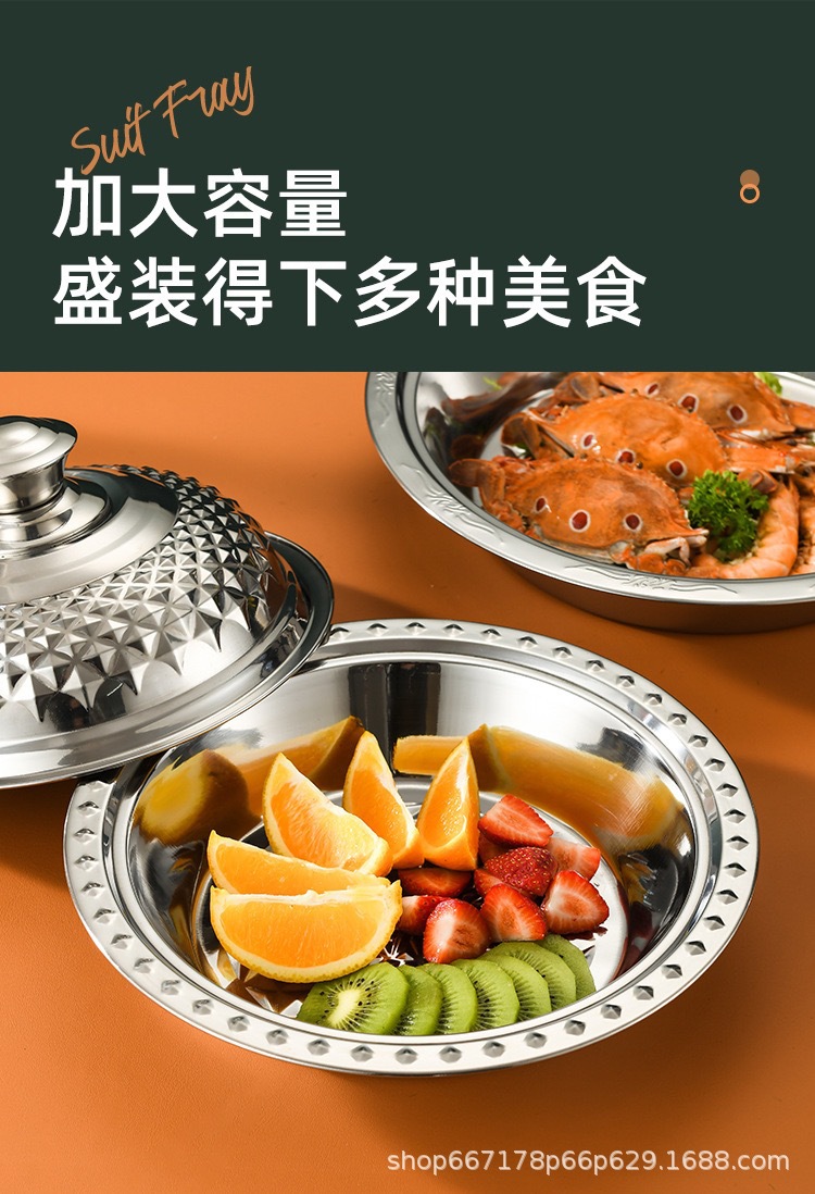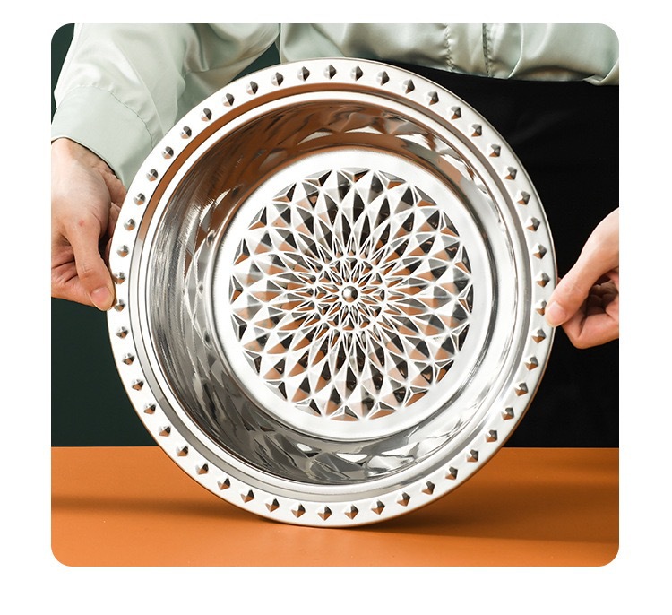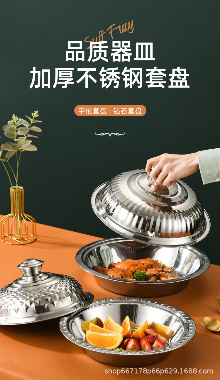 厂家批发跨境非洲中东不锈钢套盆复古带盖盘花纹钻石盖贡盘 压花