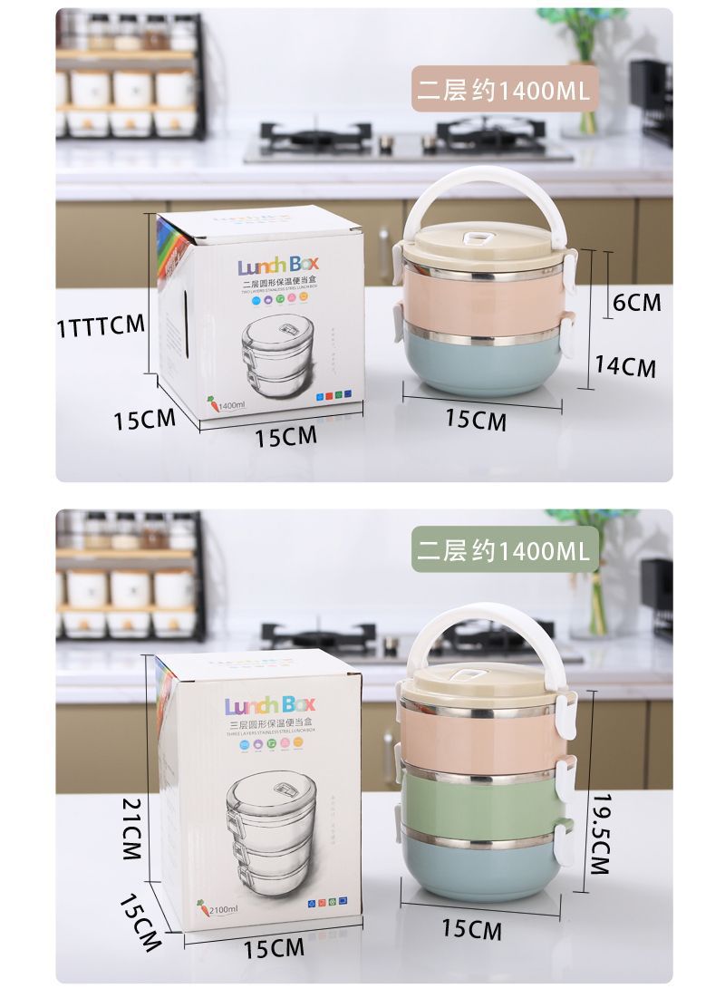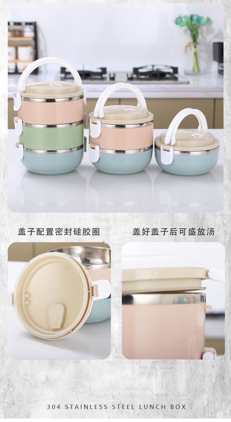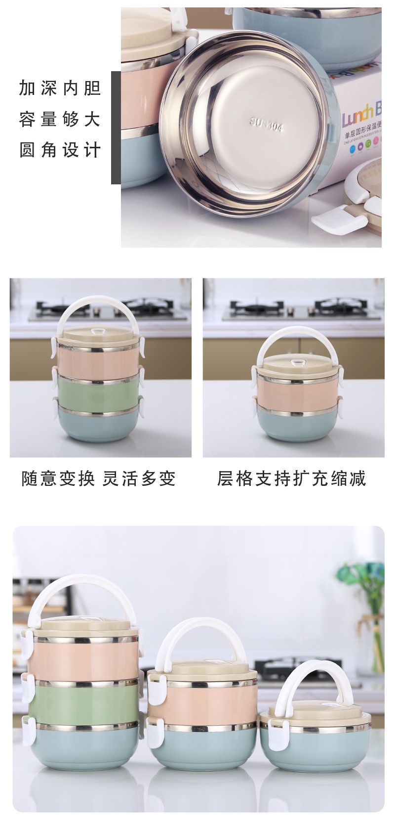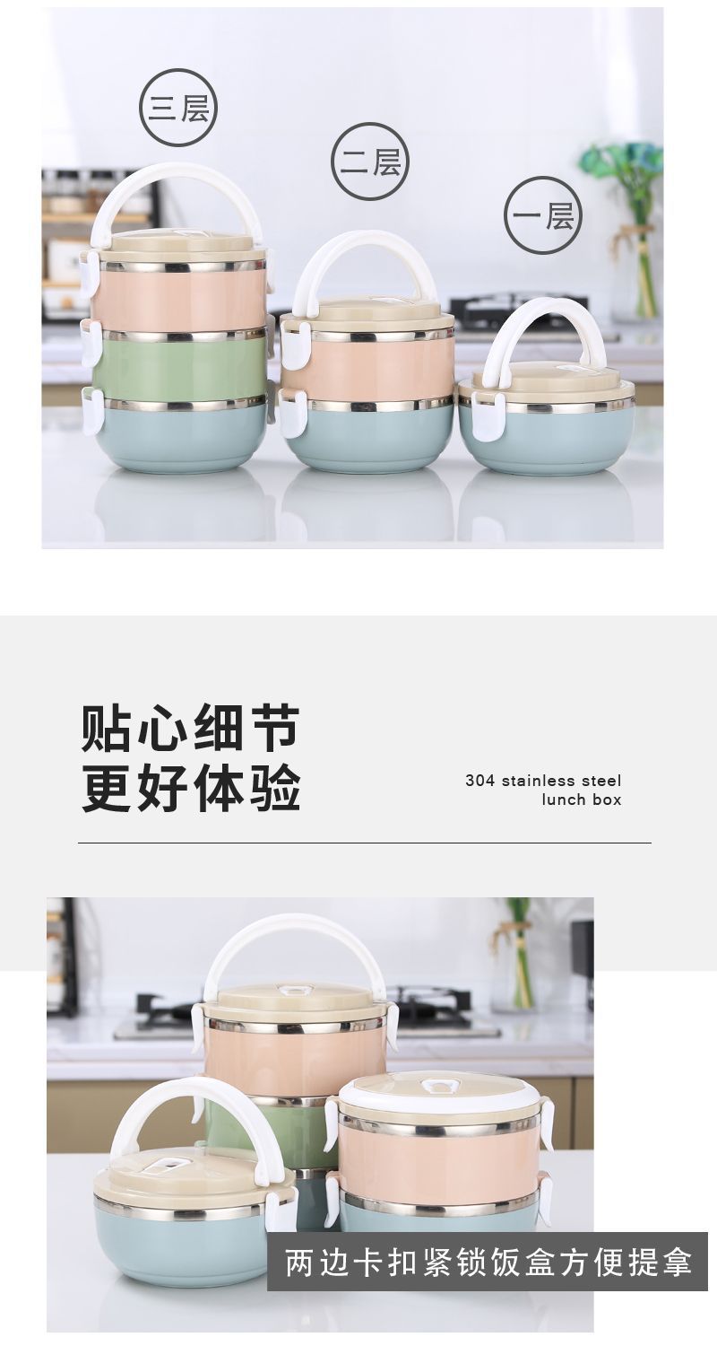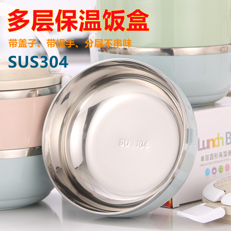 304不锈钢保温饭盒圆形学生多层分格便当盒餐盒大容量上班族便携