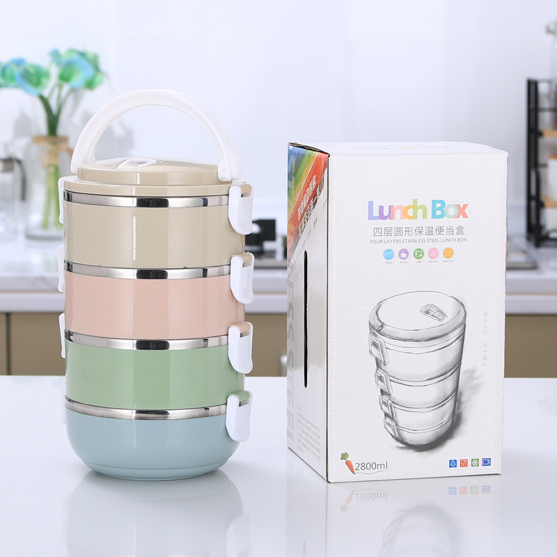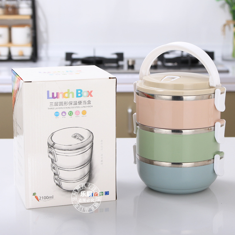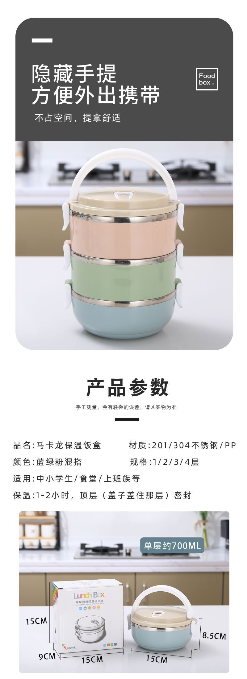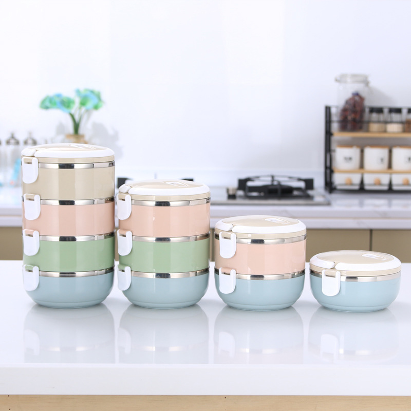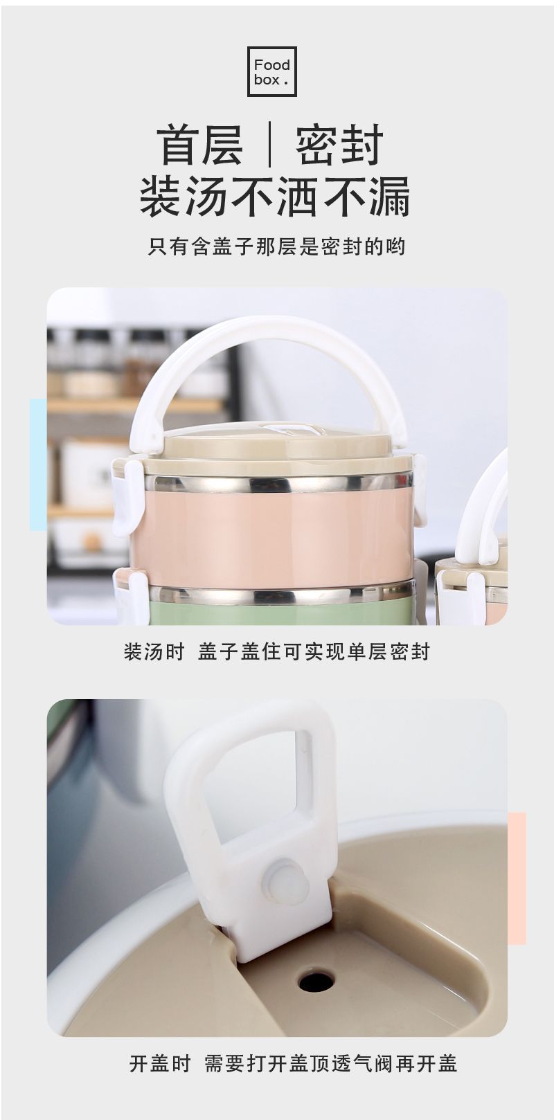 304不锈钢保温饭盒圆形学生多层分格便当盒餐盒大容量上班族便携