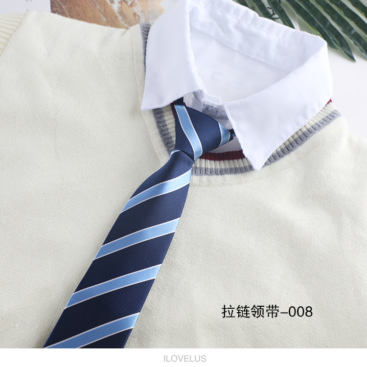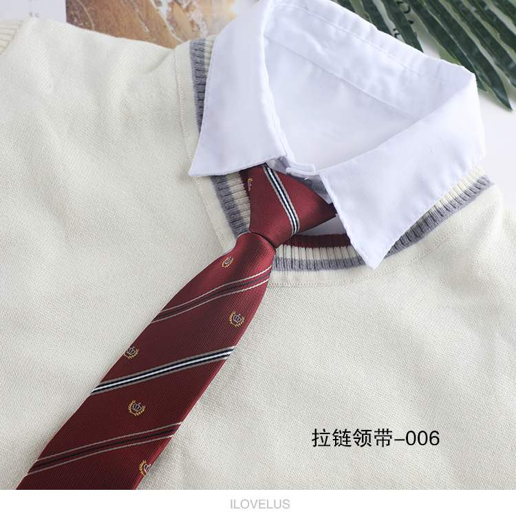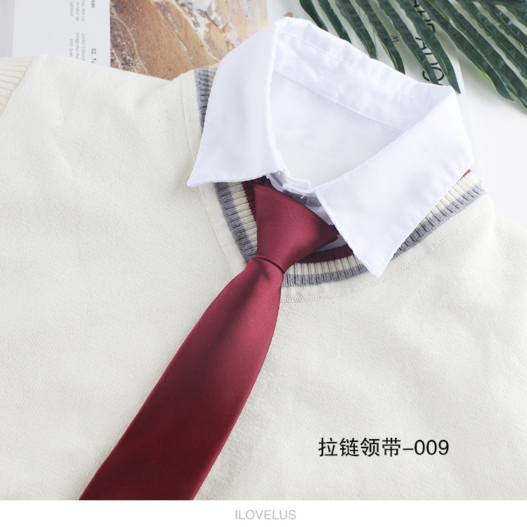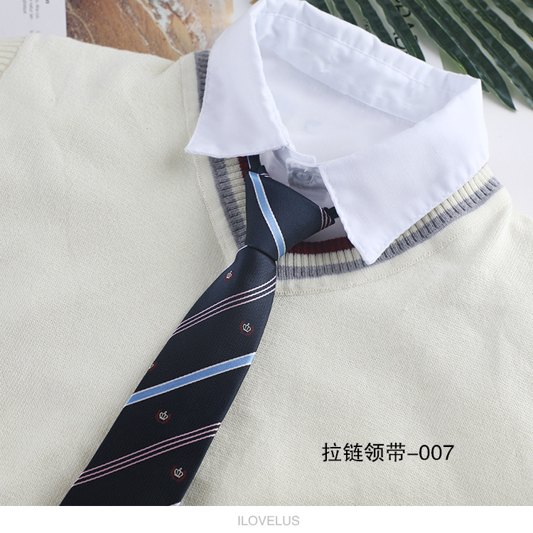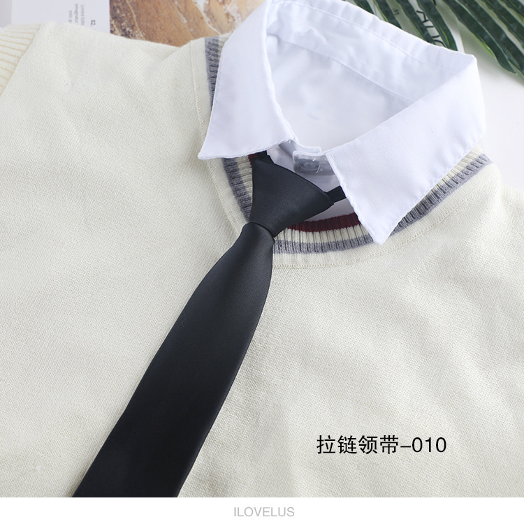 短款JK日系学院风格子女领带涤丝拉链免打结懒人领带女6cm批发