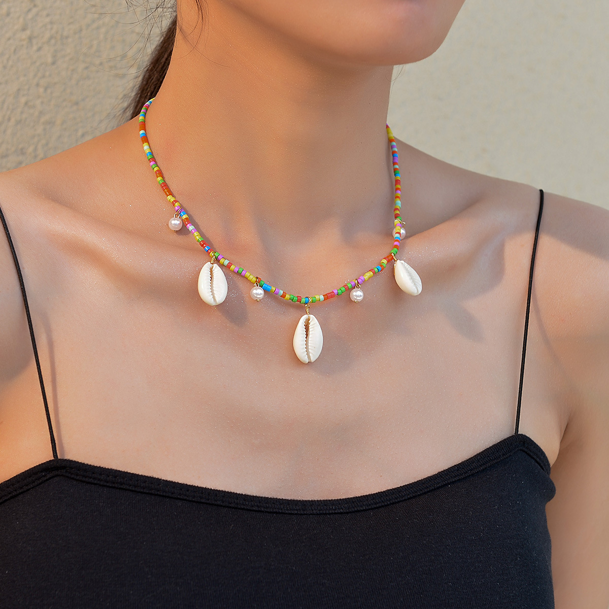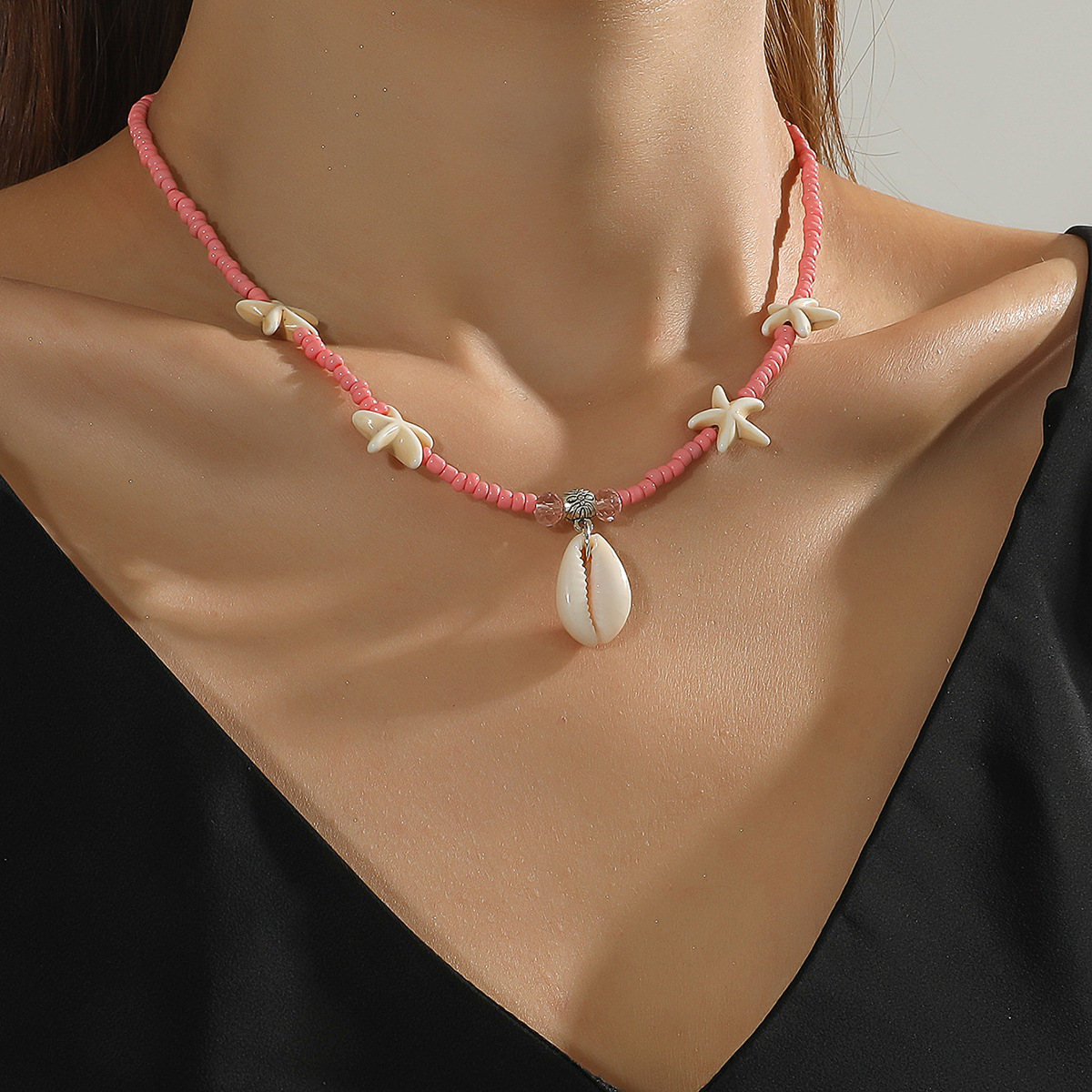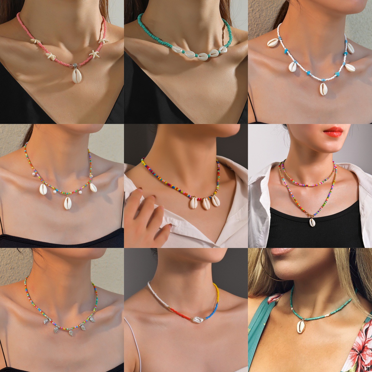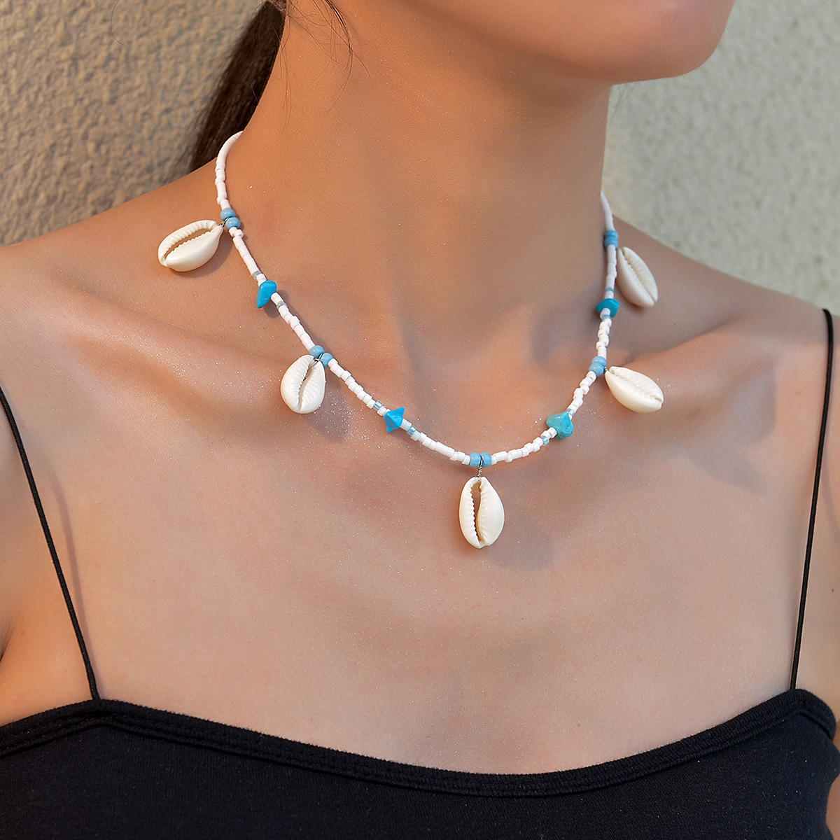 夏季波西米亚度假风贝壳吊坠松石海星米珠项链适合女士女生度假