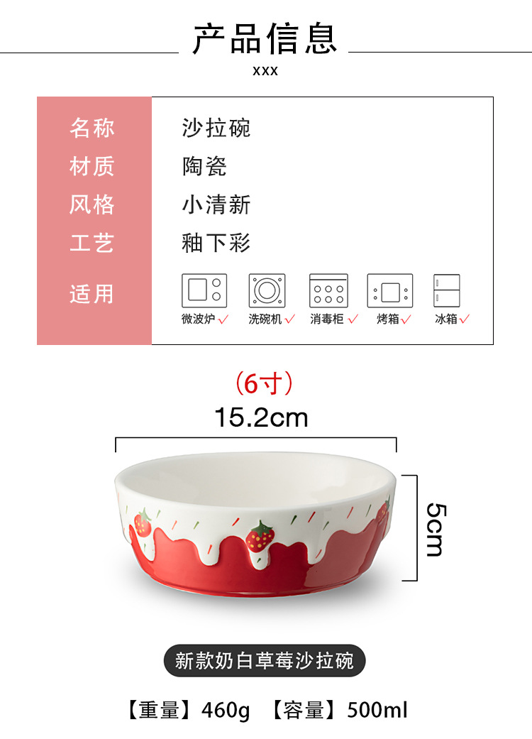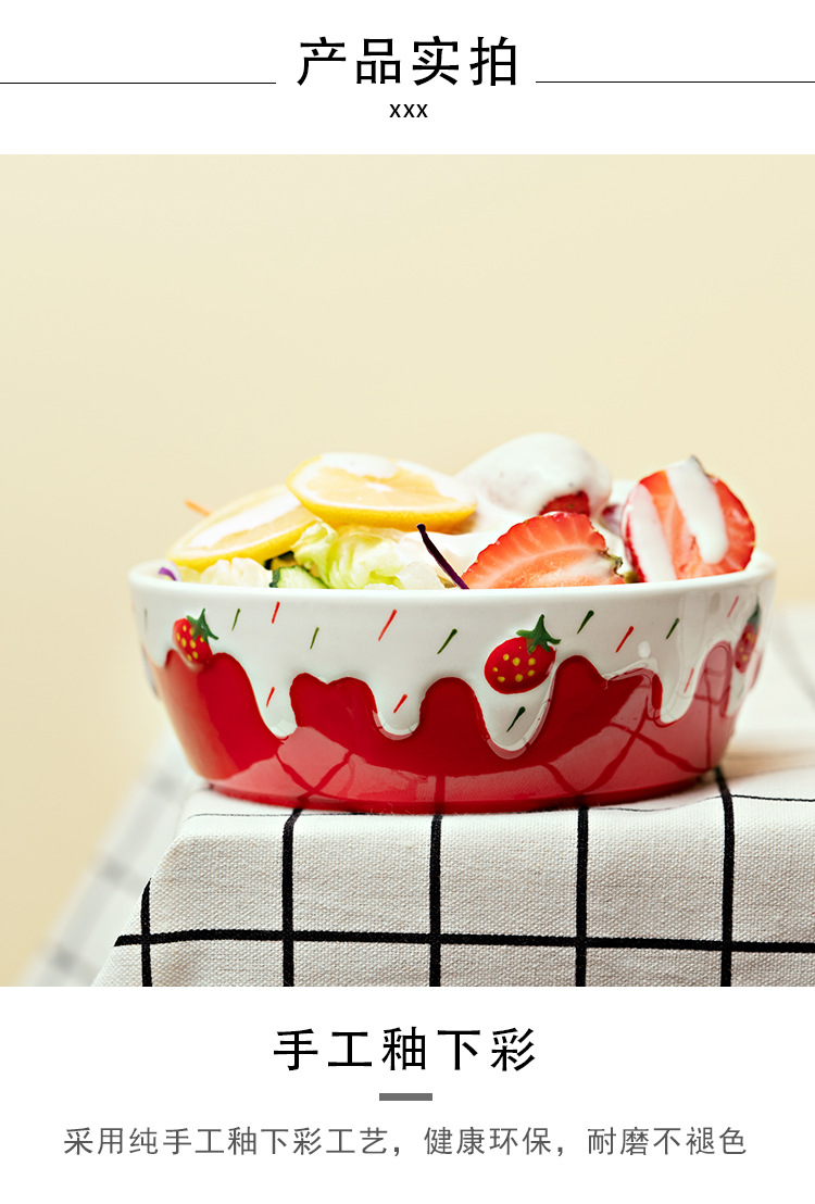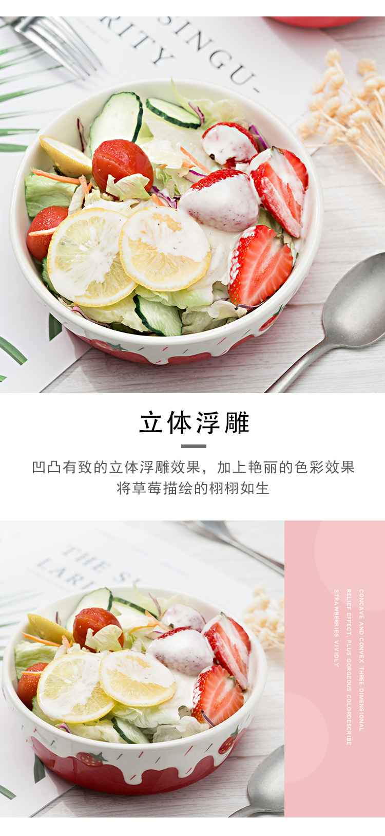 定制陶瓷草莓沙拉碗 多色可爱ins餐具水果麦片碗早餐碗可来图加工