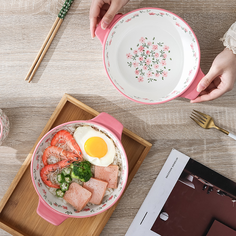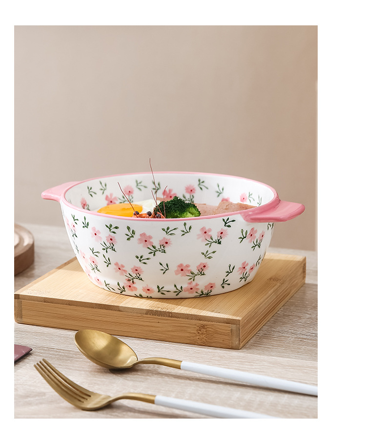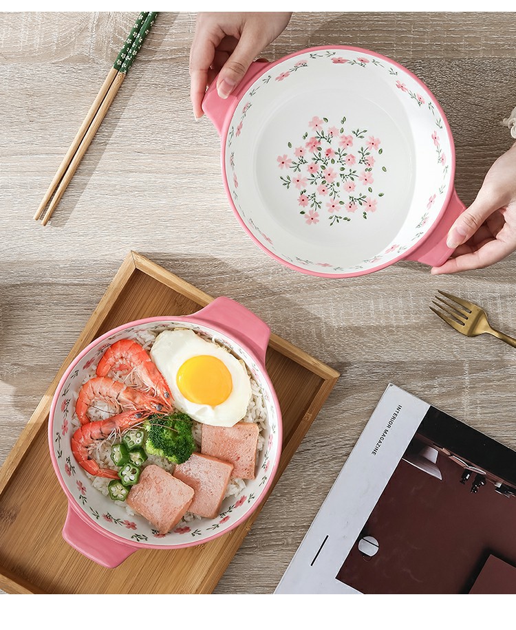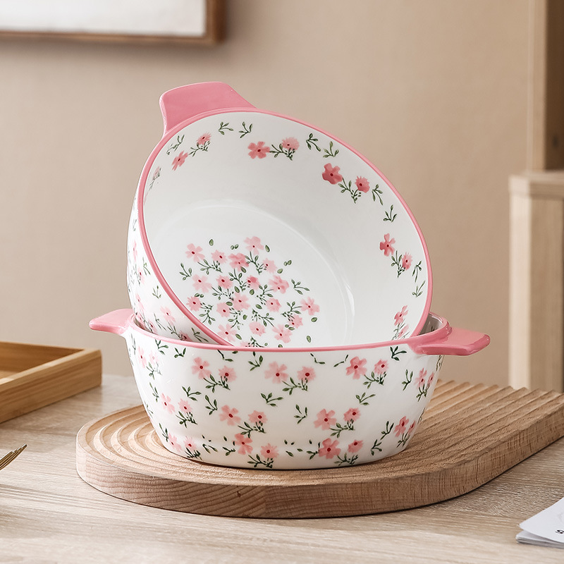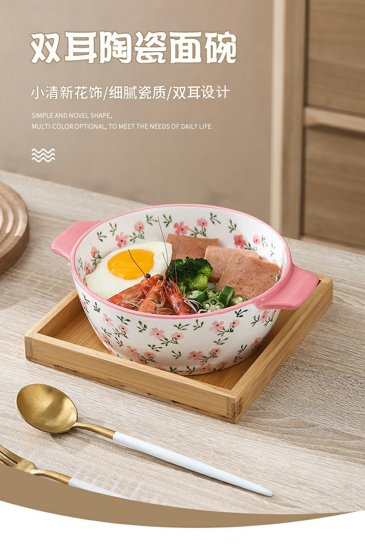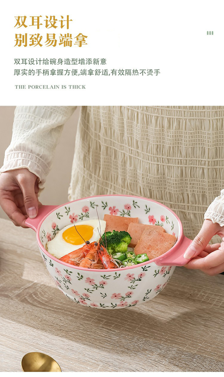 小碎花陶瓷双耳面碗 家用日式小清新餐具ins大容量螺蛳粉汤碗烤碗