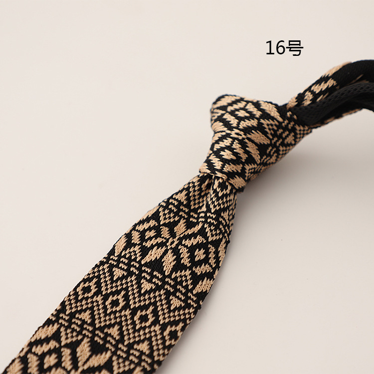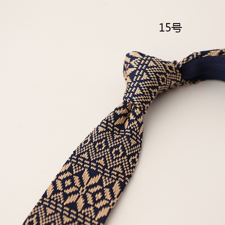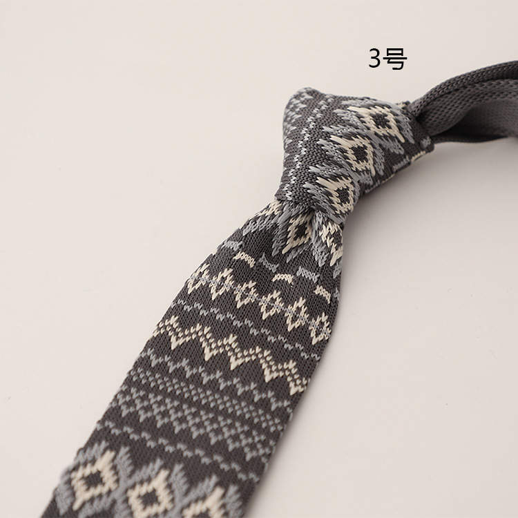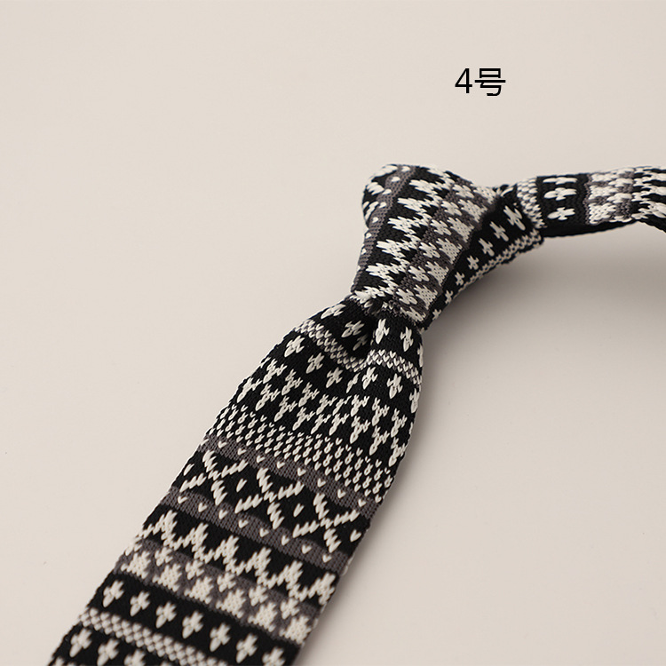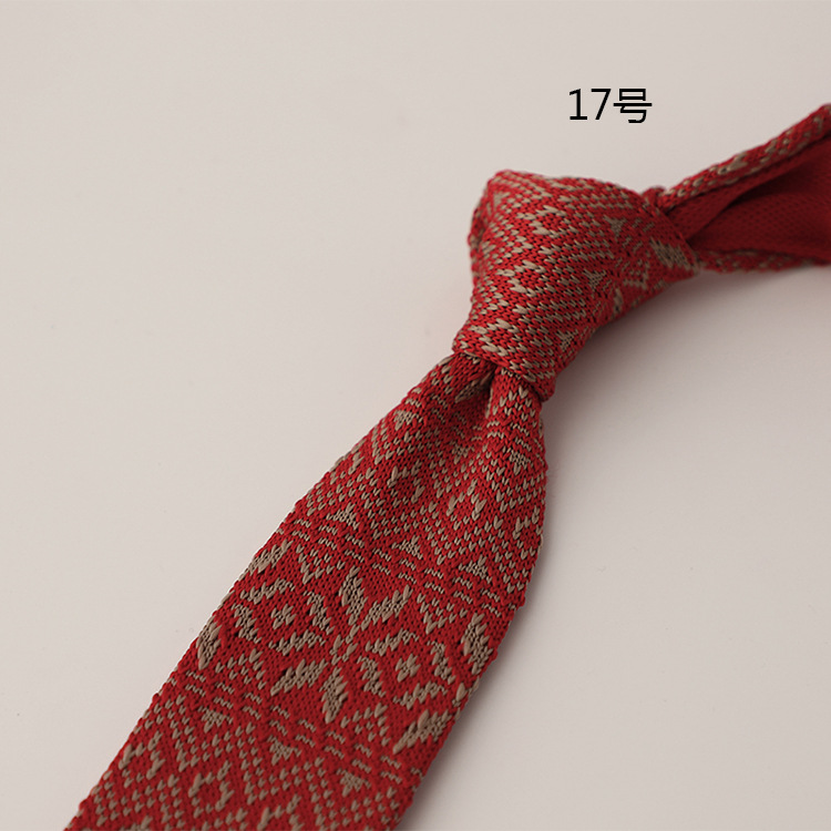 领带男窄版毛线韩版休闲英伦学院风6CM针织平头个性红色雪花图案