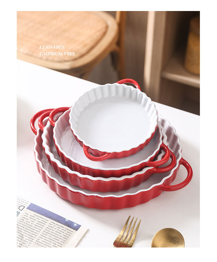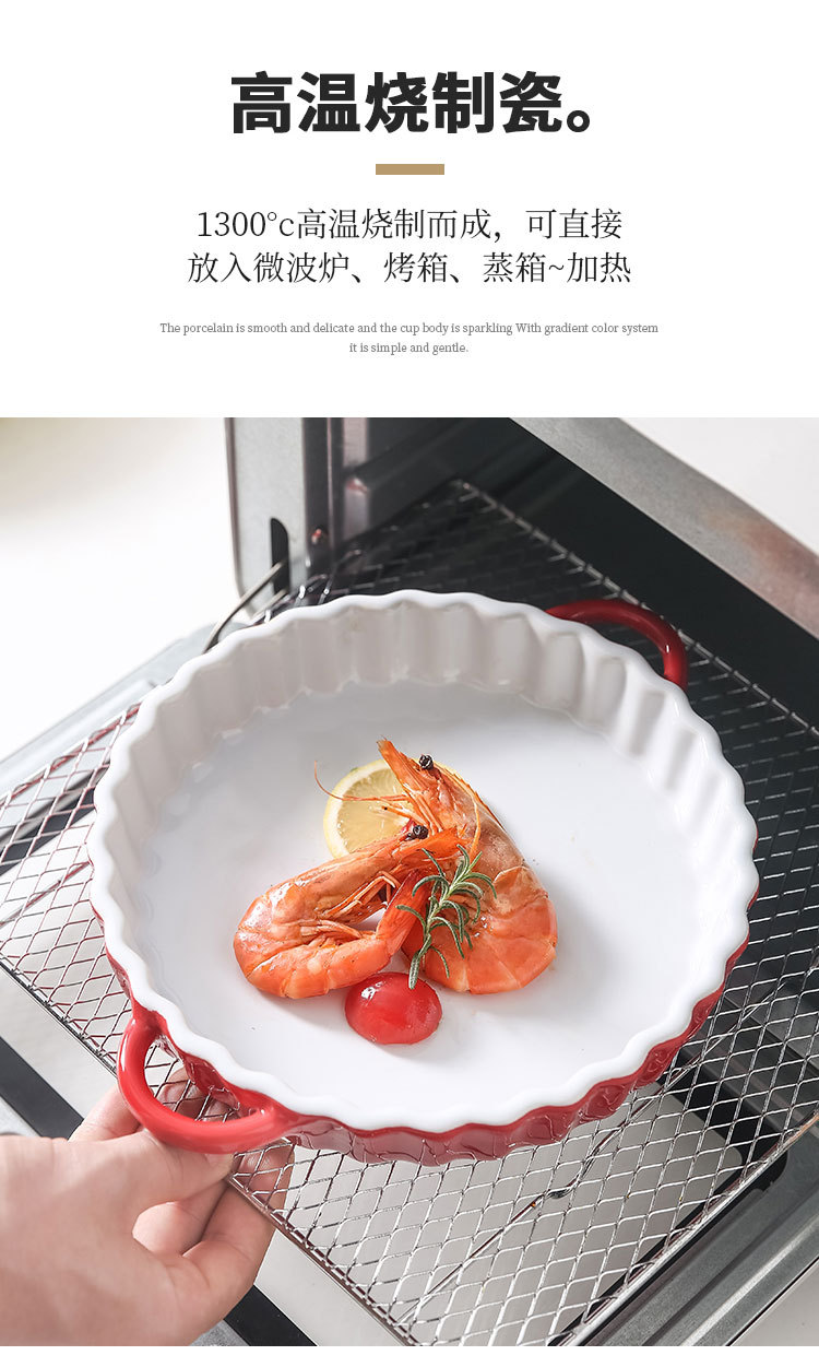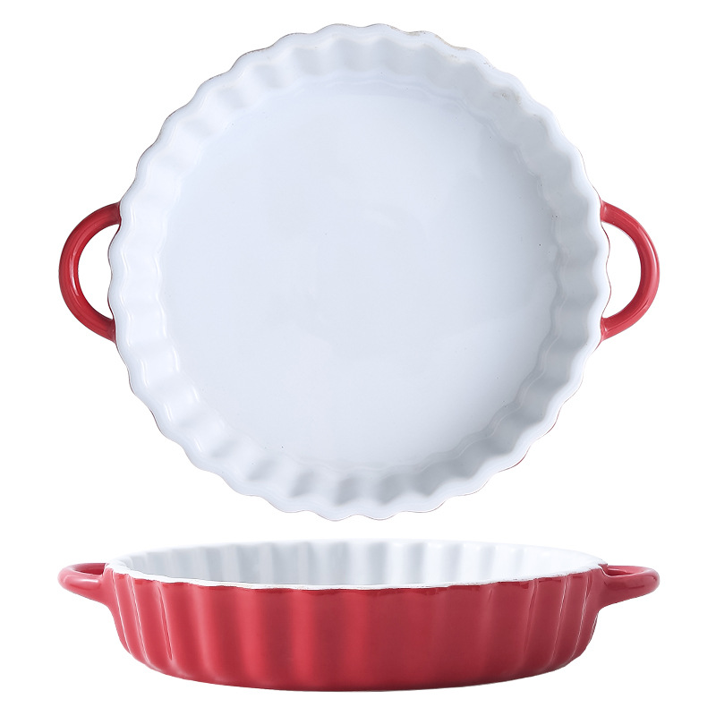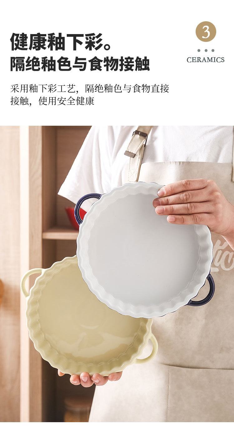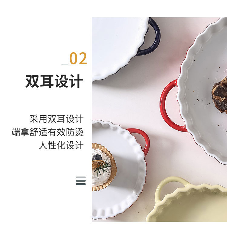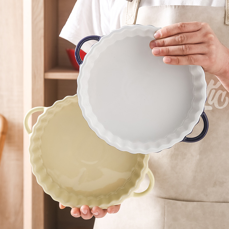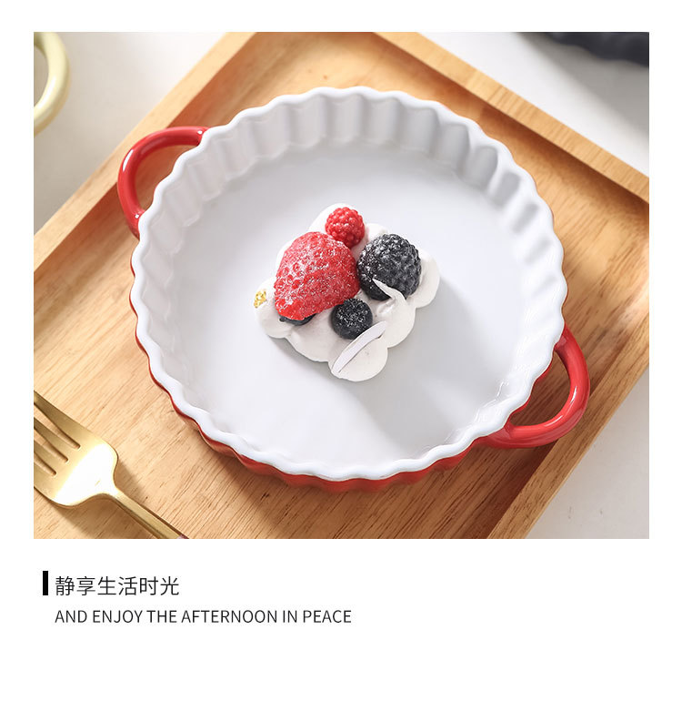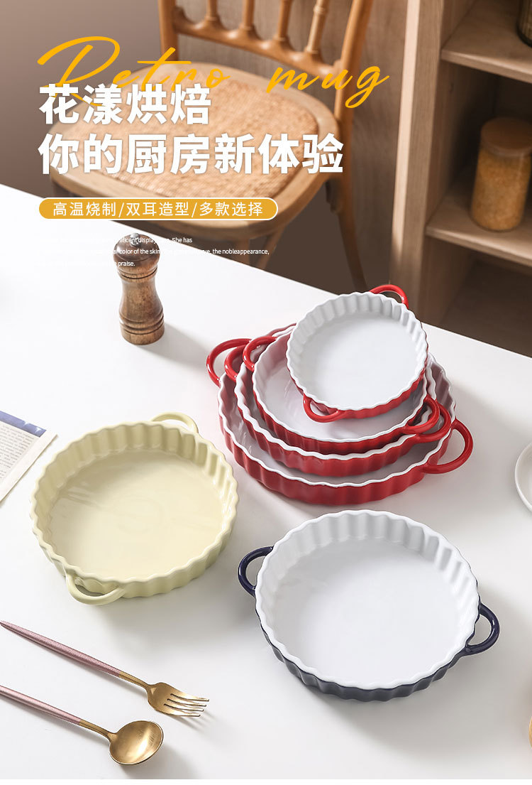 定制陶瓷双耳波浪披萨烤盘简约风西式烘培餐具圆形果盘西餐盘烤盘