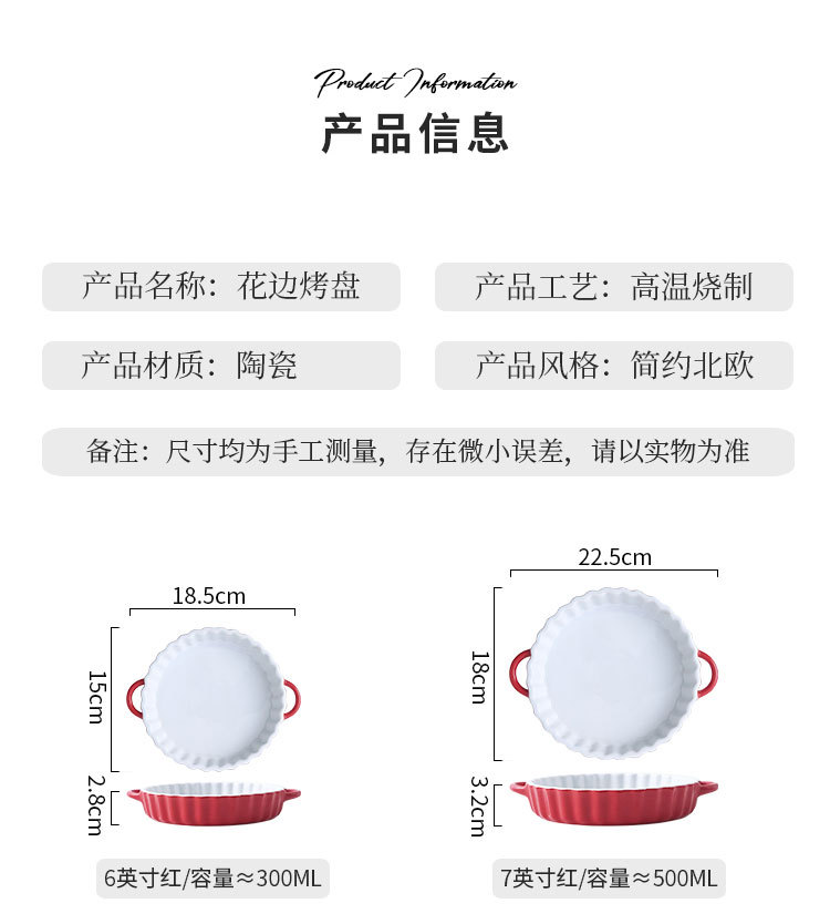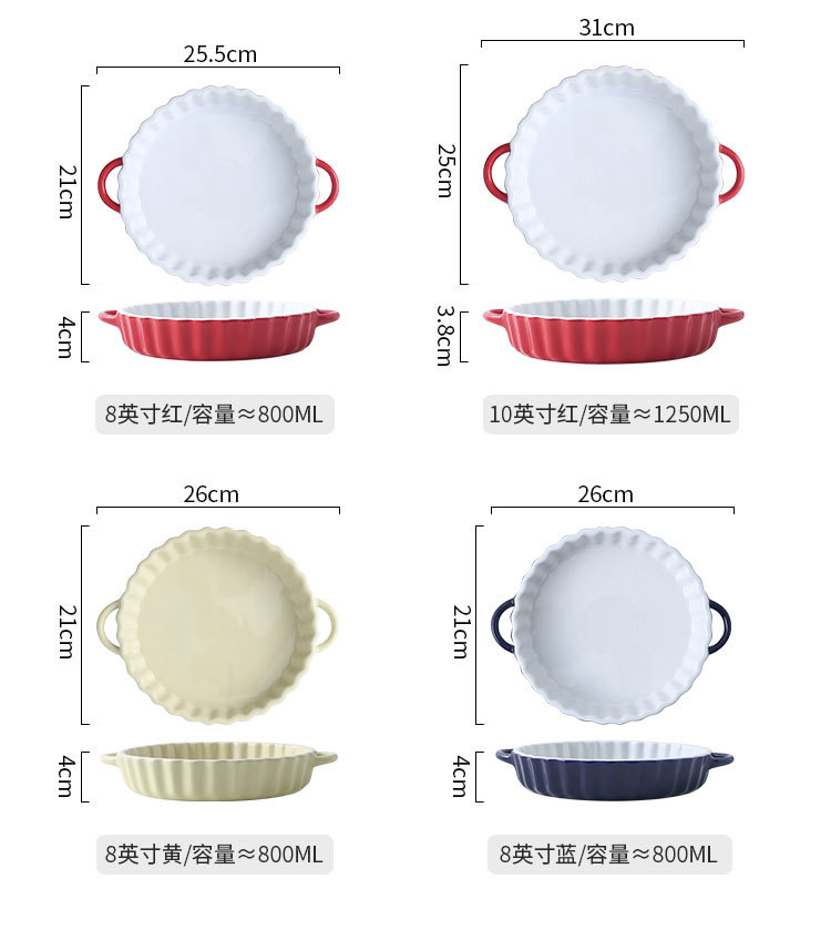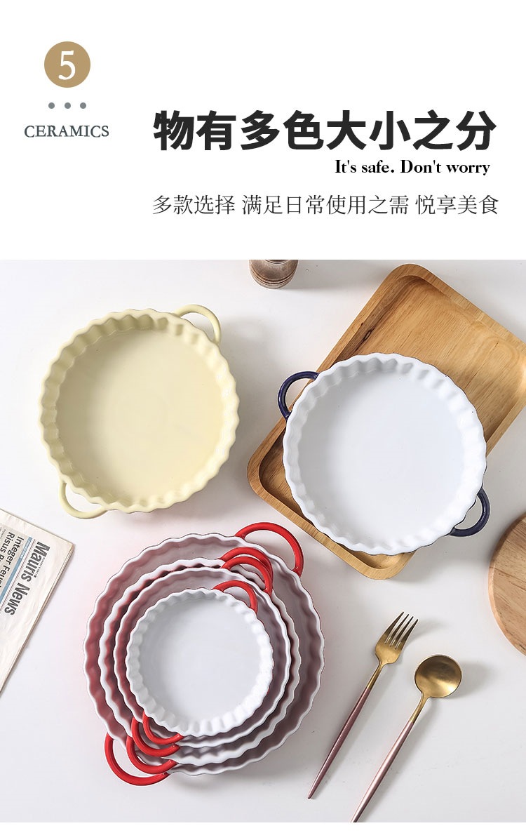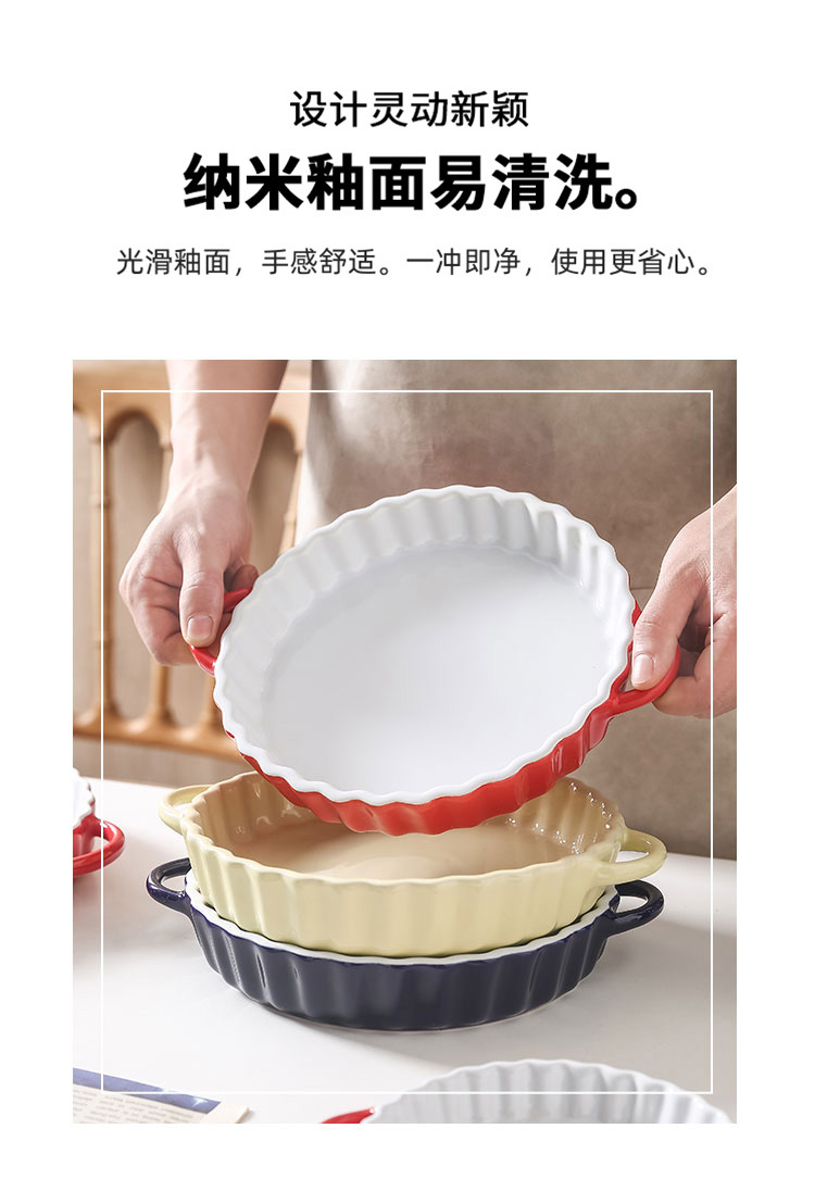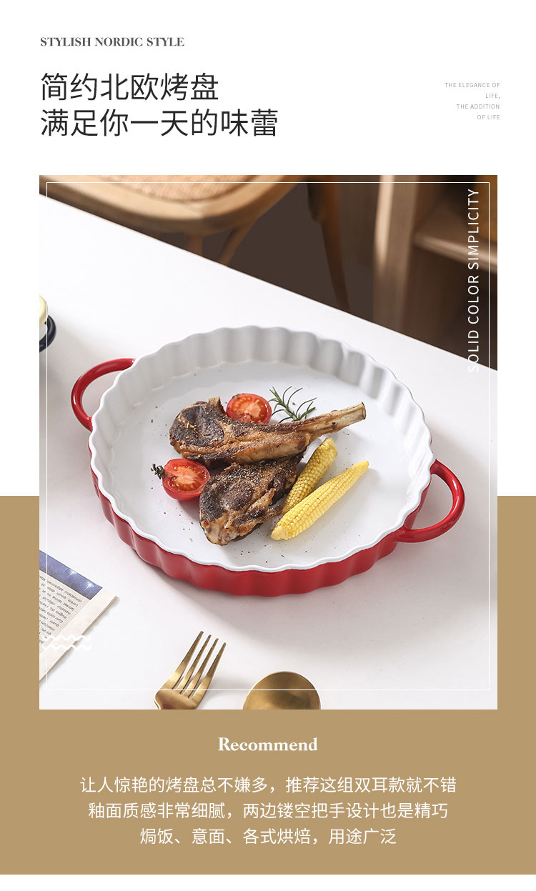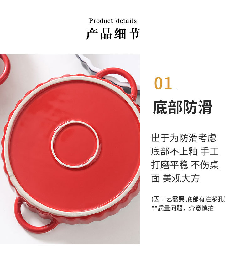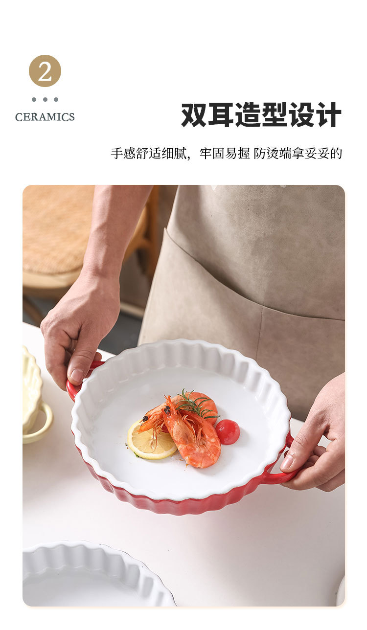 定制陶瓷双耳波浪披萨烤盘简约风西式烘培餐具圆形果盘西餐盘烤盘