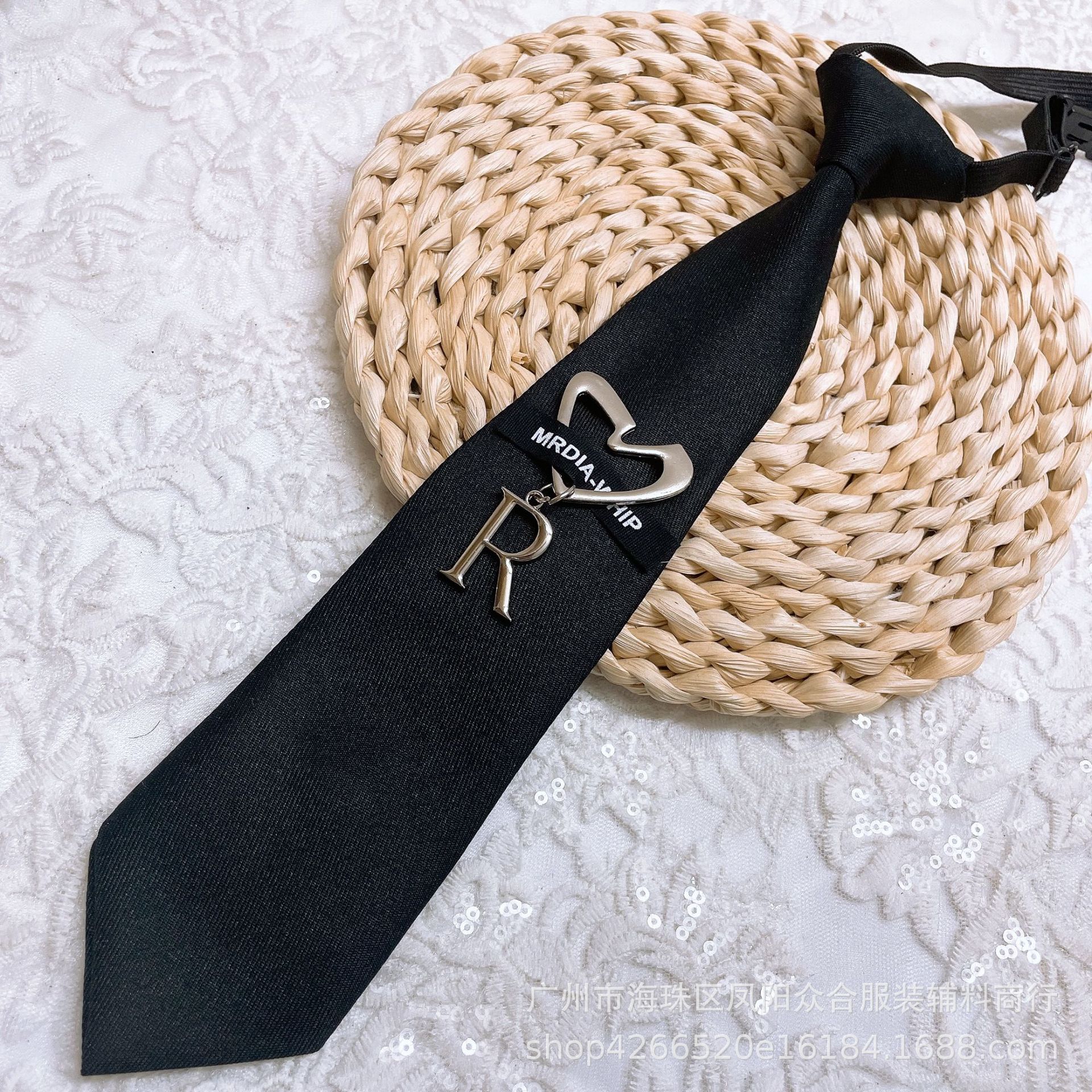 黑色免打结JK领带 套头懒人皮筋休闲学院日系 皮革五金链条领带