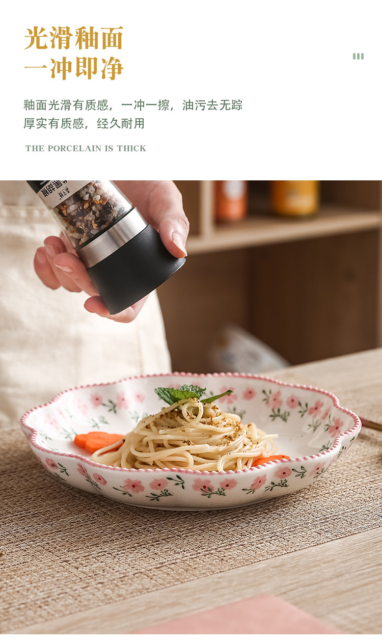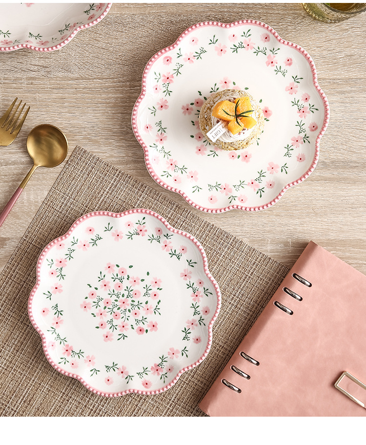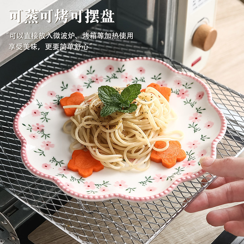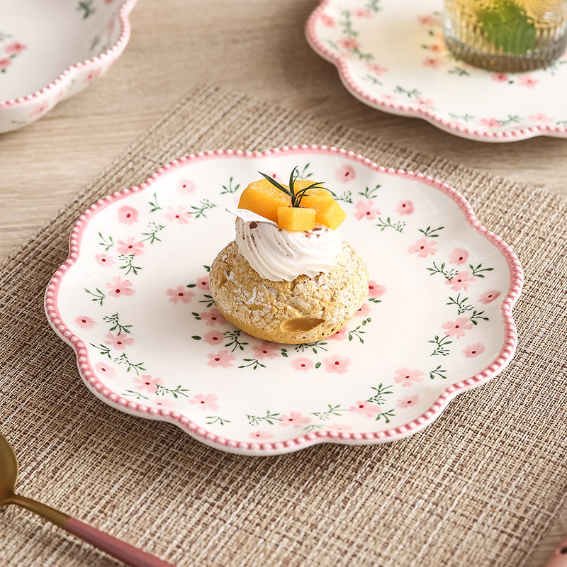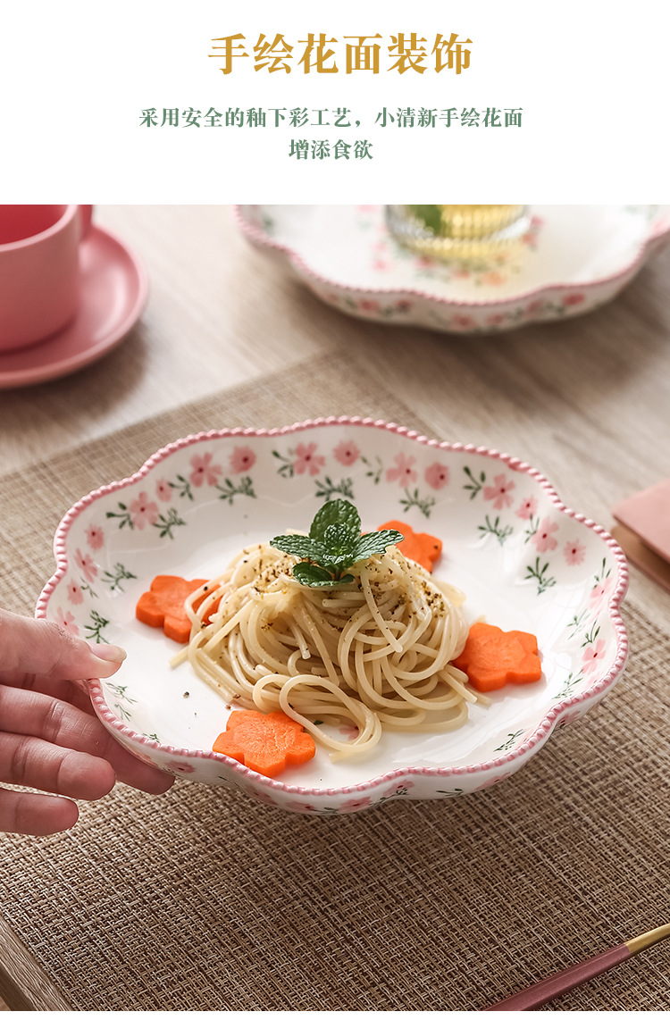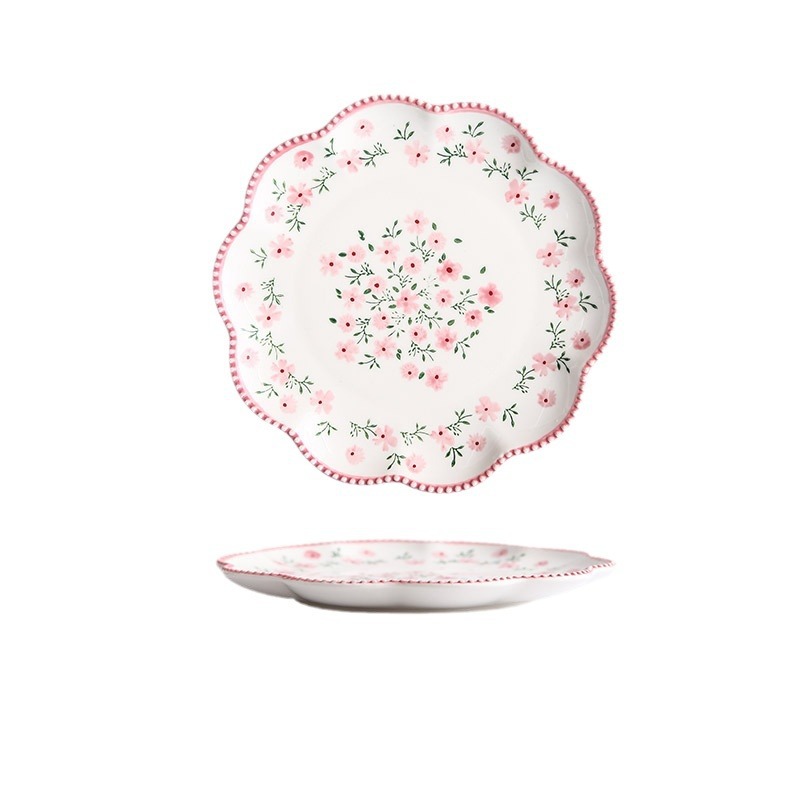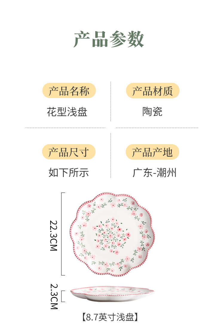 原创小碎花花型浅盘 家用餐盘ins日式餐具陶瓷西餐盘菜盘牛排盘