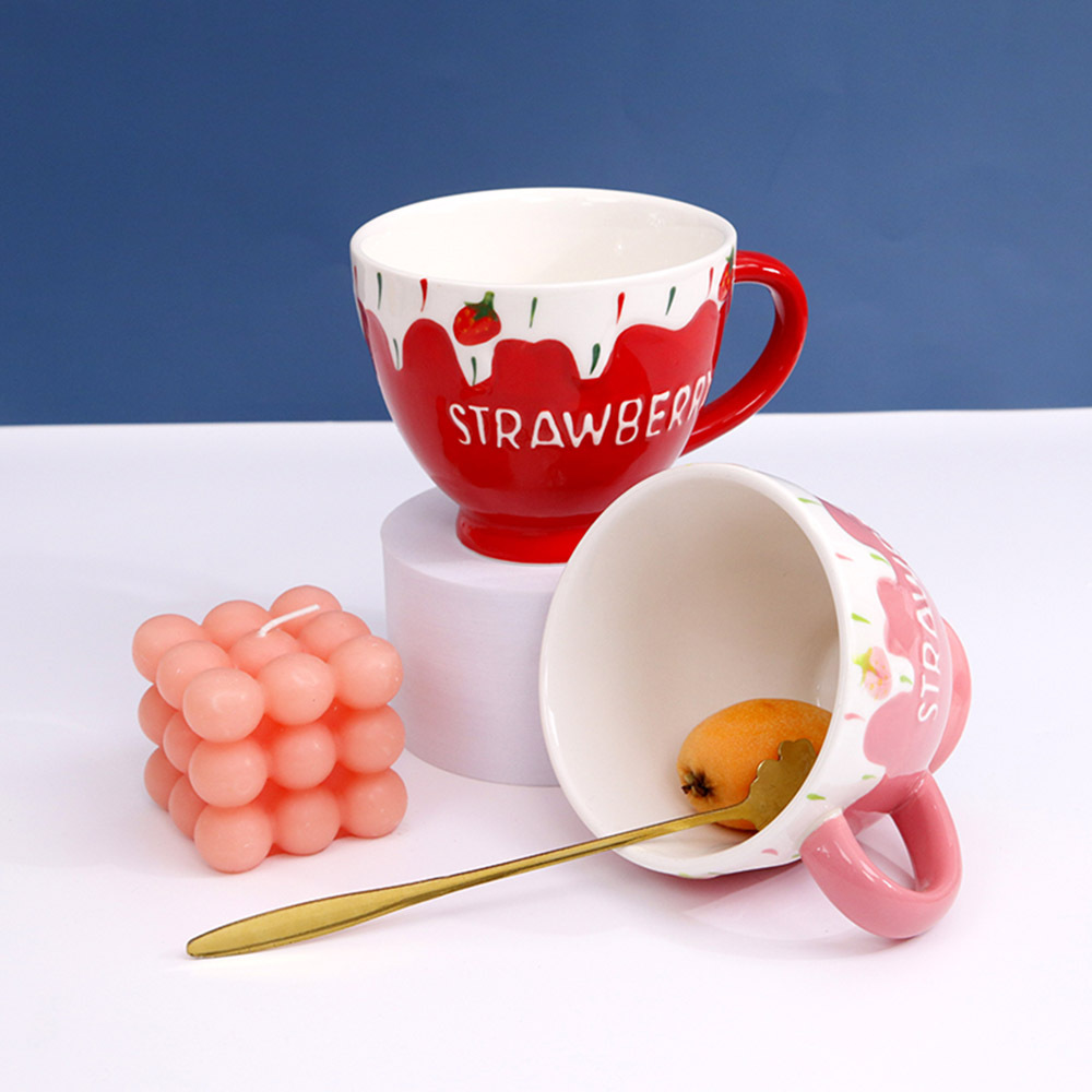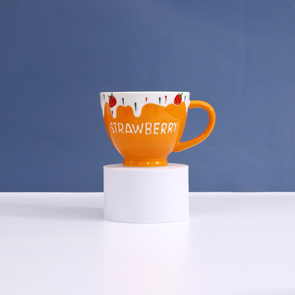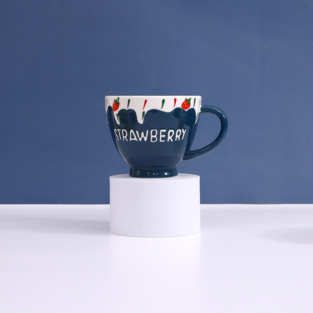 定制高颜值圆形办公手绘水杯釉下彩陶瓷马克杯小众高级感咖啡杯子