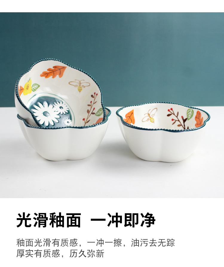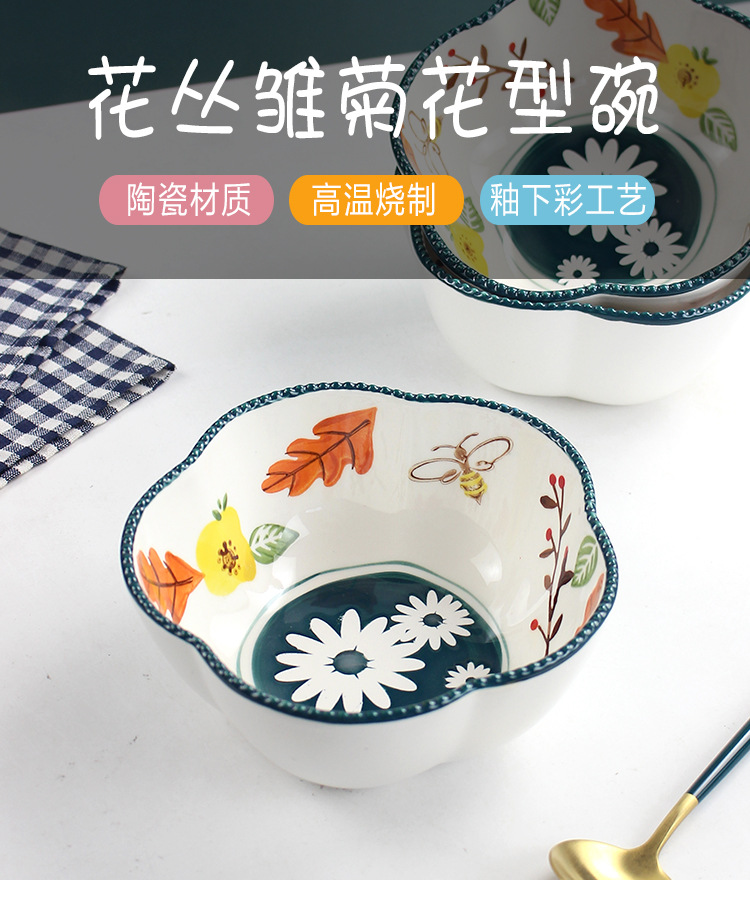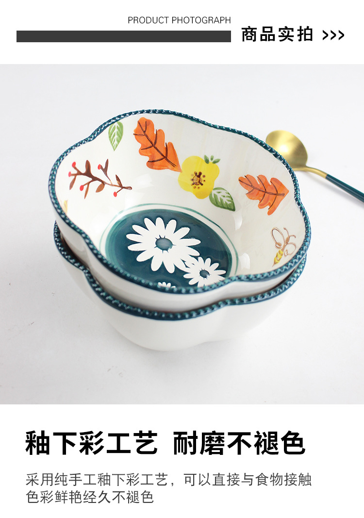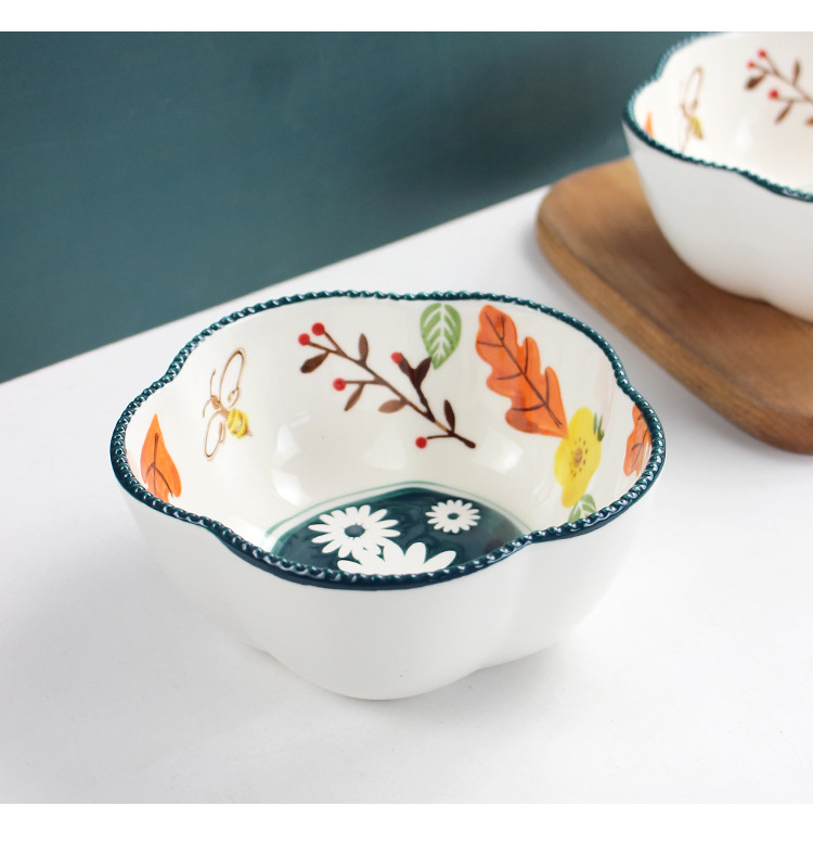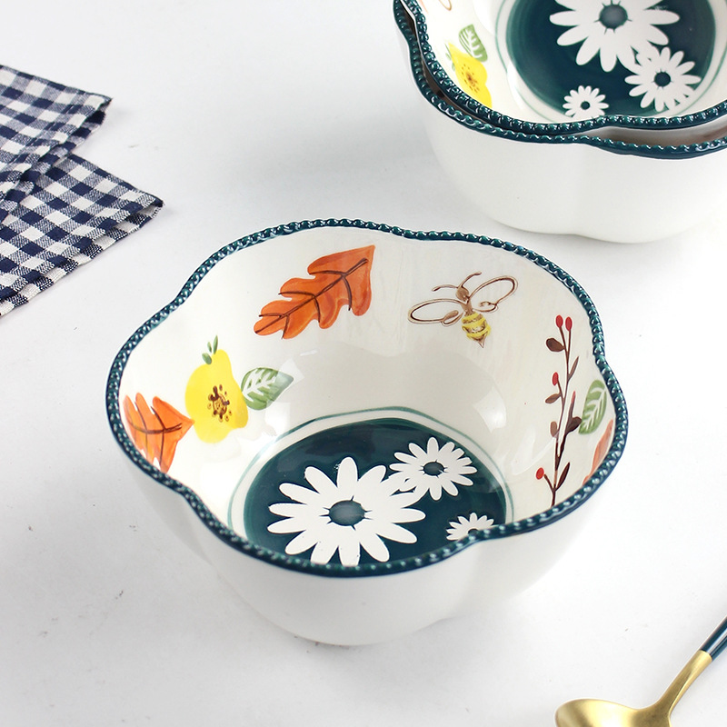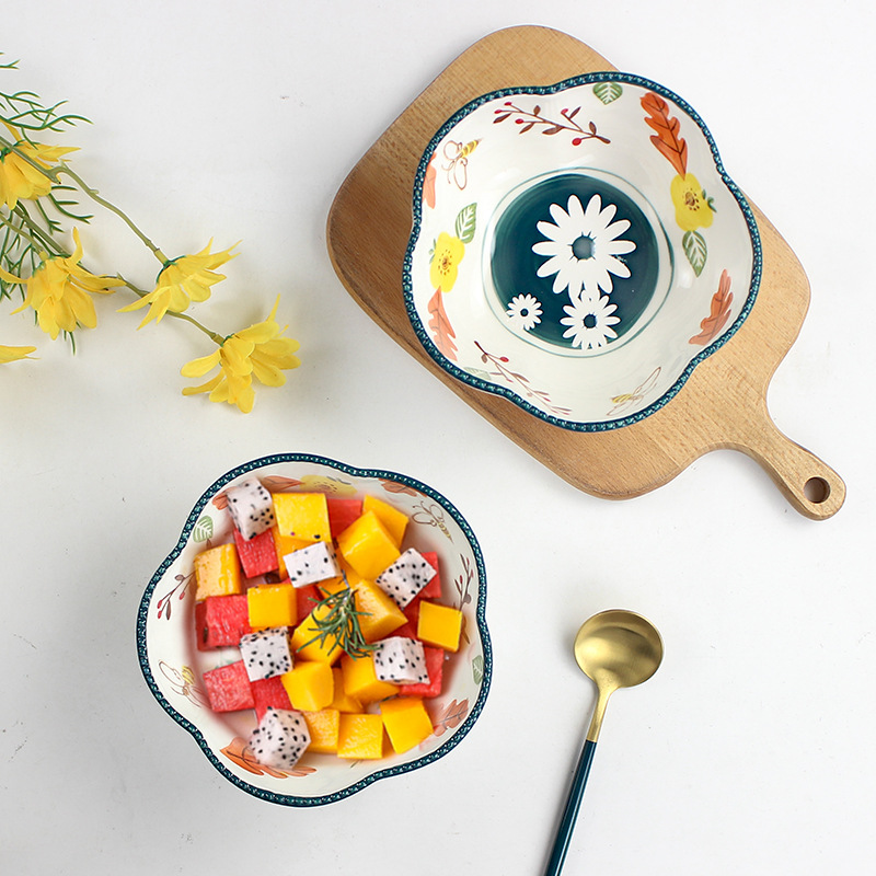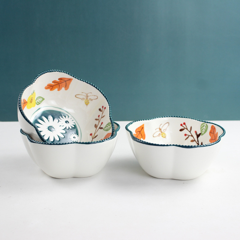 批发花型陶瓷冰淇淋碗手绘田园风酸奶沙拉甜品碗高颜值家用餐具