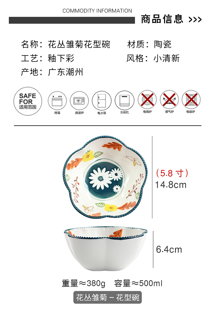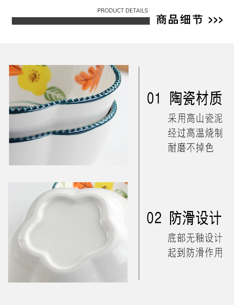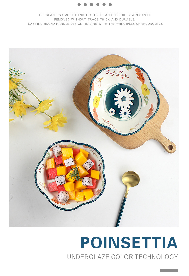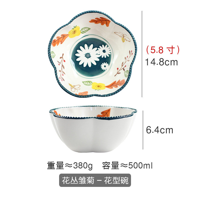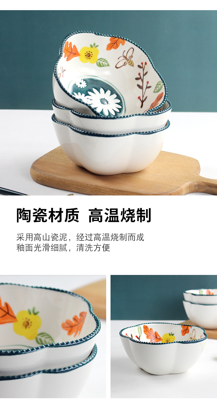 批发花型陶瓷冰淇淋碗手绘田园风酸奶沙拉甜品碗高颜值家用餐具