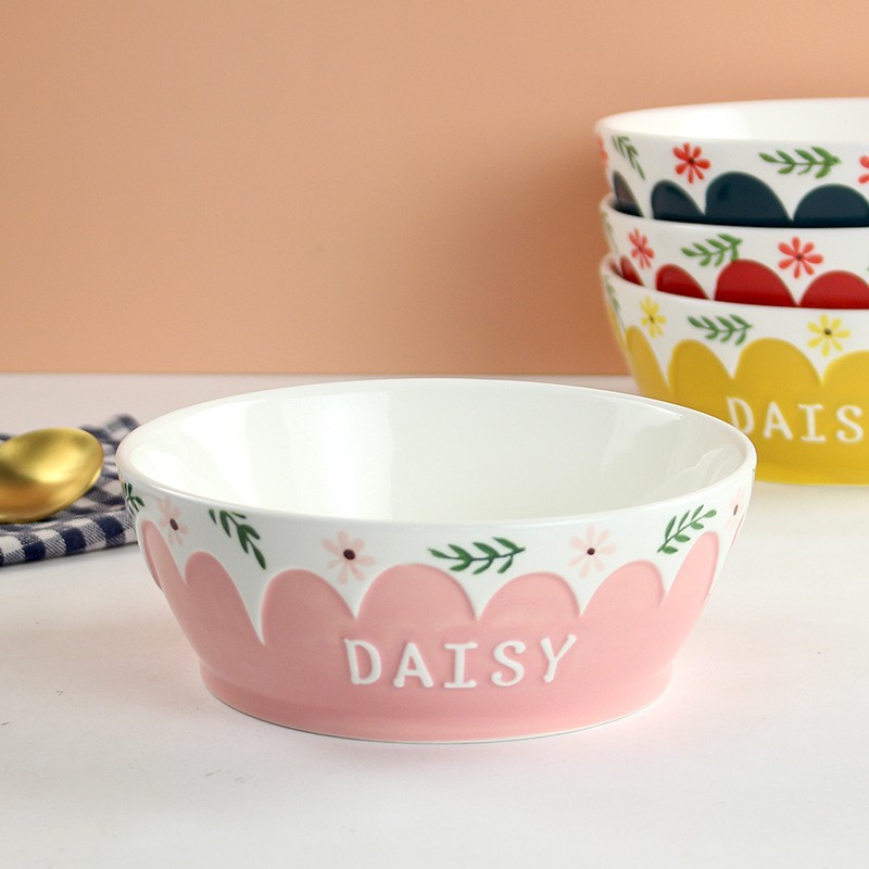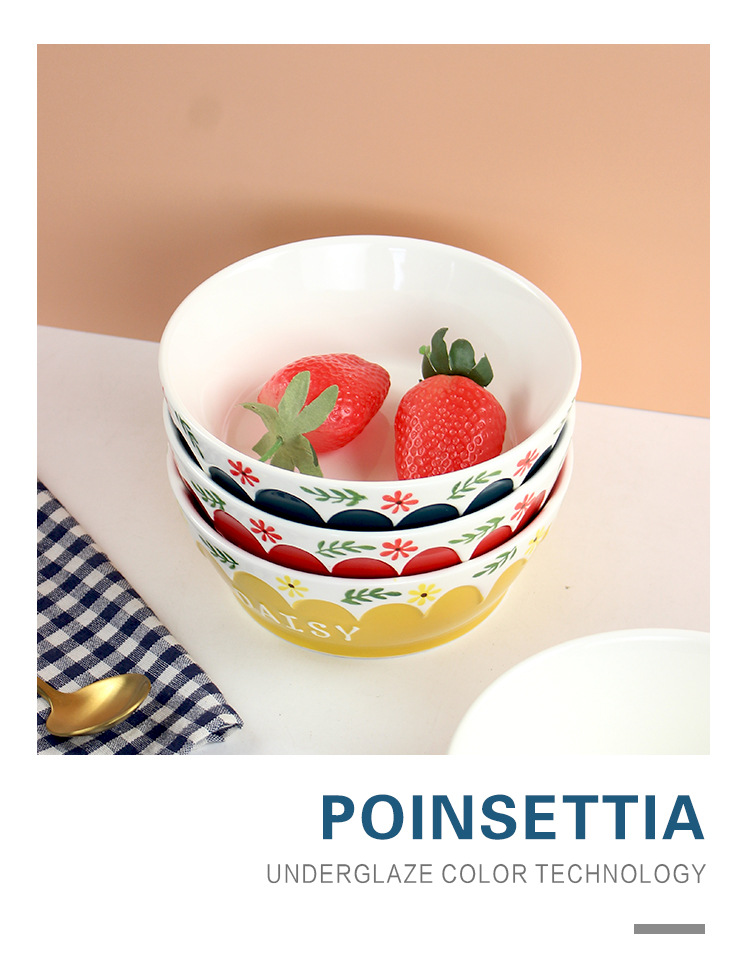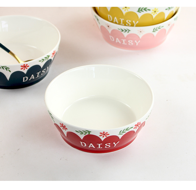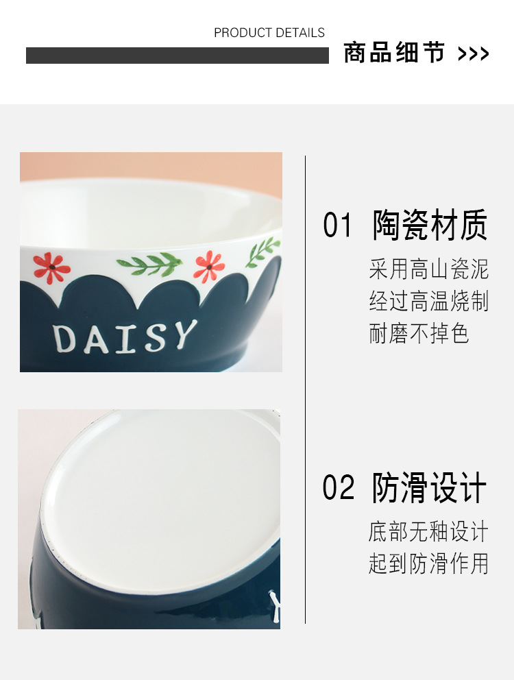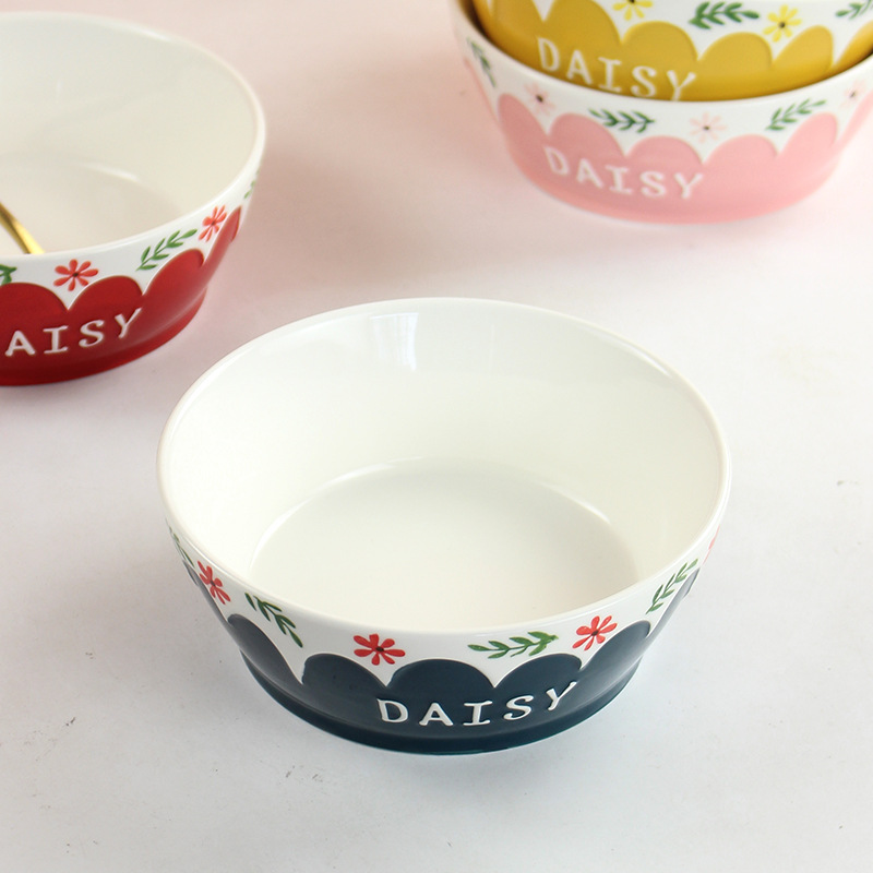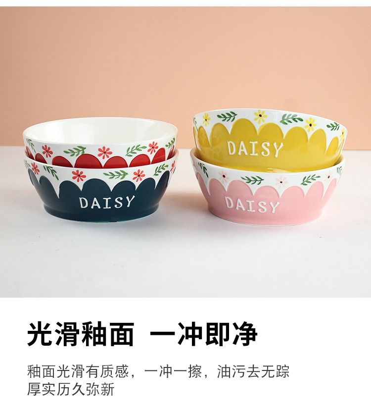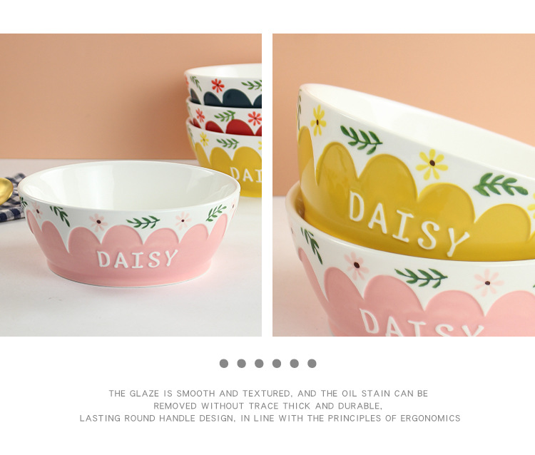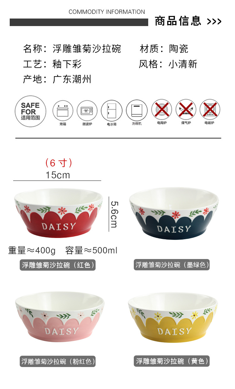 批发浮雕手绘雏菊6寸沙拉碗陶瓷碗家用创意陶瓷餐具甜品碗早餐碗