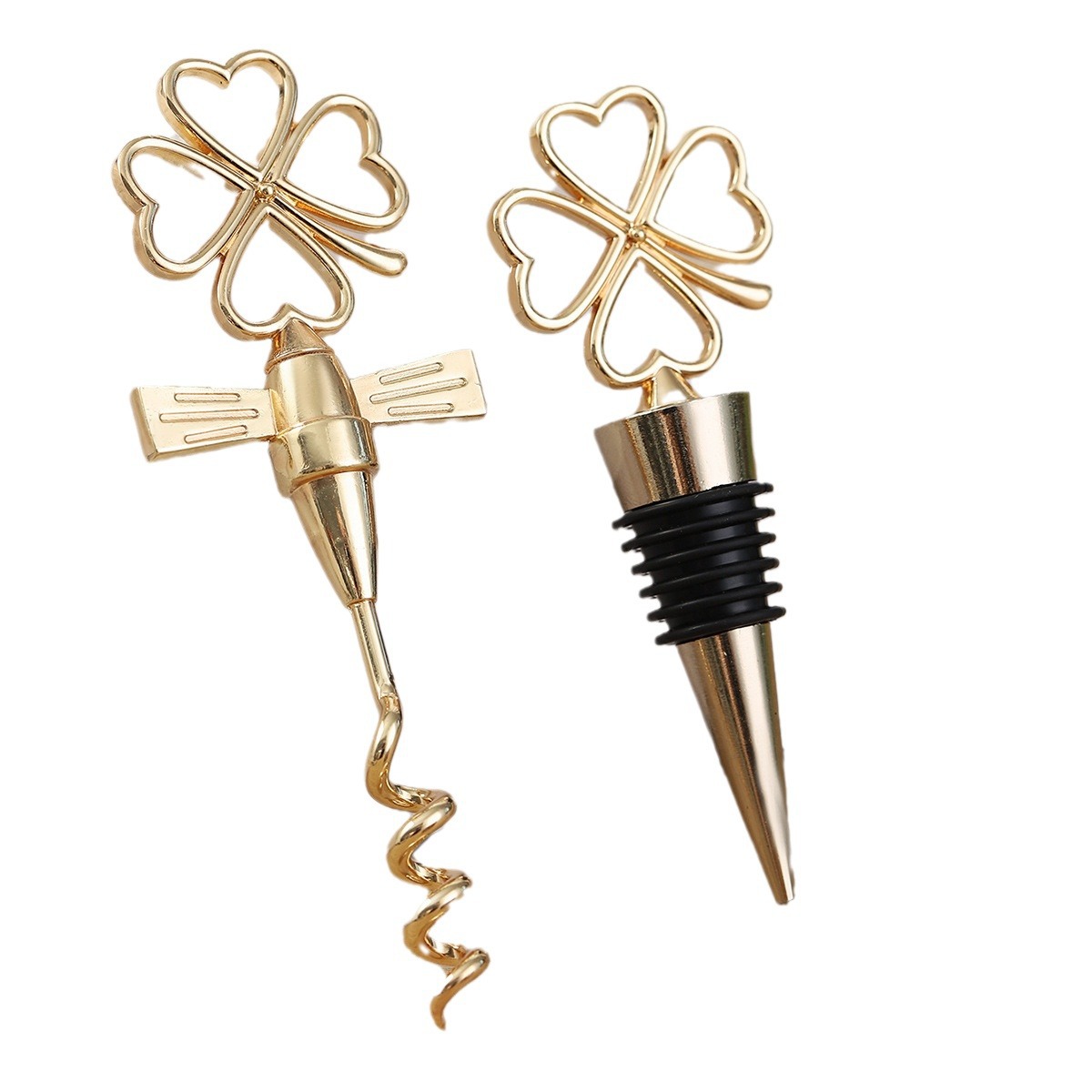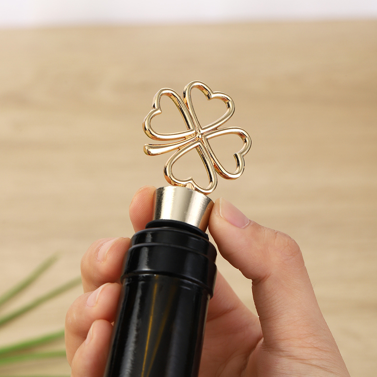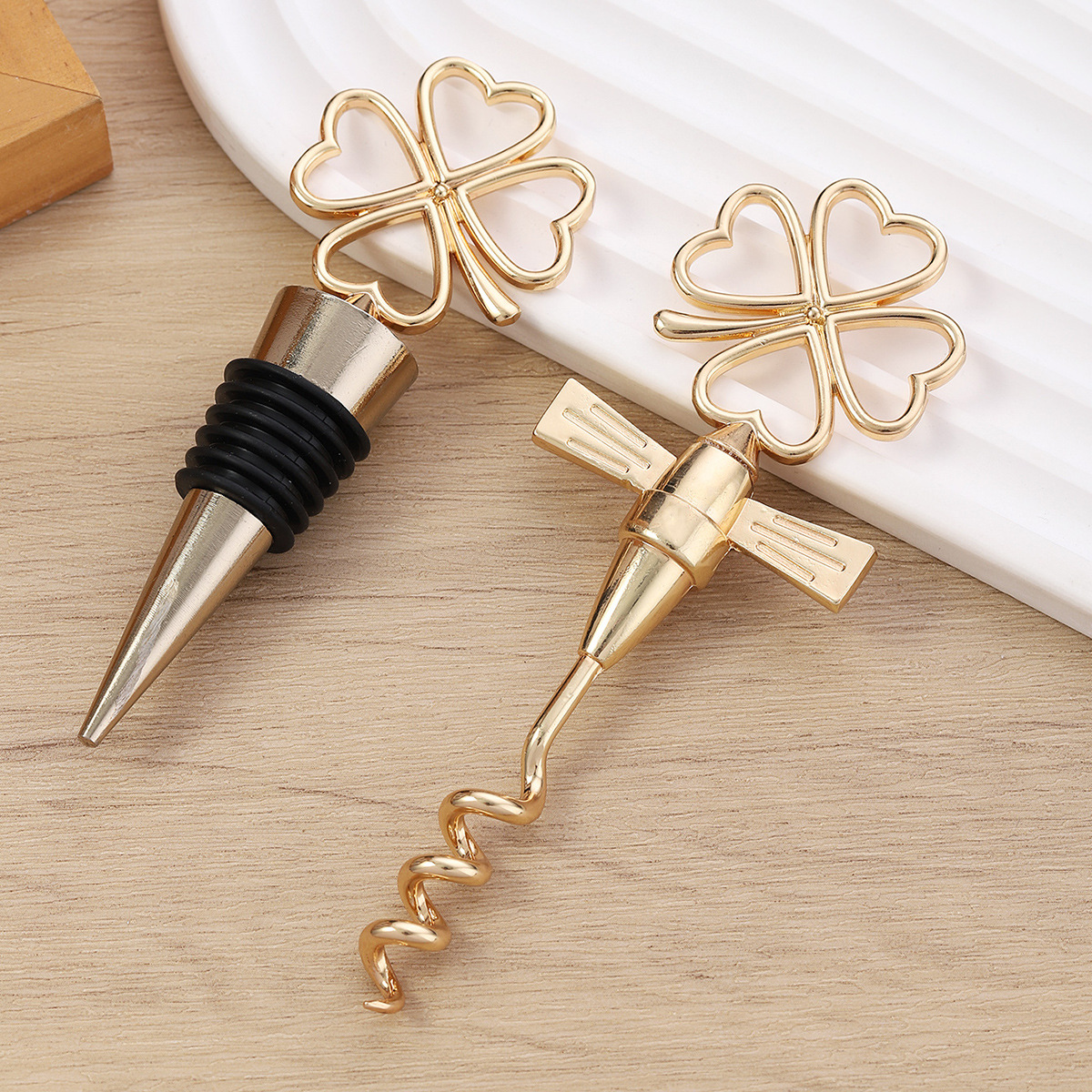 跨境创意四叶草红酒具套装锌合金酒塞开瓶器套装婚庆生日派对礼品