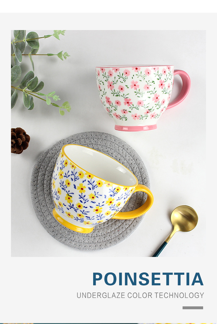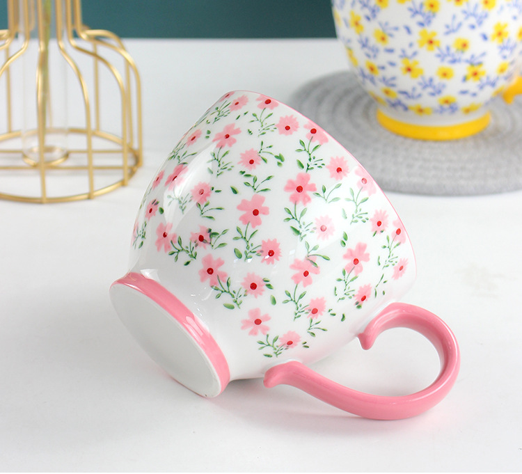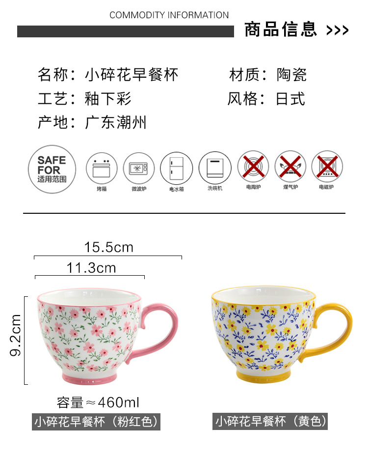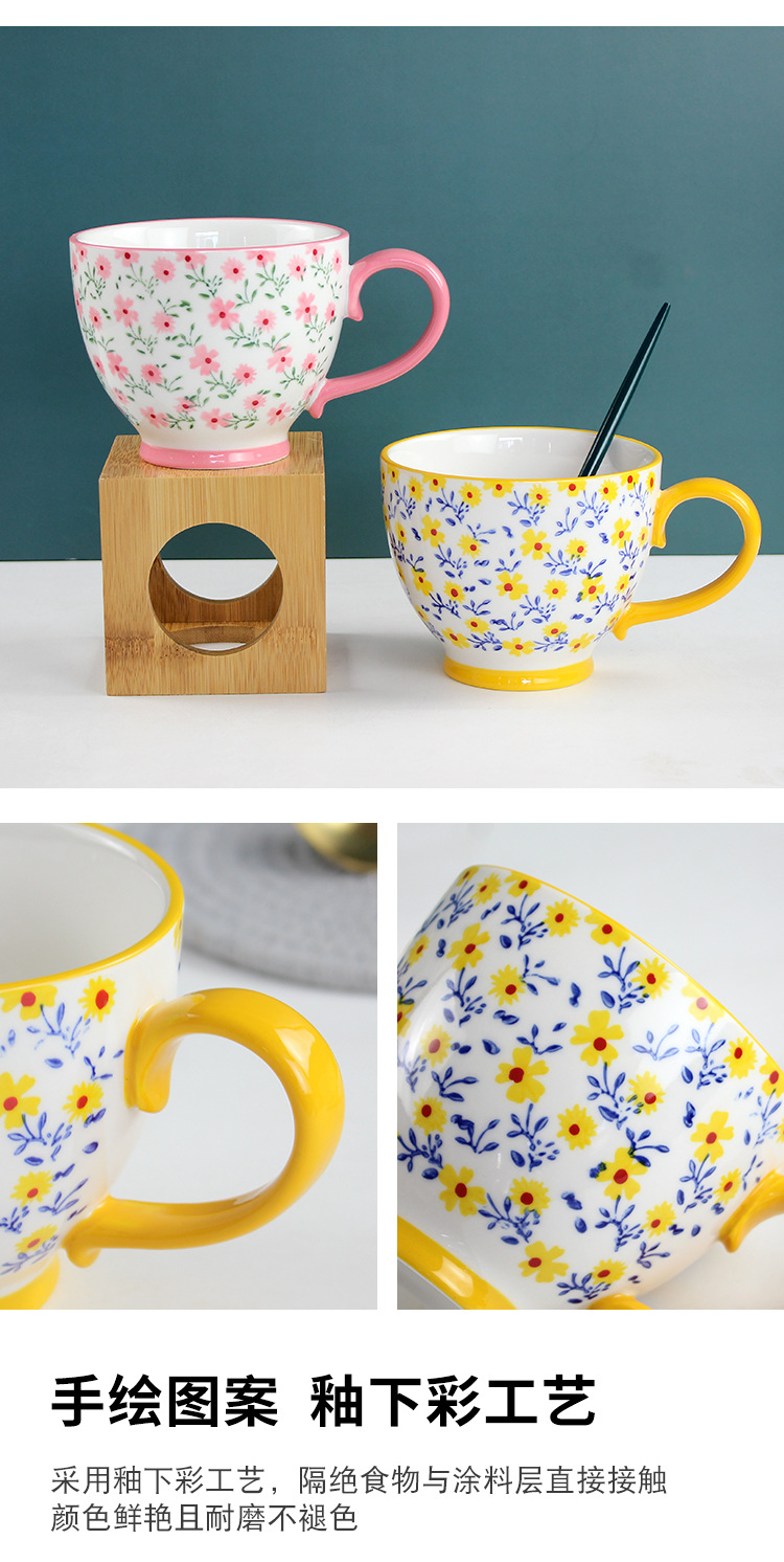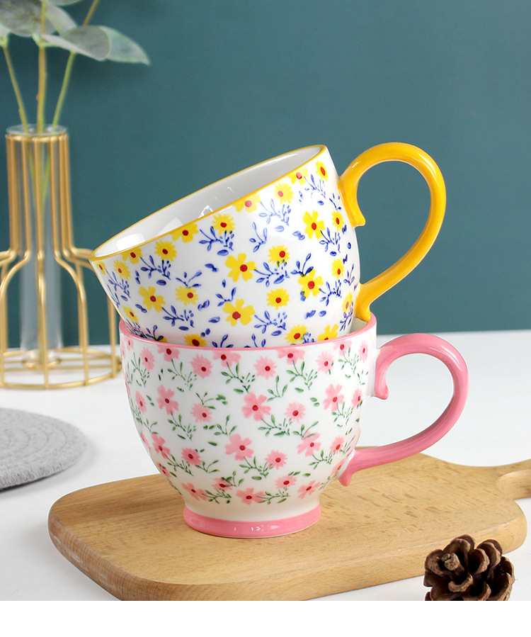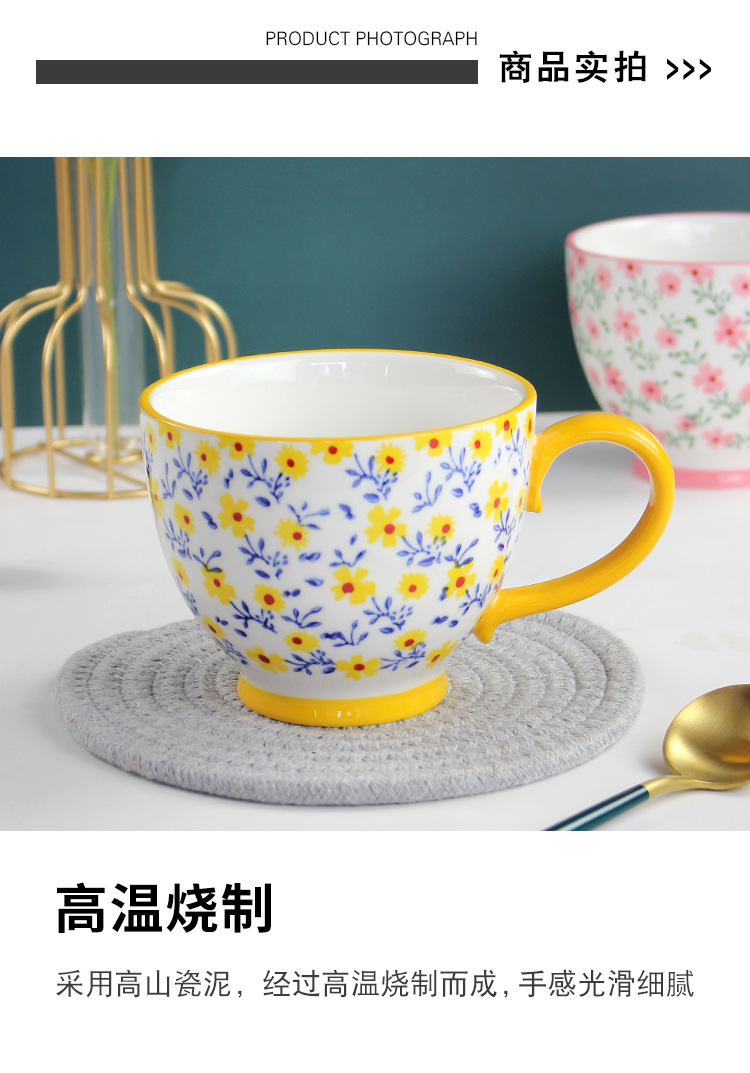 原创ins小碎花早餐杯 个性可爱咖啡杯燕麦杯马克杯陶瓷杯批发杯子