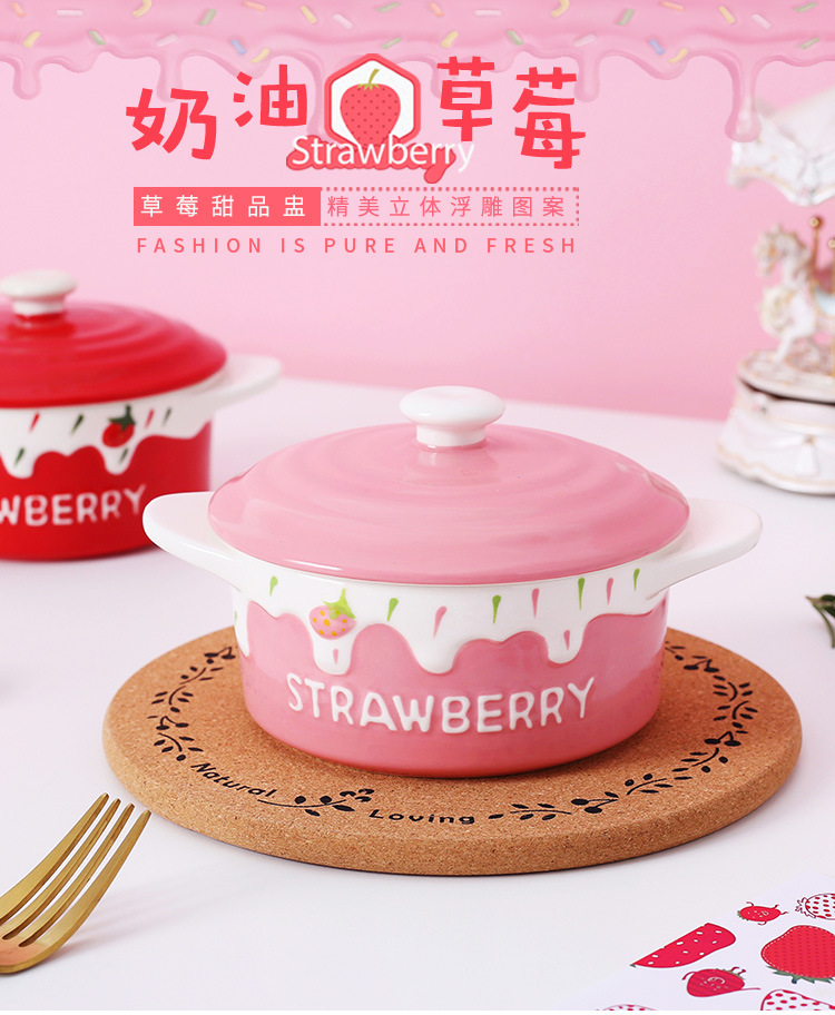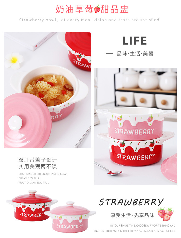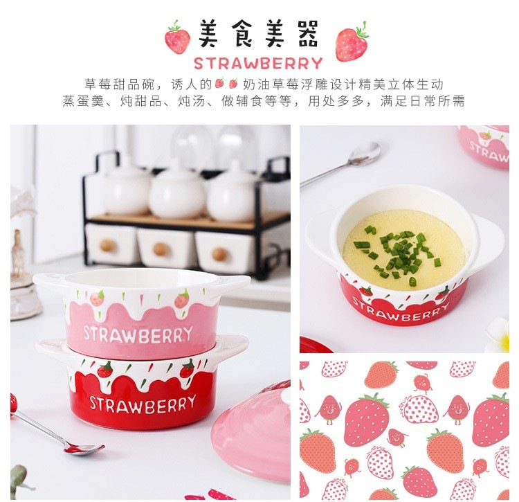 批发可爱浮雕陶瓷蒸蛋碗带盖宝宝辅食碗餐厅双耳甜品盅汤盅高颜值