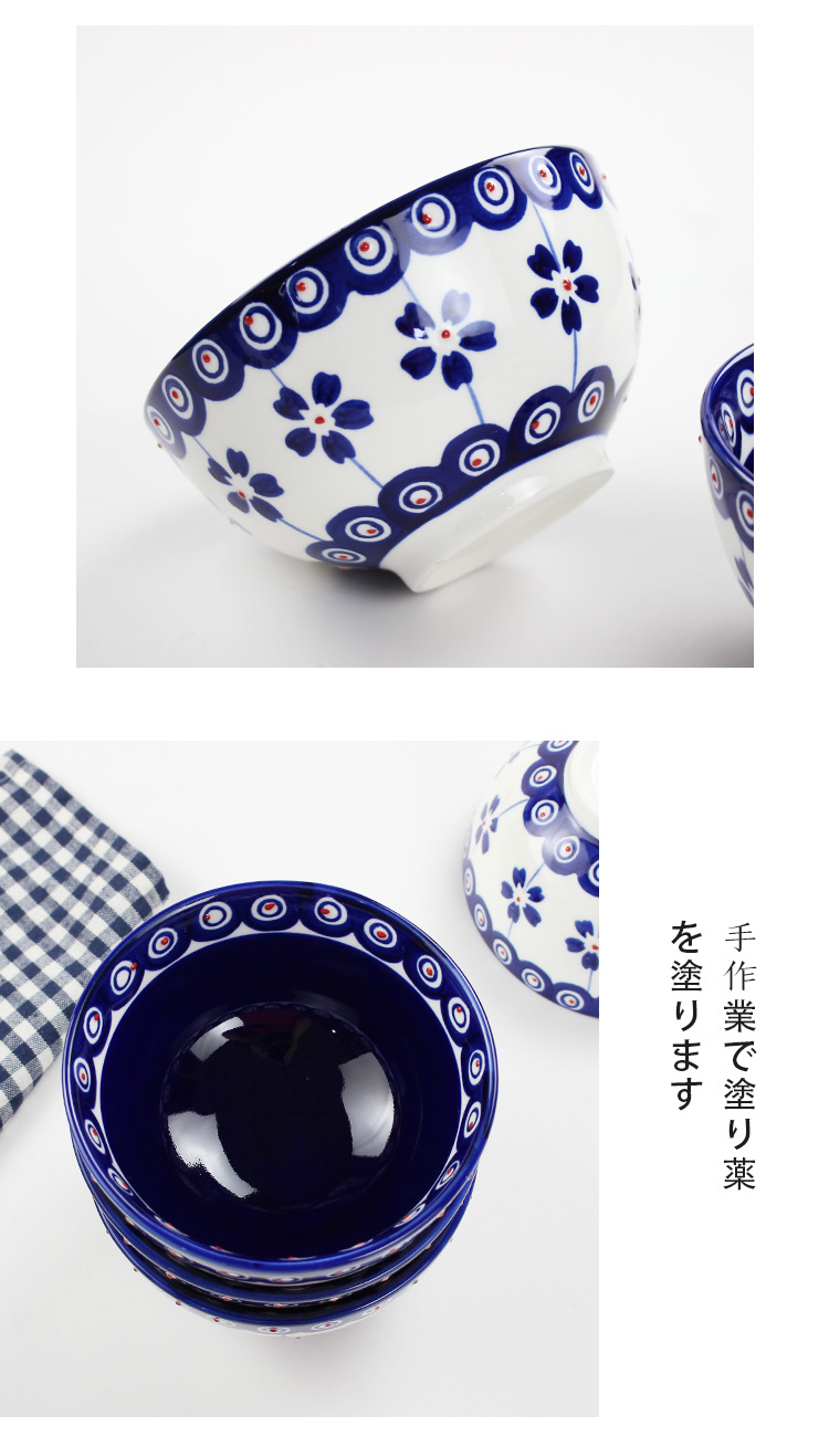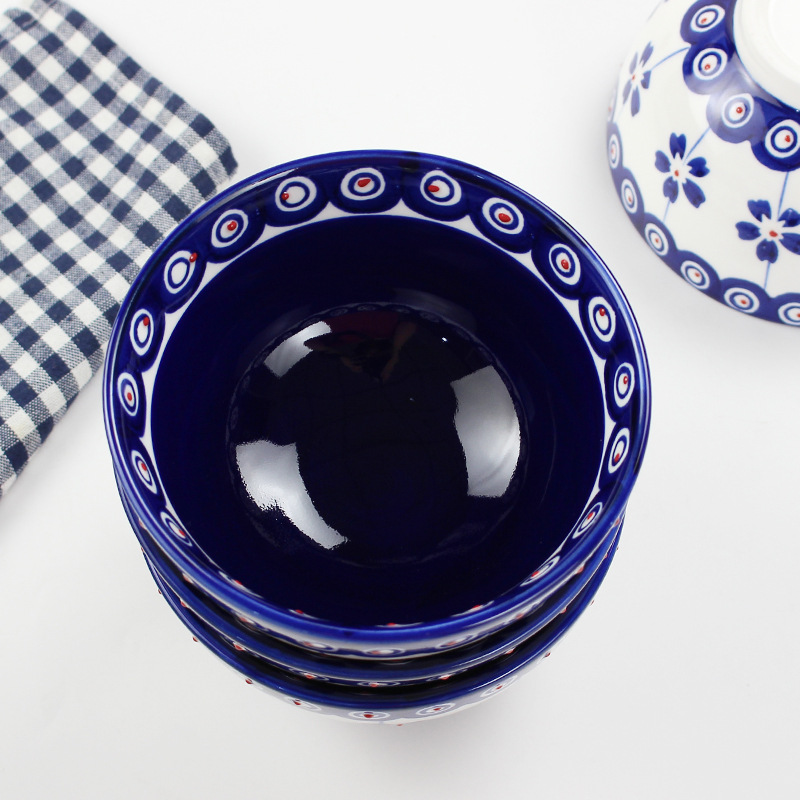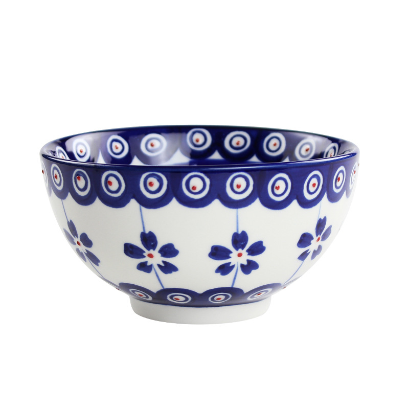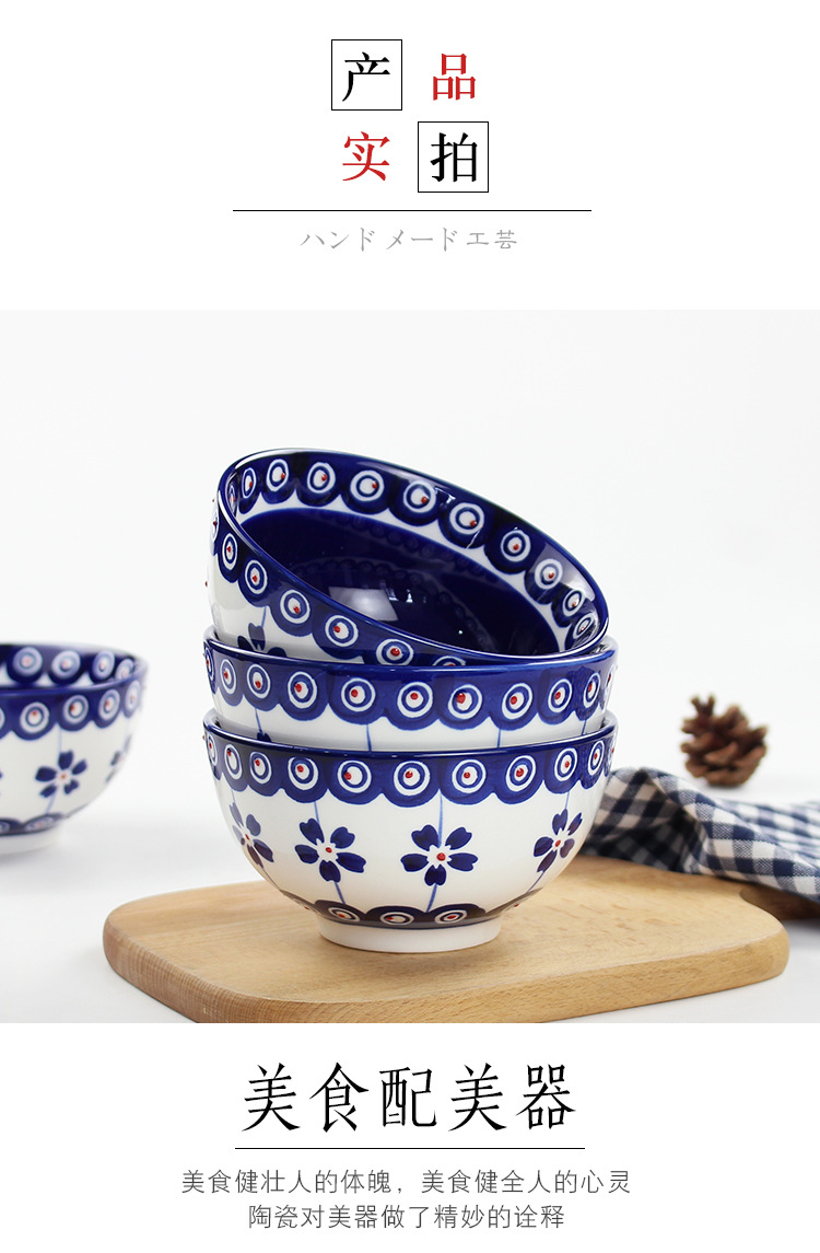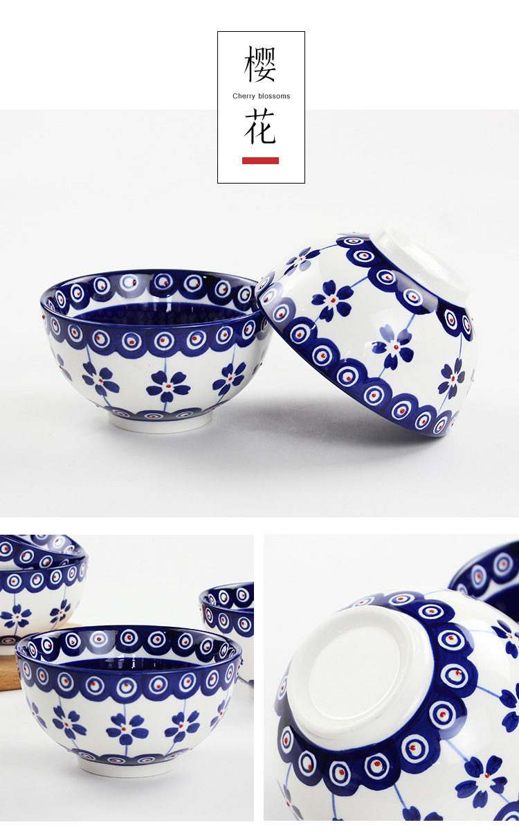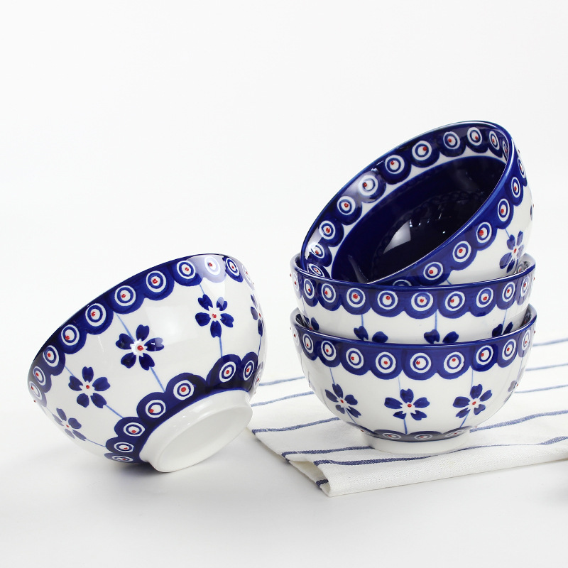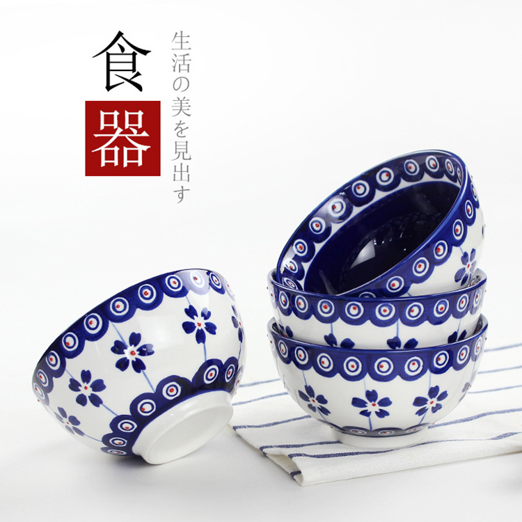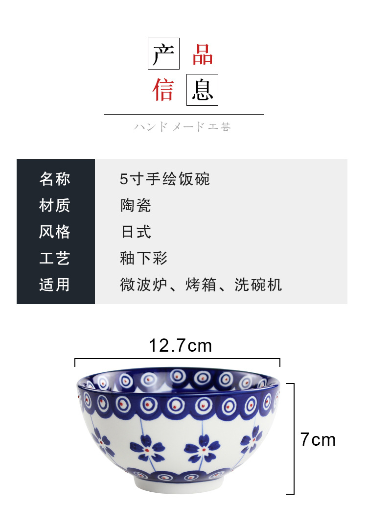 日式5寸家用餐具通用陶瓷汤饭碗手工制作釉下彩圆形复古餐面碗