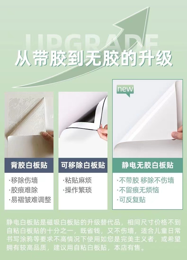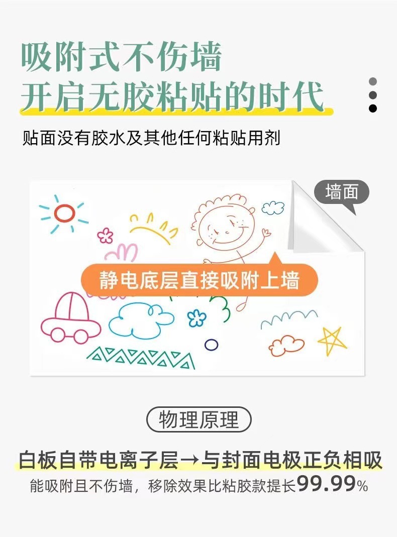 批发静电白板墙贴可移除不伤墙儿童家用画画可擦写涂鸦教学写字贴